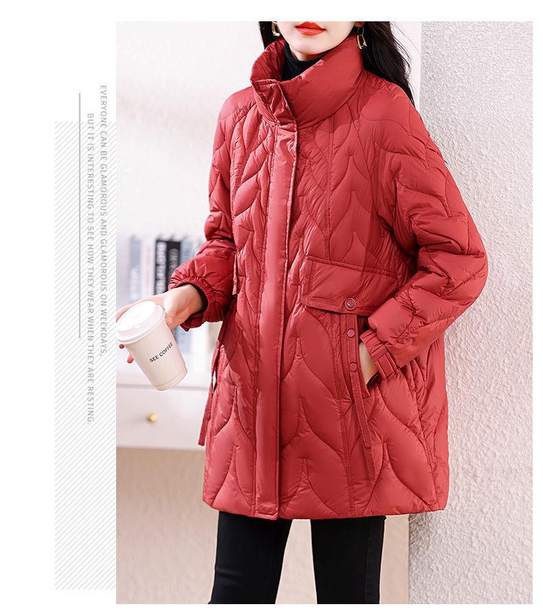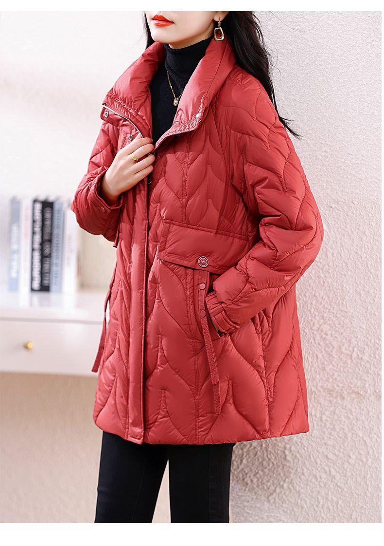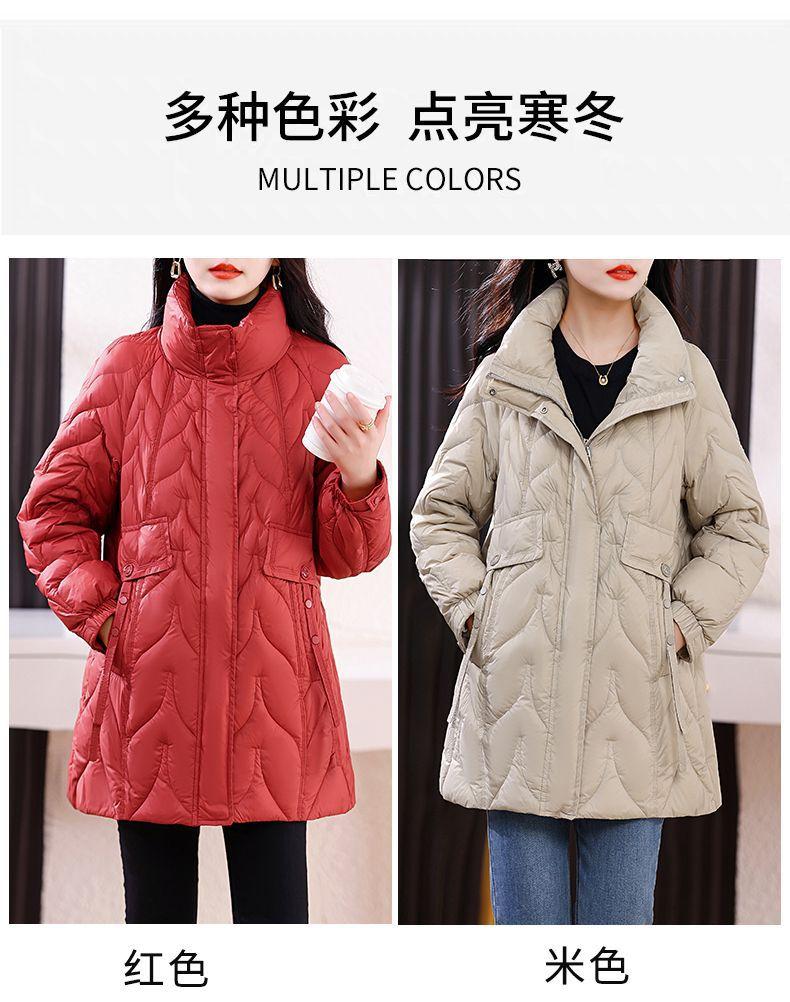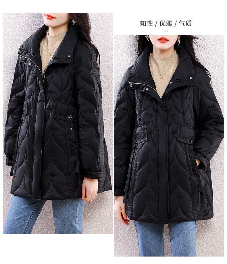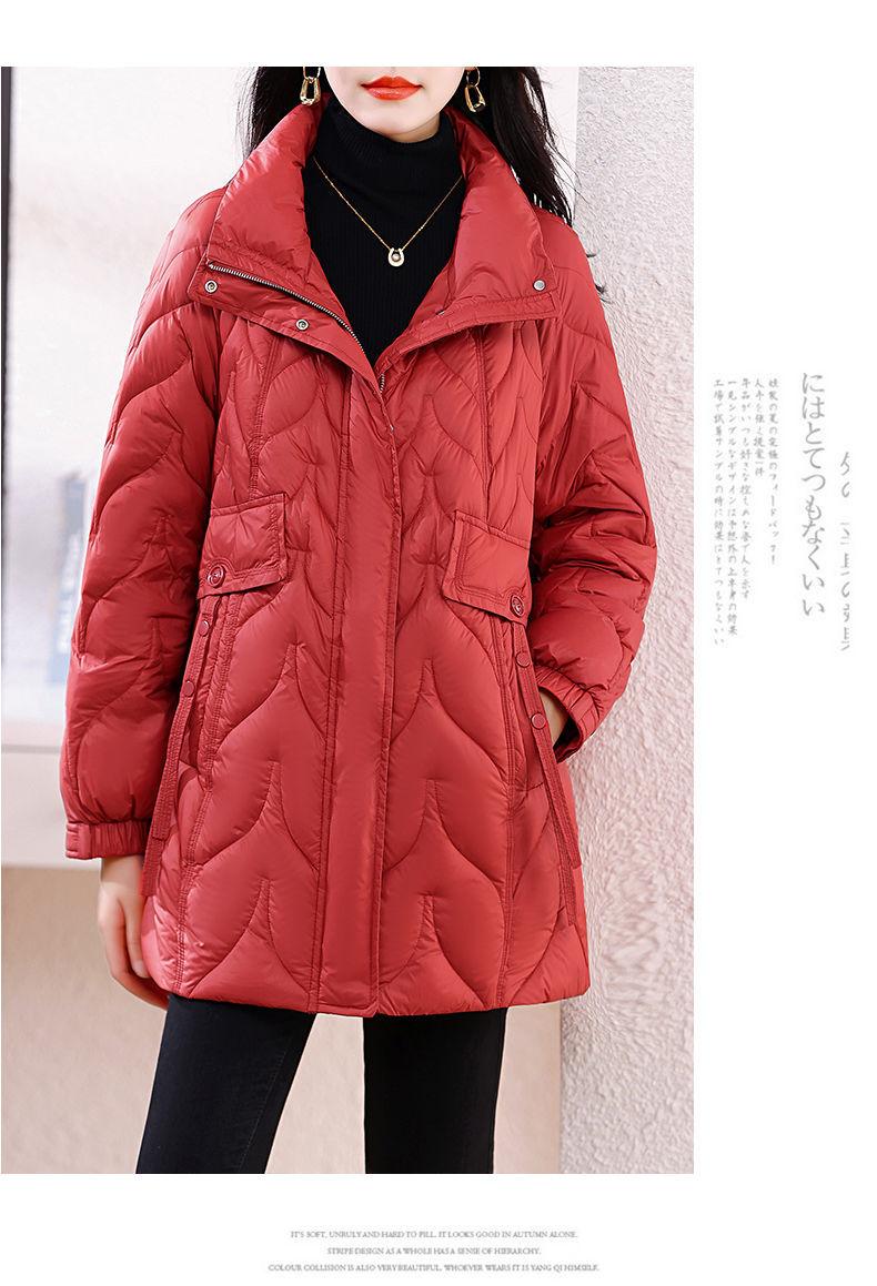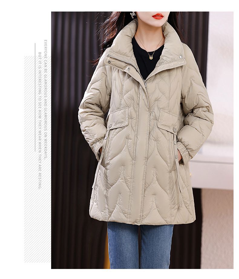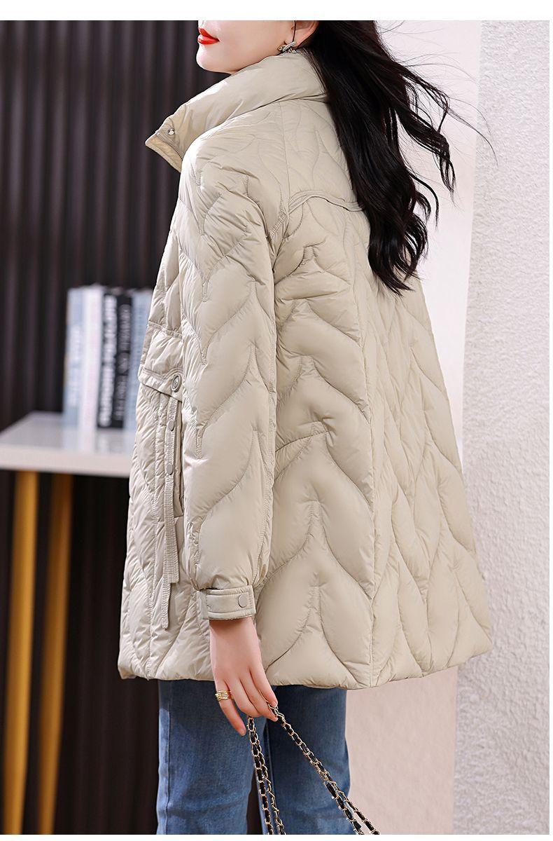 Chamarra de Plumas para Mujer Invierno Largo Medio 2025 Nuevo Estilo Pequeña Elegante Moda Slim con Capucha Chaqueta de Plumón de Pato Blanco Ligera y Delgada