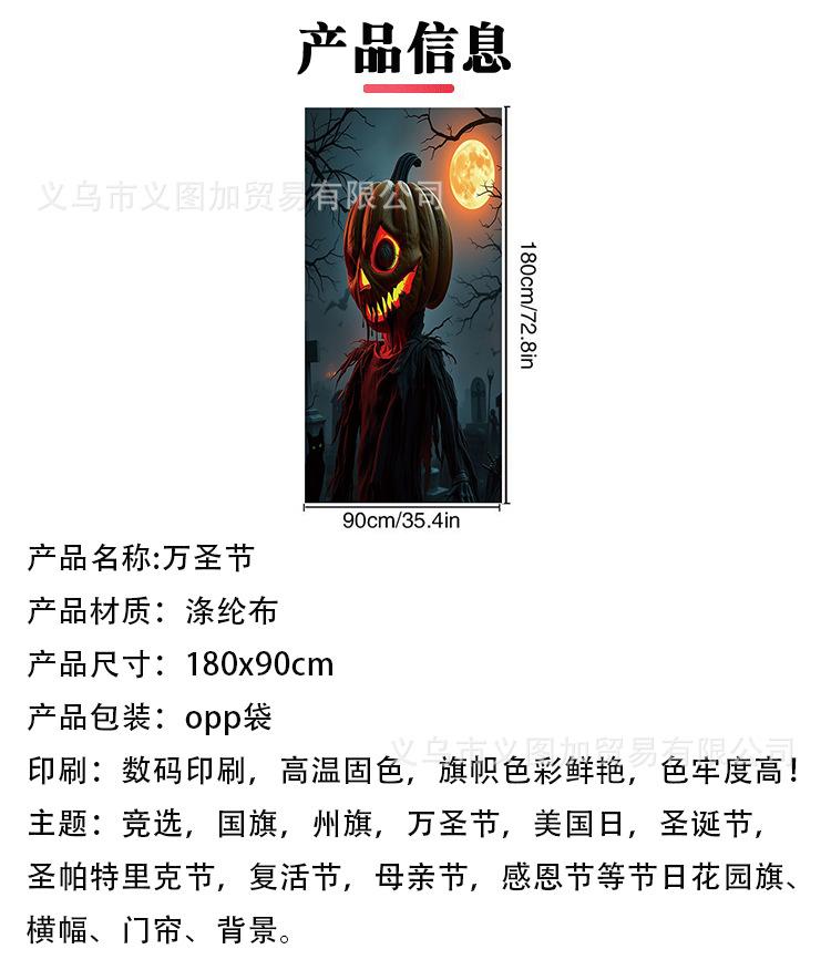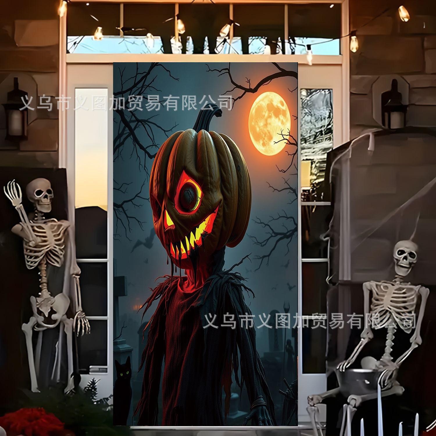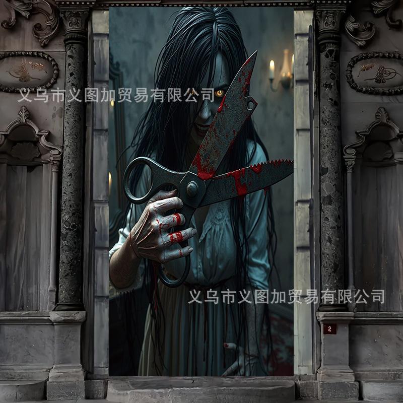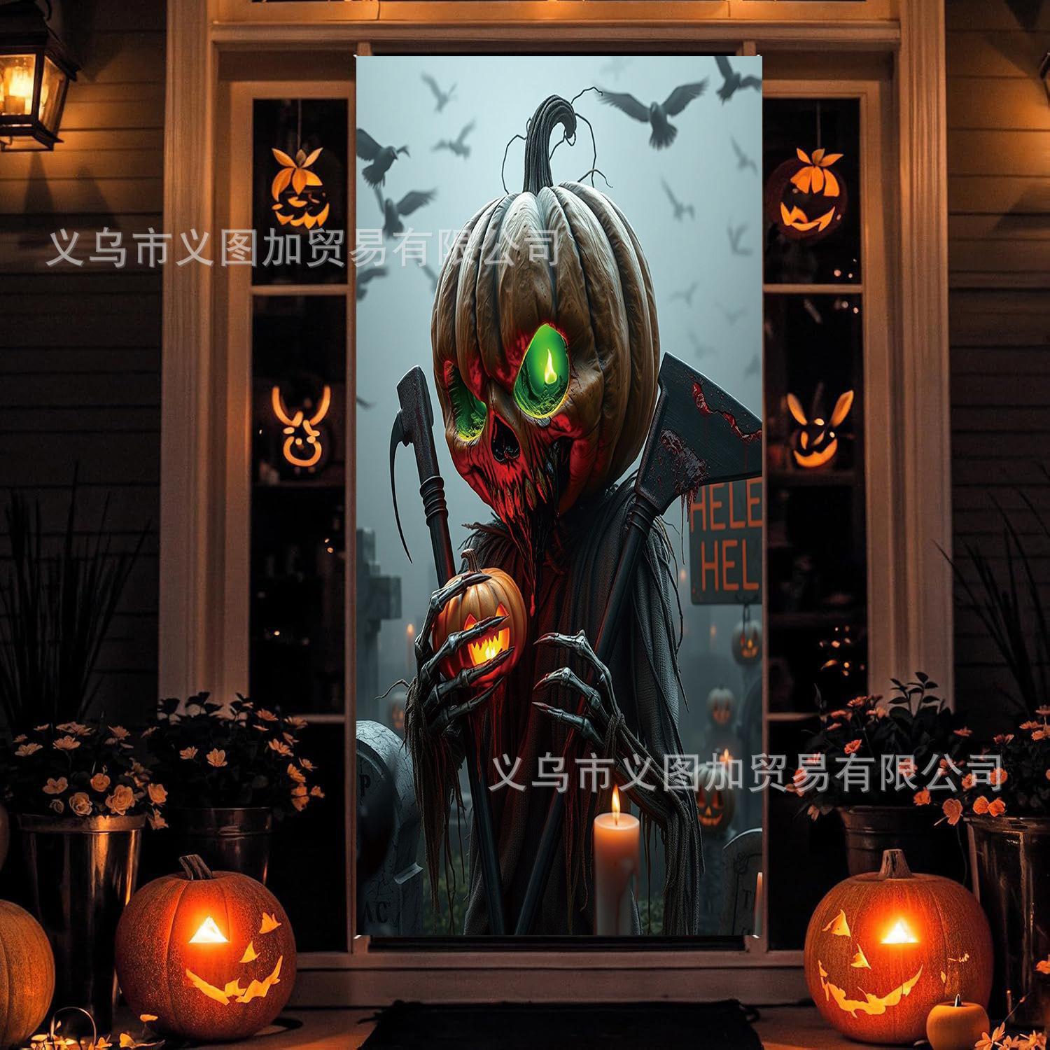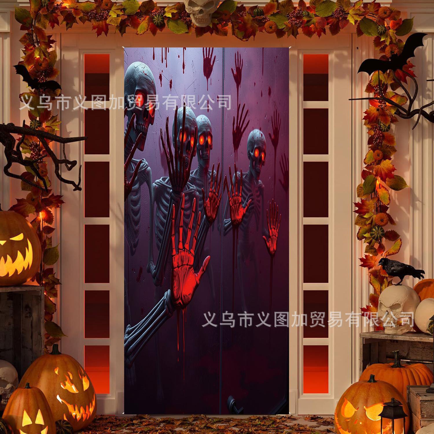 Nuevo Cubierta de Puerta de Halloween Transfronteriza de Amazon Horror Fiesta Apoyos de Decoración para Fotos Atmósfera Bandera Cubierta de Puerta de Halloween