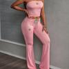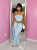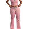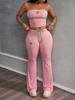 Europeo y Americano Nueva Moda Transfronteriza Color Sólido Bordado Sin Mangas Top Tubo Deportivo Ajustado Pantalones Largos Ajustados a la Cadera Conjunto para Mujer