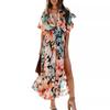 2023 Amazon Transfronterizo Verano Nuevo Vestido Sexy de Moda Estampado con Abertura para Mujer Europeo y Americano