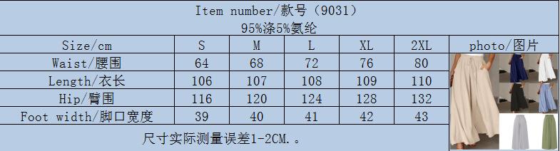 Europeo y Americano Transfronterizo Verano Nuevo Pantalones Largos de Pierna Ancha para Mujer Cintura Elástica Pierna Ancha Culotes Largos de Cintura Alta para Mujer en Stock
