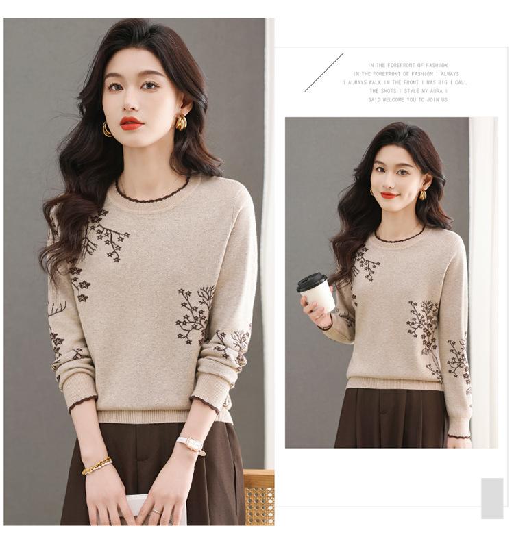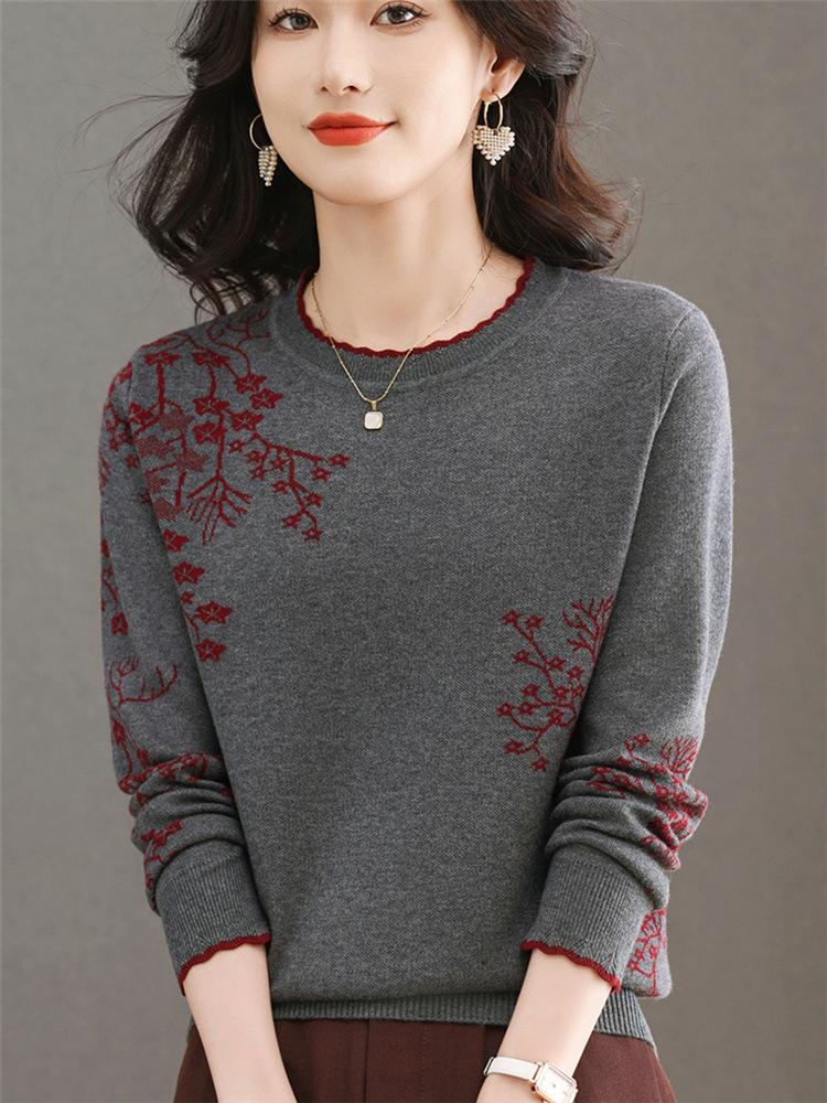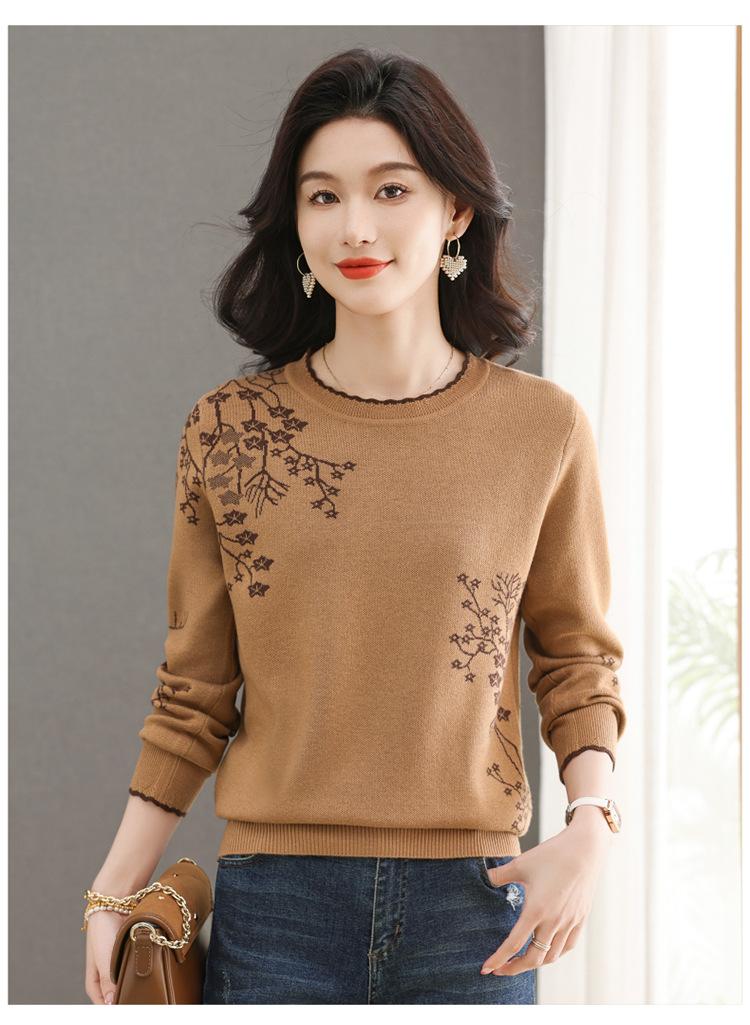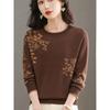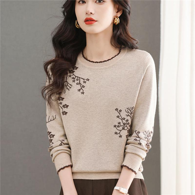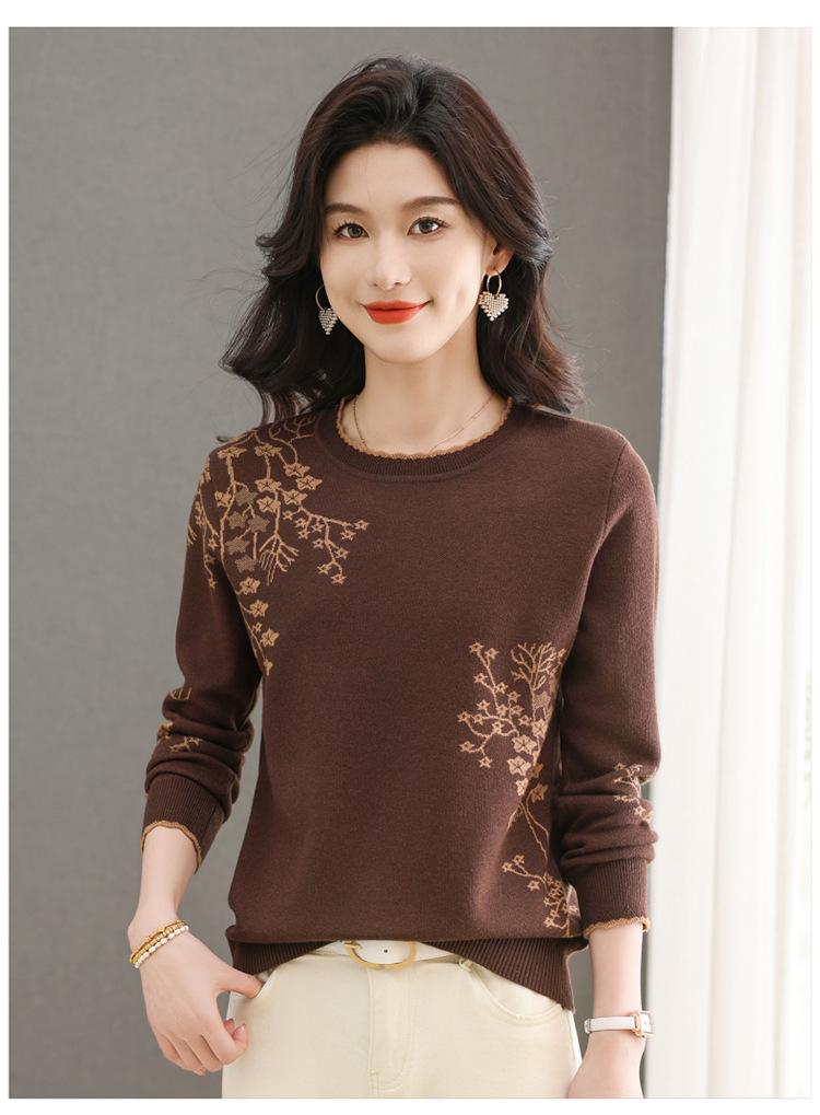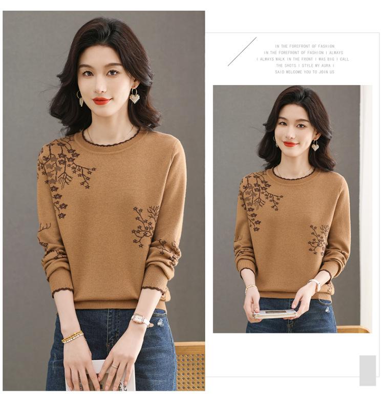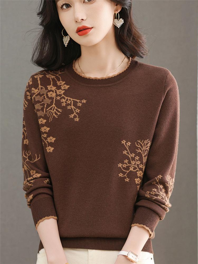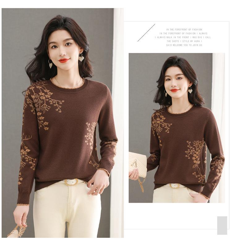 2025 Nuevo Otoño e Invierno Ropa Interior Moda Gruesa Cuello Semi-Alto Estampada Resistente a las Bolitas Camiseta Base Camiseta de Punto Suéter para Mujer a la Moda