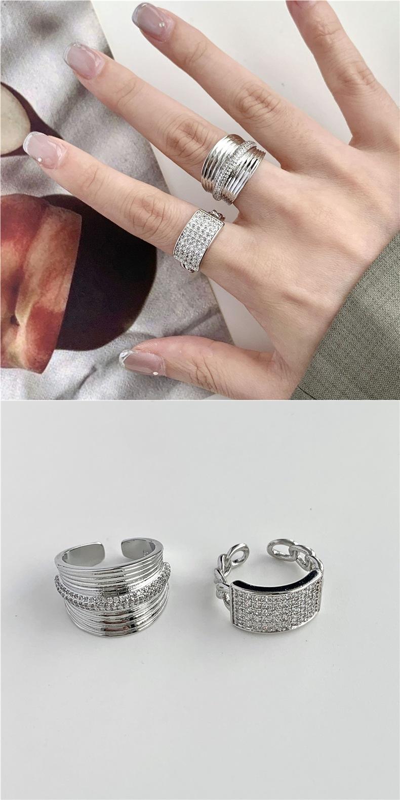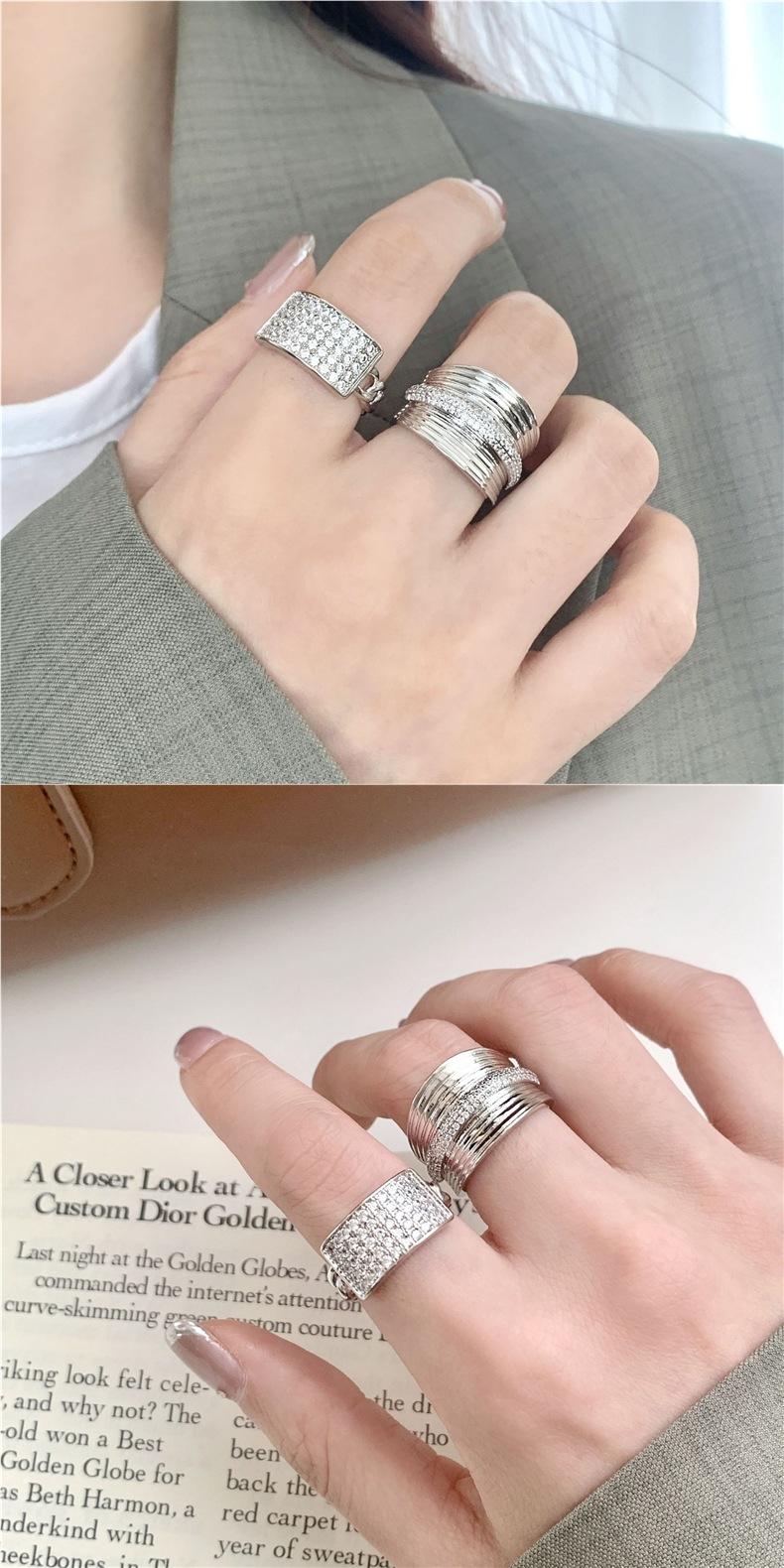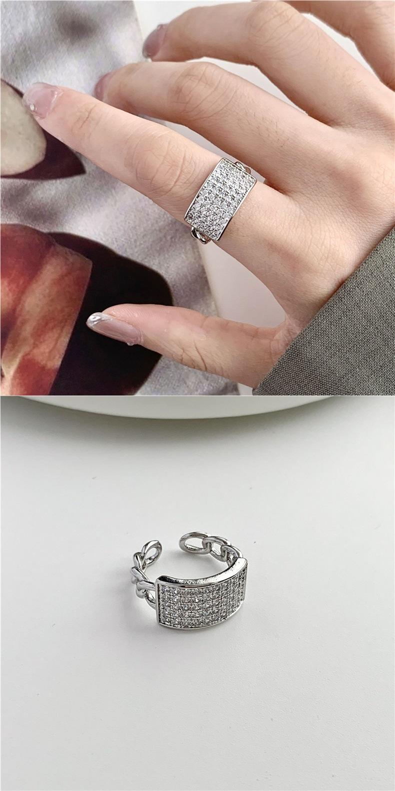 Anillo Cuadrado Exquisito de Diamantes Completos para Mujer Diseño Geométrico Minimalista Lujo Ligero Elegante Versátil Anillo Abierto para el Dedo Índice Anillo de Dedo Índice de Personalidad