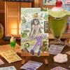 Black and gray fog color, Wood color rattan, White lace, Yellowed old letter, Floral cloth stickers, Light green tree shadows
