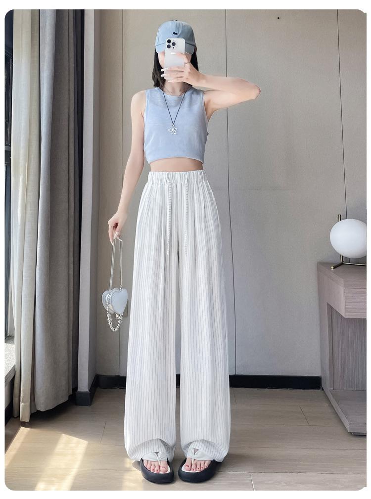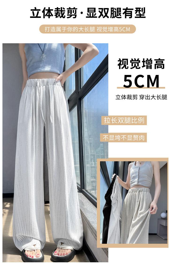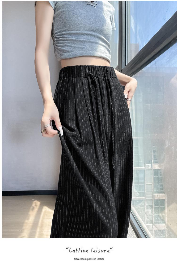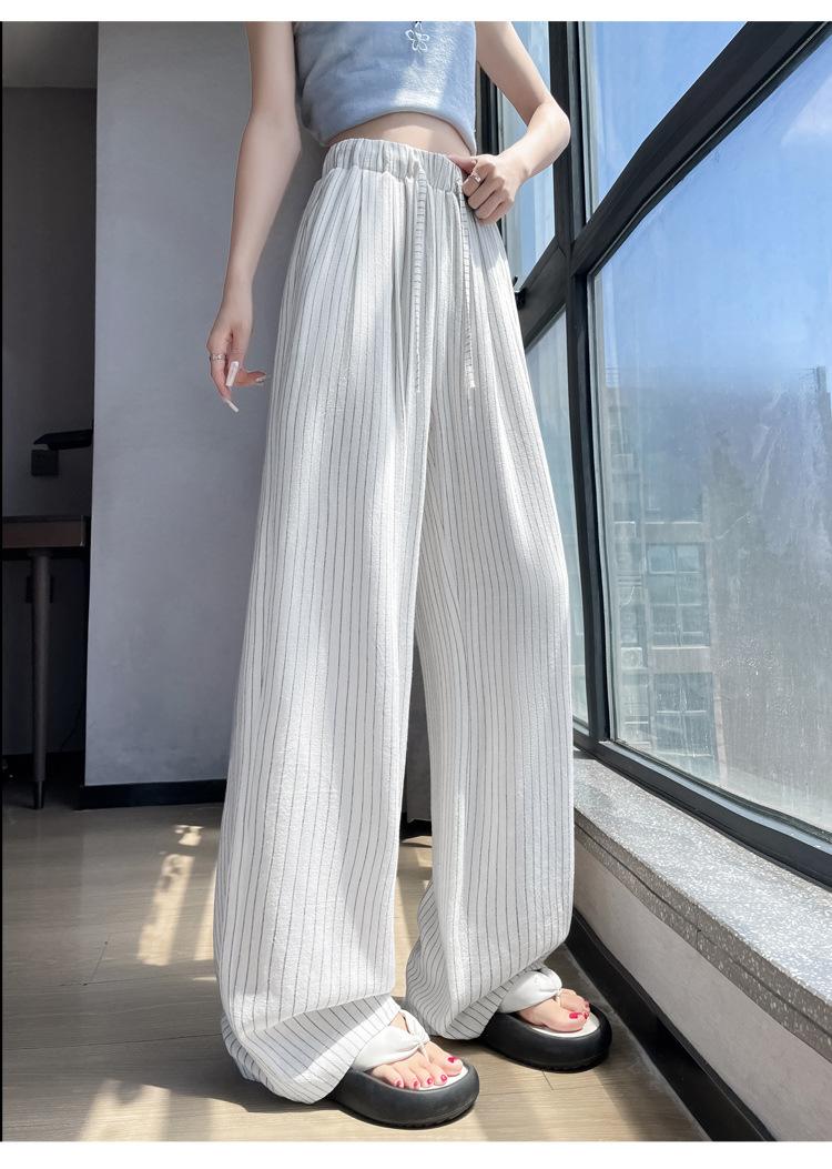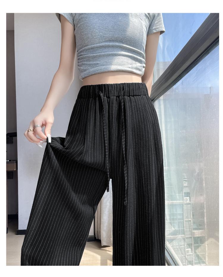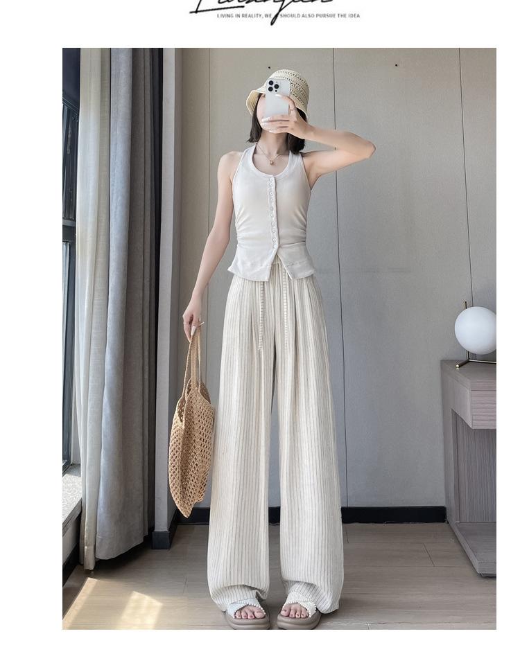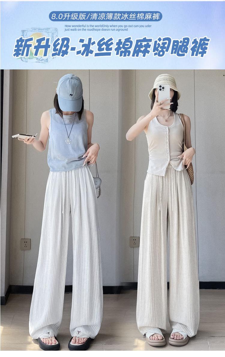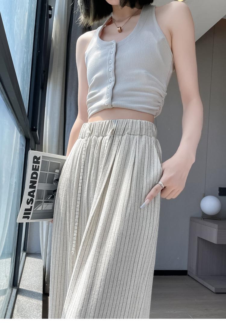 Pantalones holgados de verano algodón lino lino cintura alta elásticos cómodos transpirables pantalones de pierna ancha para mujer delgados a rayas pantalones casuales algodón puro