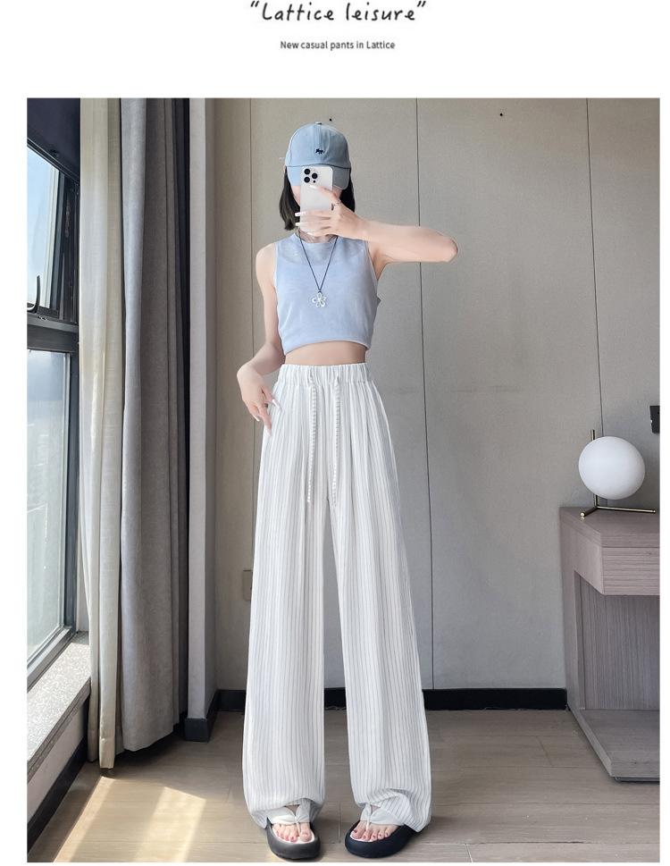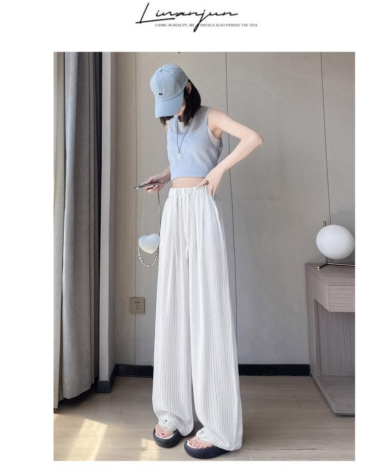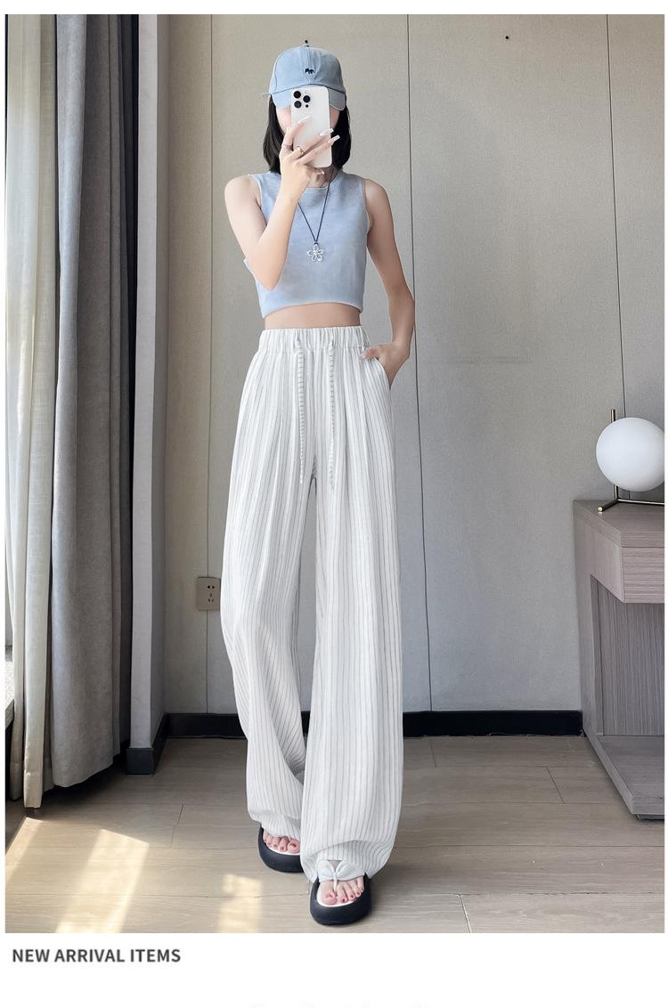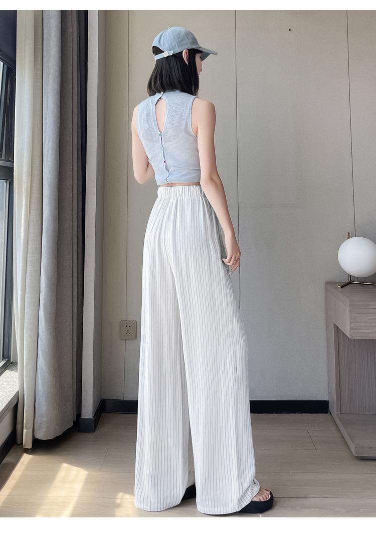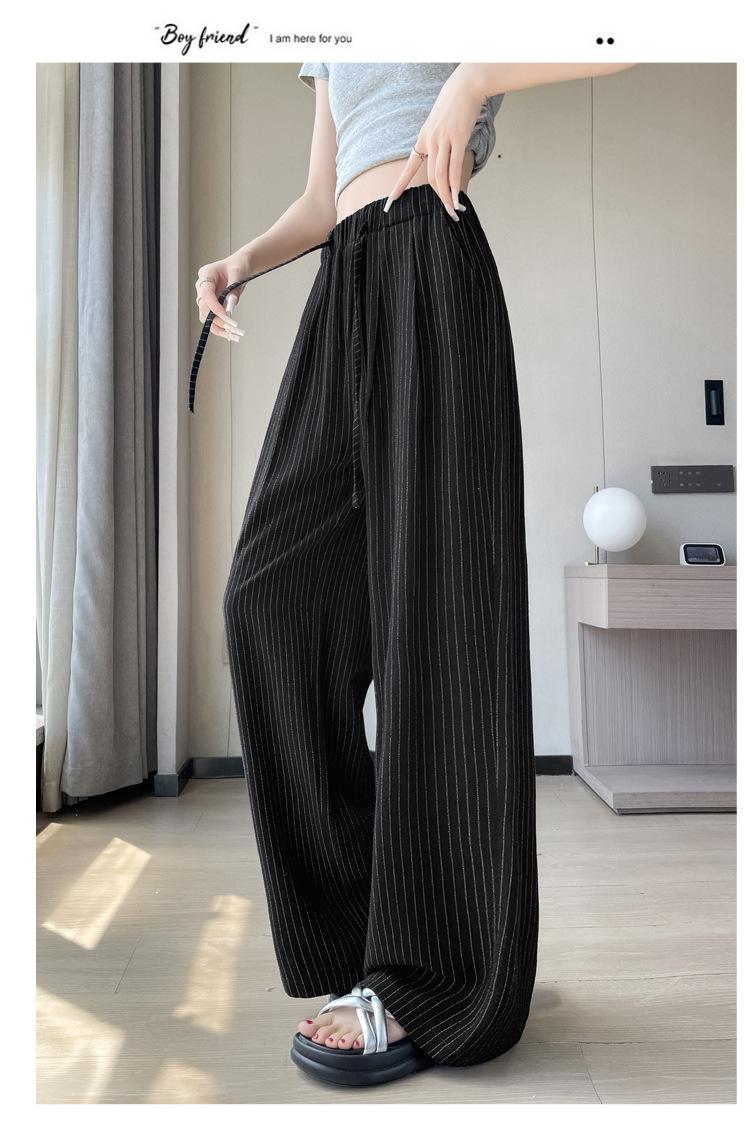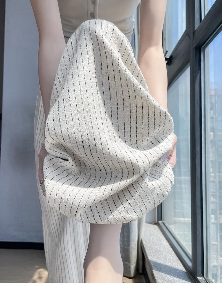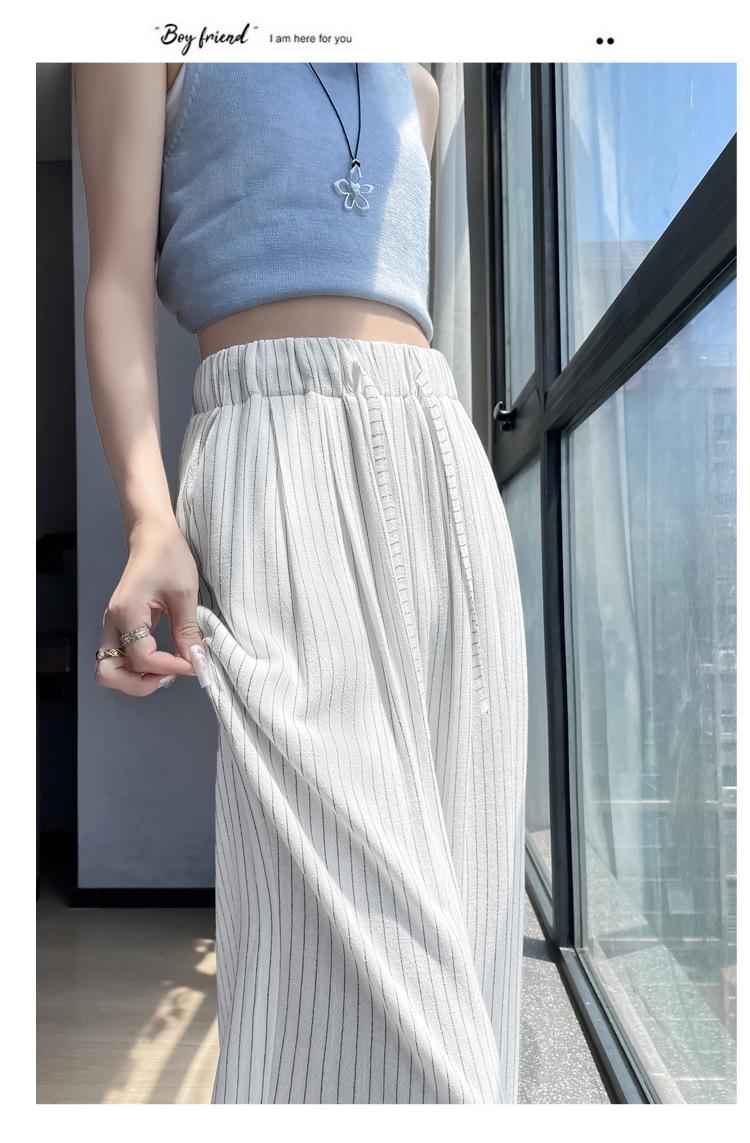Pantalones holgados de verano algodón lino lino cintura alta elásticos cómodos transpirables pantalones de pierna ancha para mujer delgados a rayas pantalones casuales algodón puro