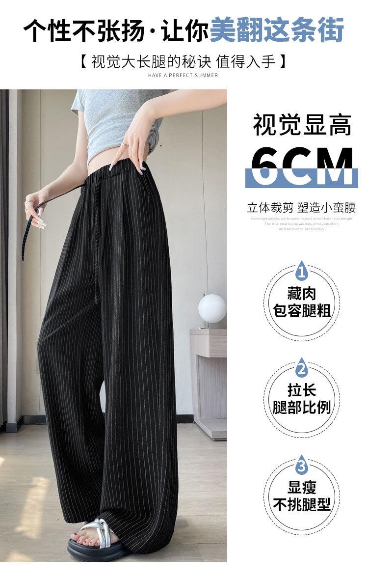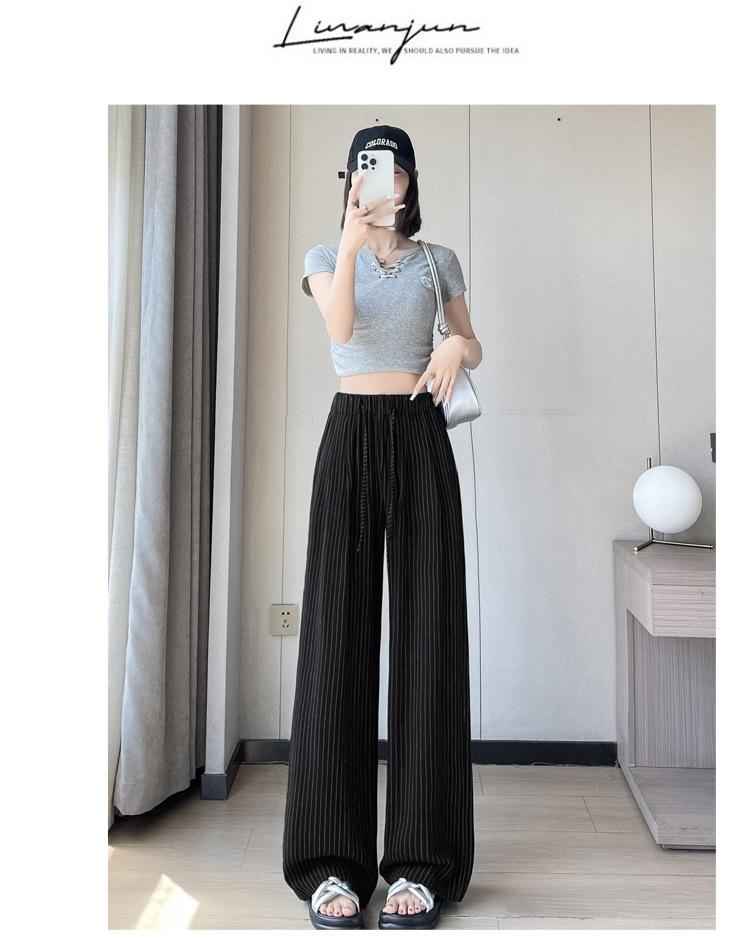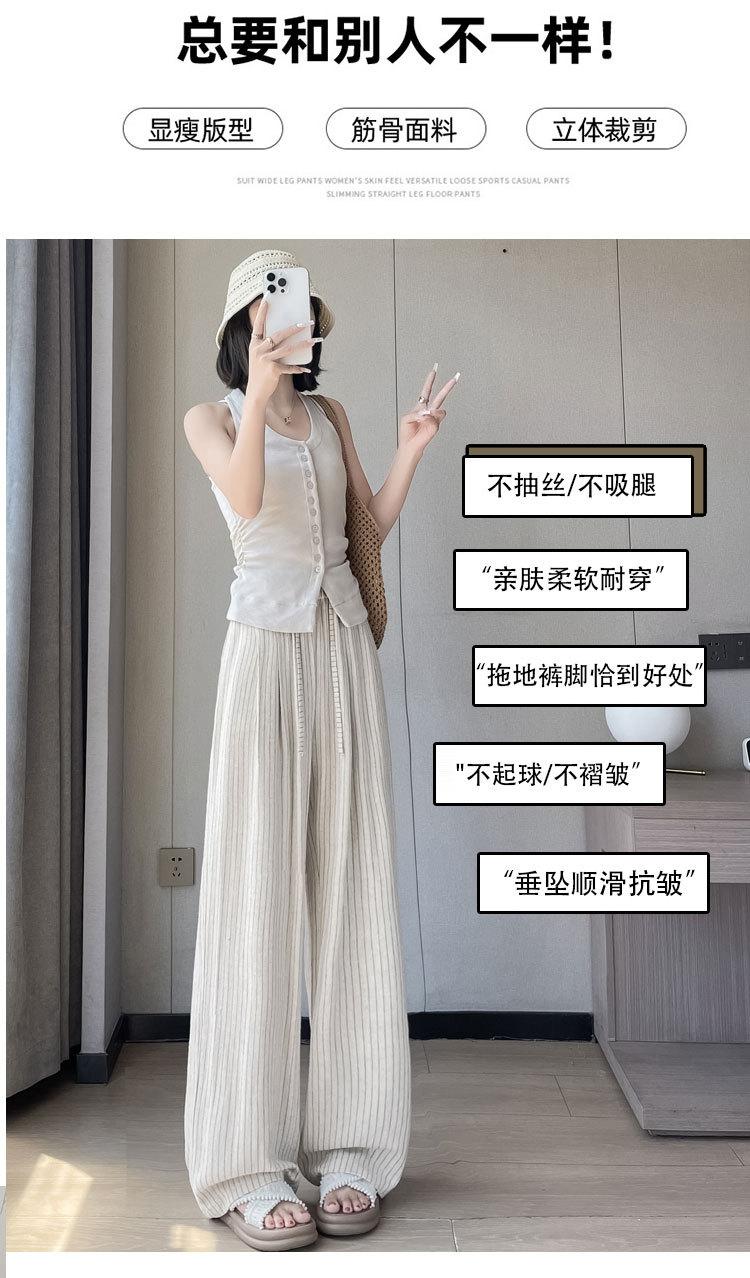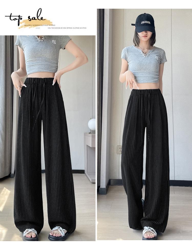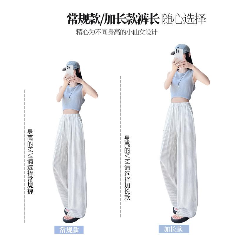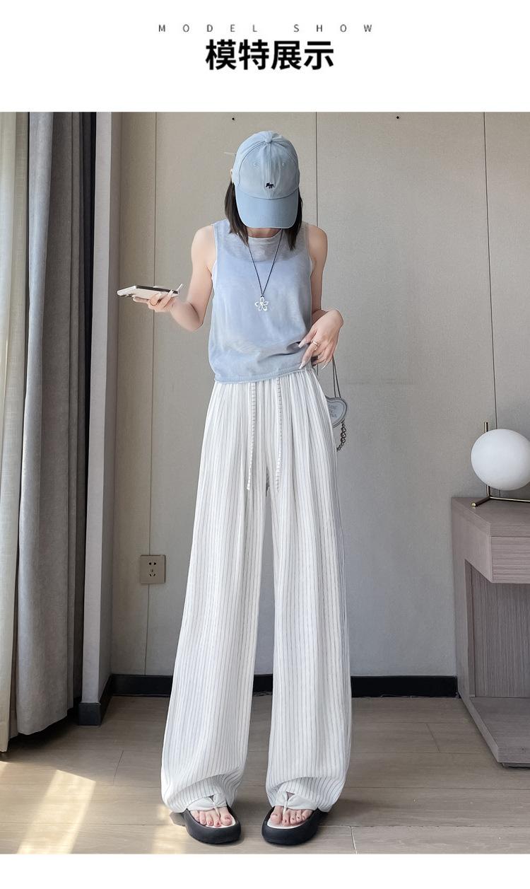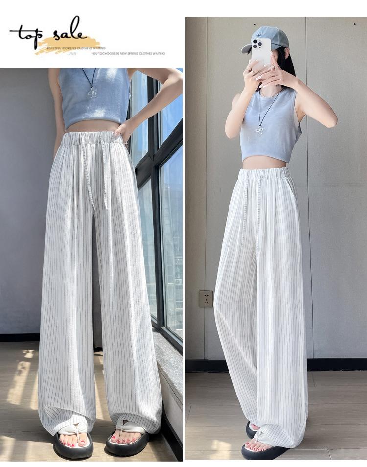 Pantalones holgados de verano algodón lino lino cintura alta elásticos cómodos transpirables pantalones de pierna ancha para mujer delgados a rayas pantalones casuales algodón puro