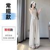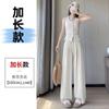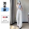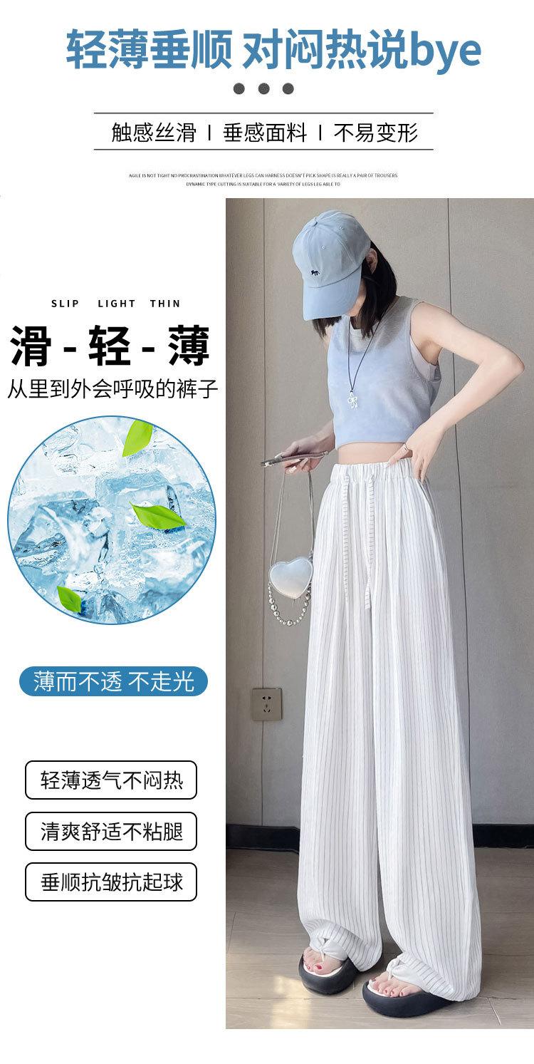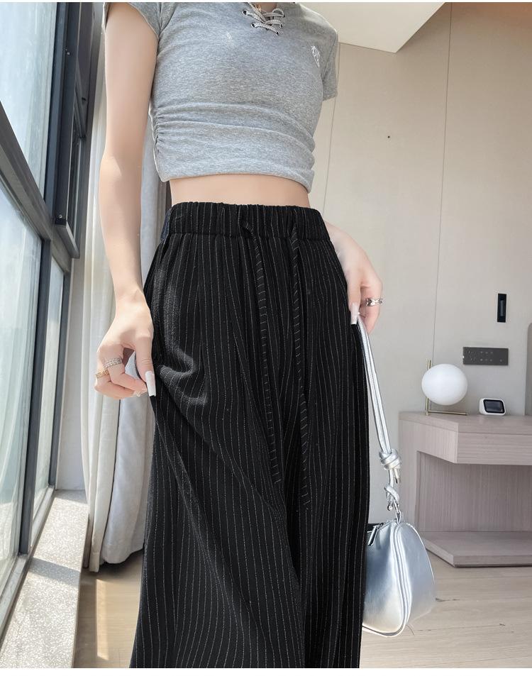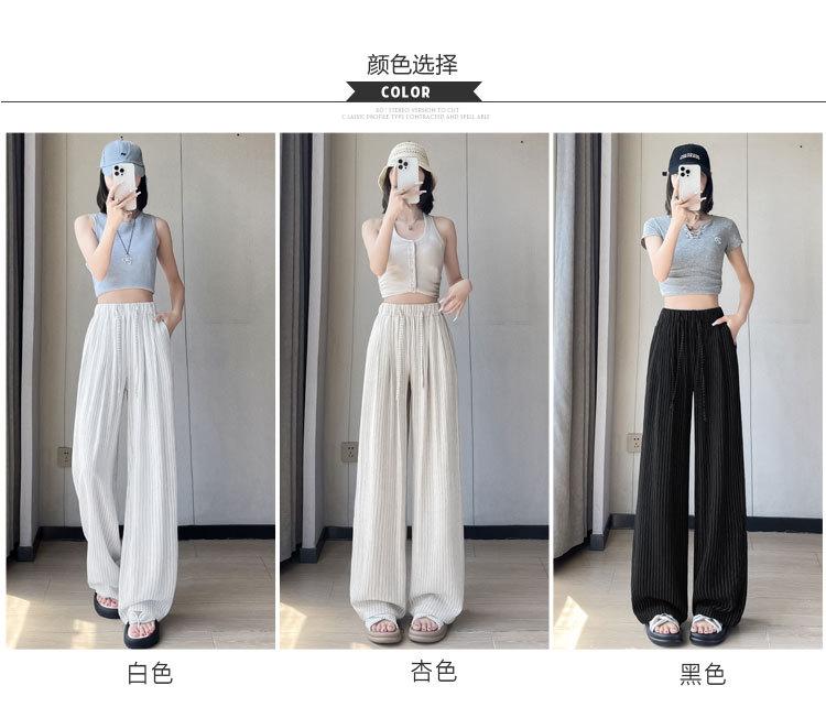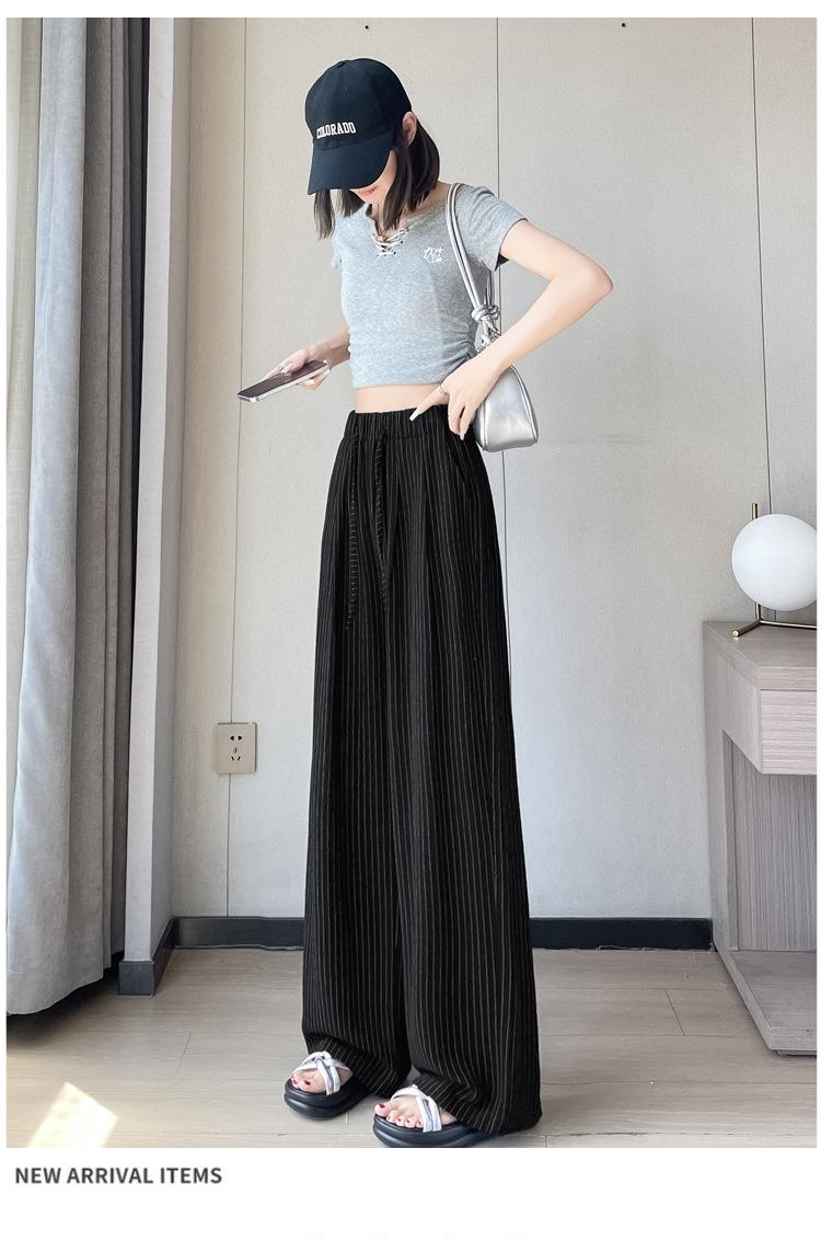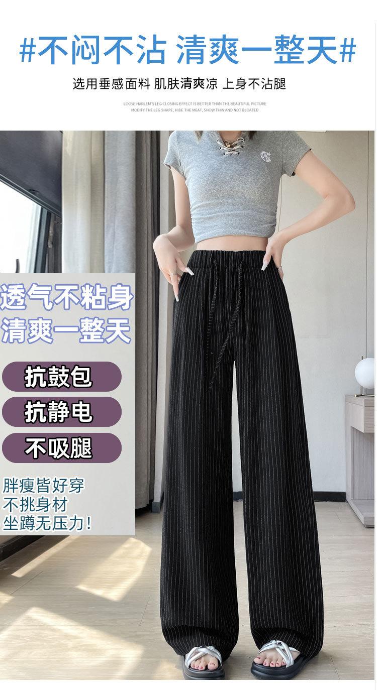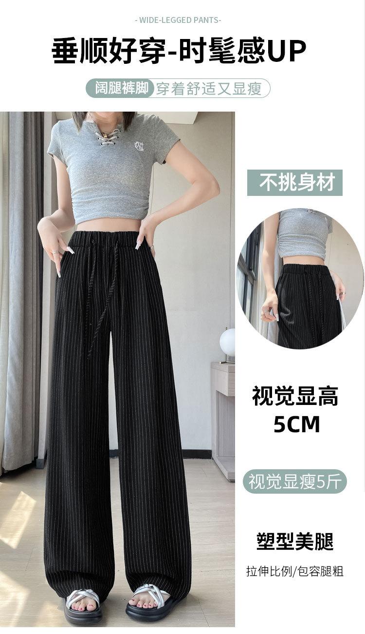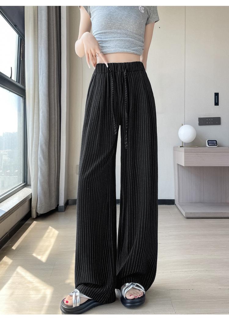 Pantalones holgados de verano algodón lino lino cintura alta elásticos cómodos transpirables pantalones de pierna ancha para mujer delgados a rayas pantalones casuales algodón puro