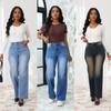 Pantalones de Mezclilla Casuales Holgados de Pierna Ancha para Mujer de Comercio Exterior Transfronterizo Europeo y Americano Ventas Directas de Fábrica