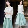 Conjunto de estilo nuevo 2025 para mujer, ropa de verano, ropa exterior, estilo étnico, holgado, moderno, casual, pantalones capri de pierna ancha, conjunto de dos piezas