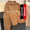 Abrigo Suéter de Solapa con Doble Cremallera para Mujer Otoño e Invierno Engrosado Pequeño Suave Ceroso Holgado Perezoso Terciopelo de Mapache Cárdigan Tejido