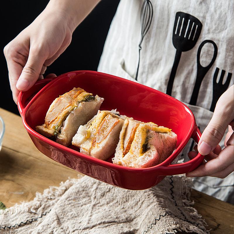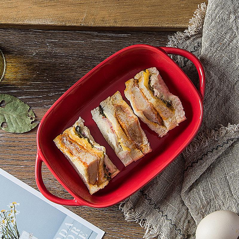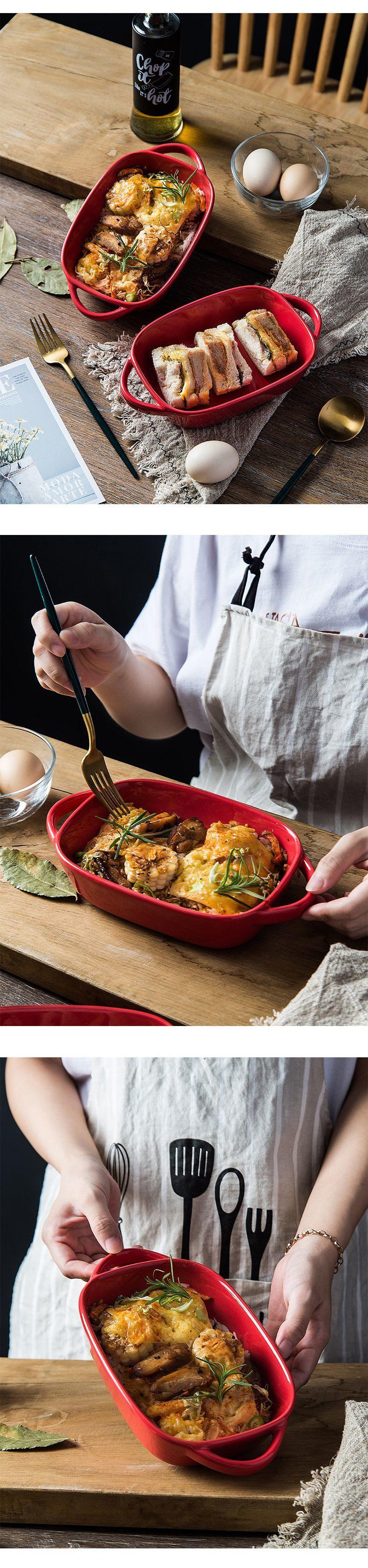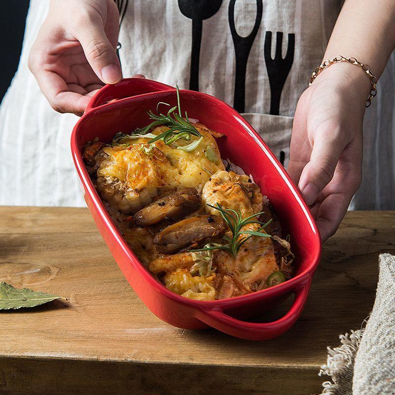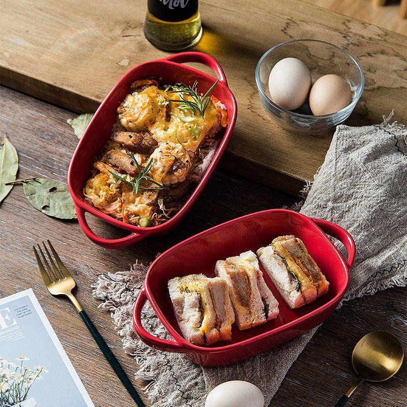 Plato para Hornear Binaural Nórdico Cerámico para Hogar Plato para Arroz Microondas Horno Queso Creativo Plato Rectangular Vajilla para Horno