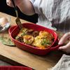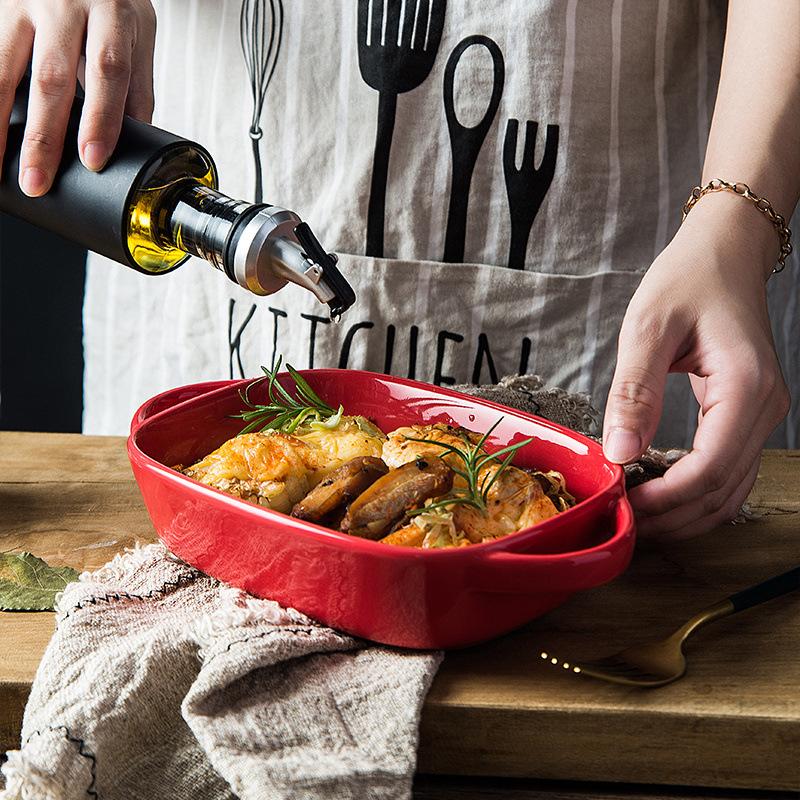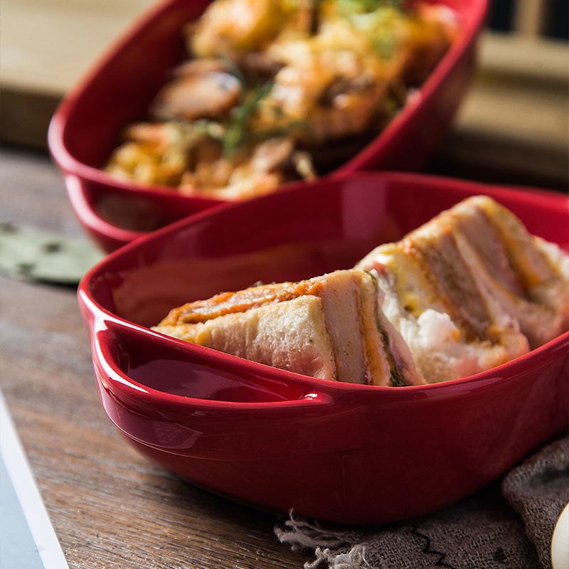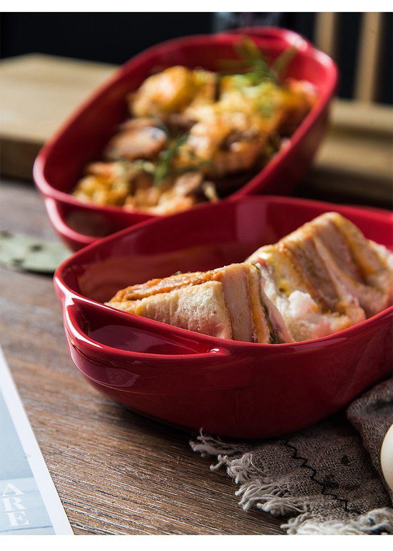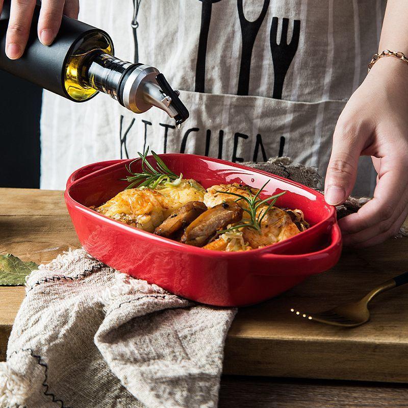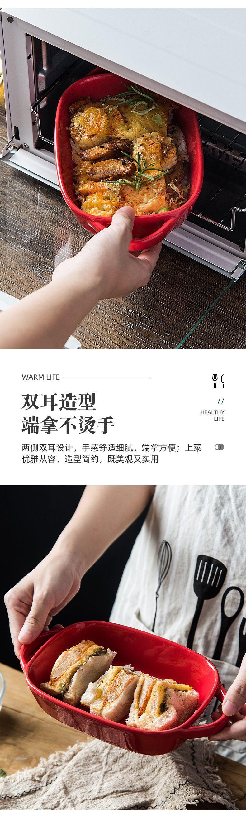 Plato para Hornear Binaural Nórdico Cerámico para Hogar Plato para Arroz Microondas Horno Queso Creativo Plato Rectangular Vajilla para Horno