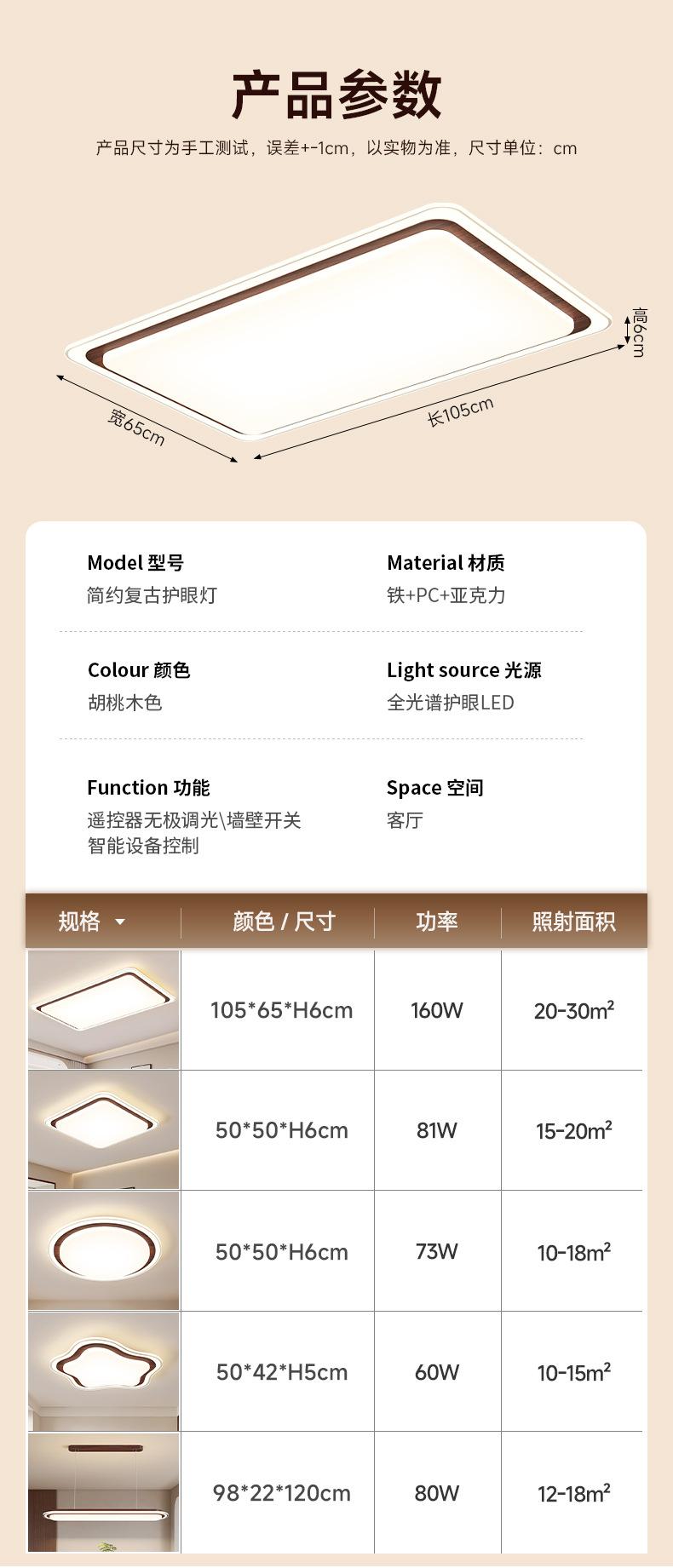 Rectangle 105*65CM Walnut color