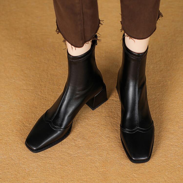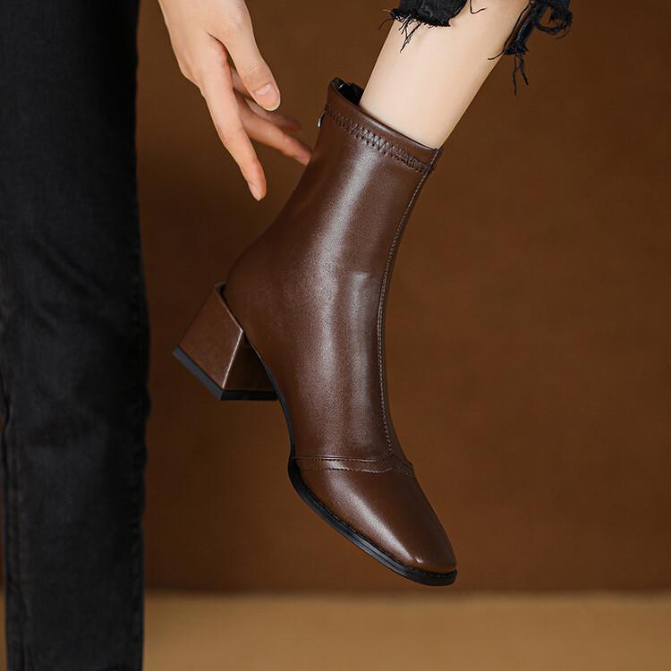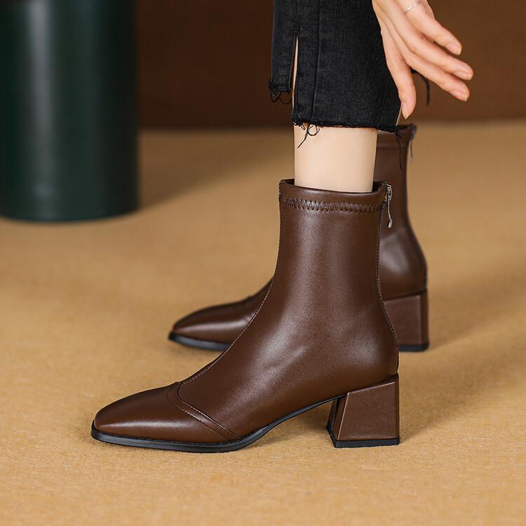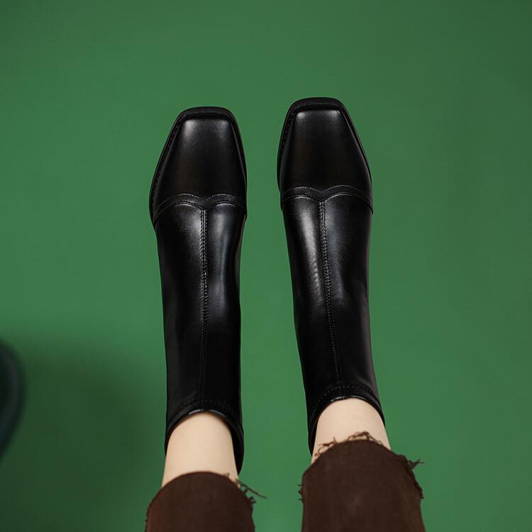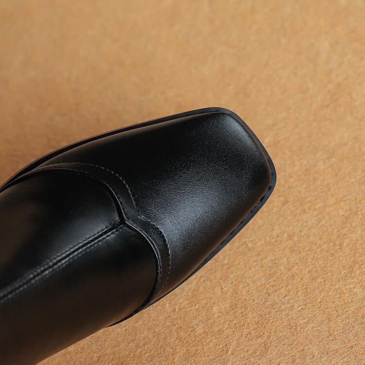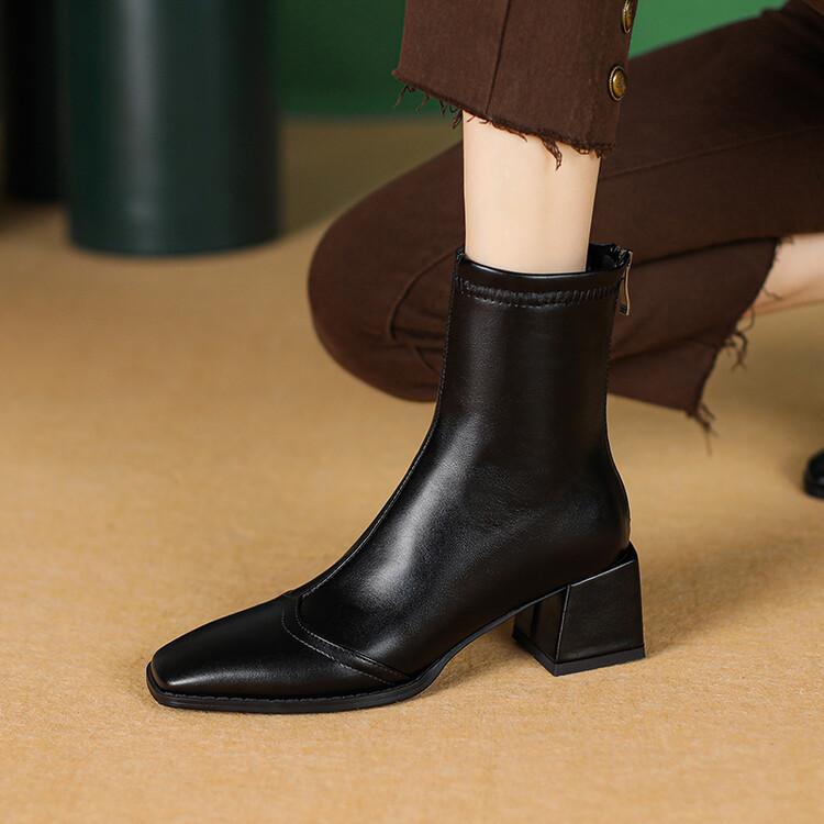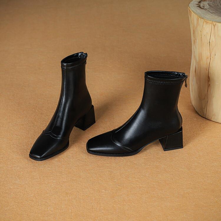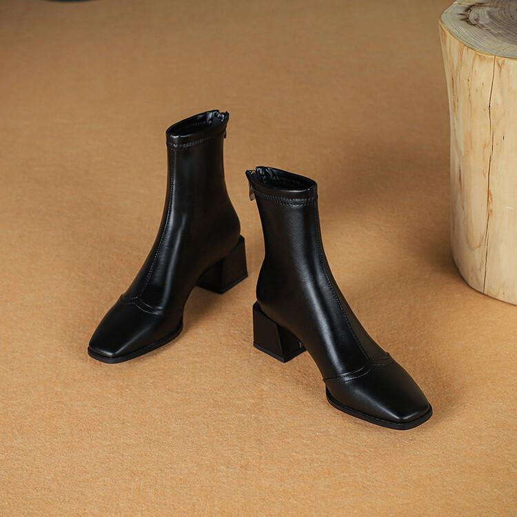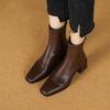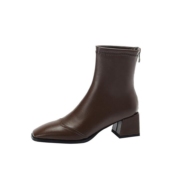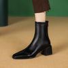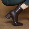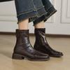Botas de moda de otoño e invierno para mujer, suela de goma, talla grande, botas de cuero, tacón bajo, punta cuadrada, botas de mujer, tacón cuadrado, cremallera trasera, botas de media caña