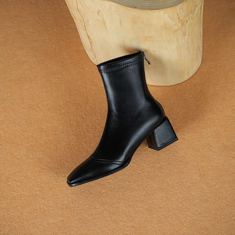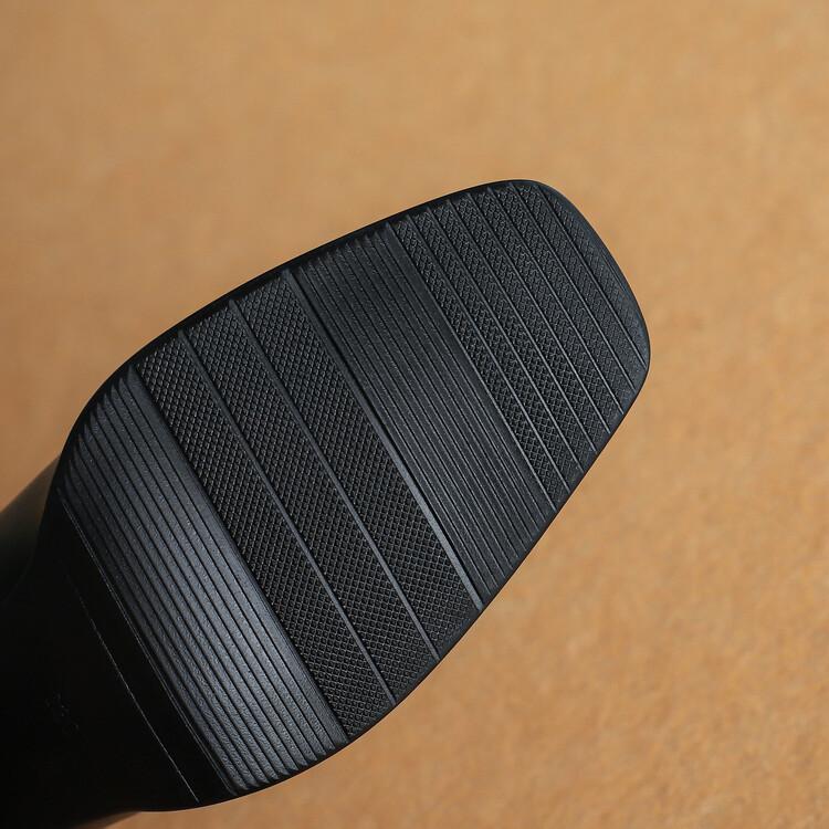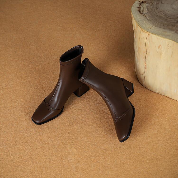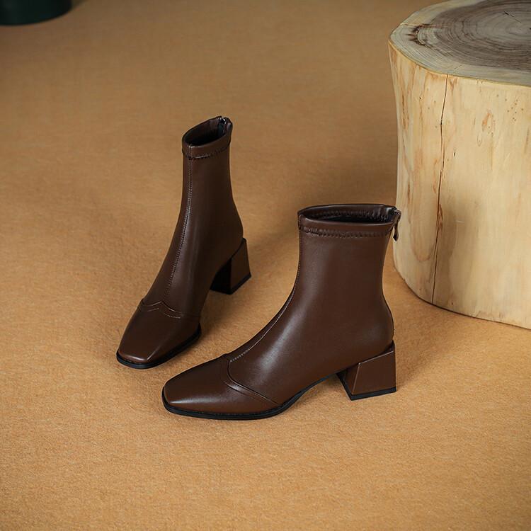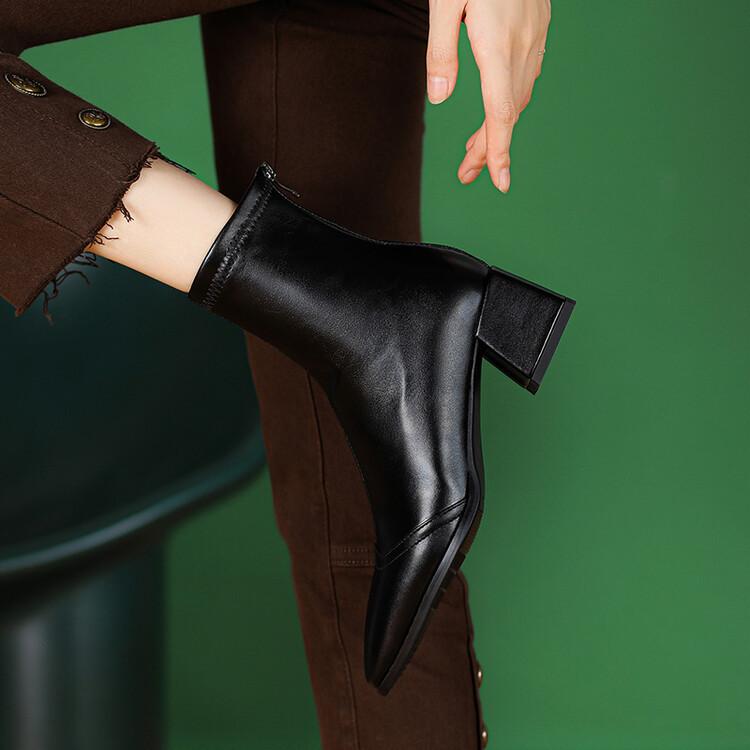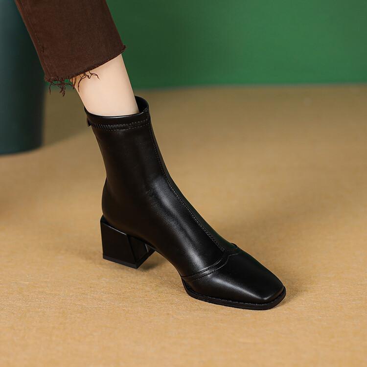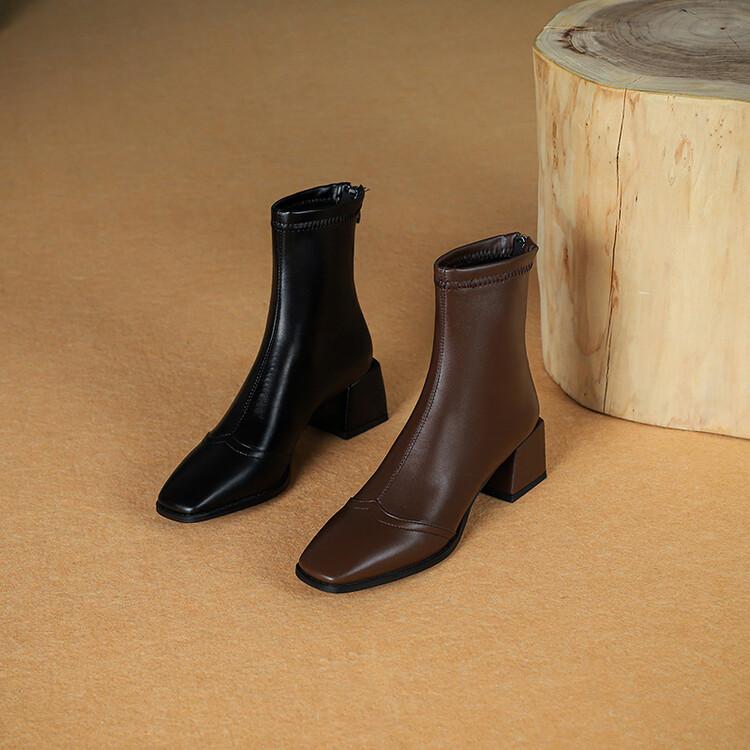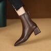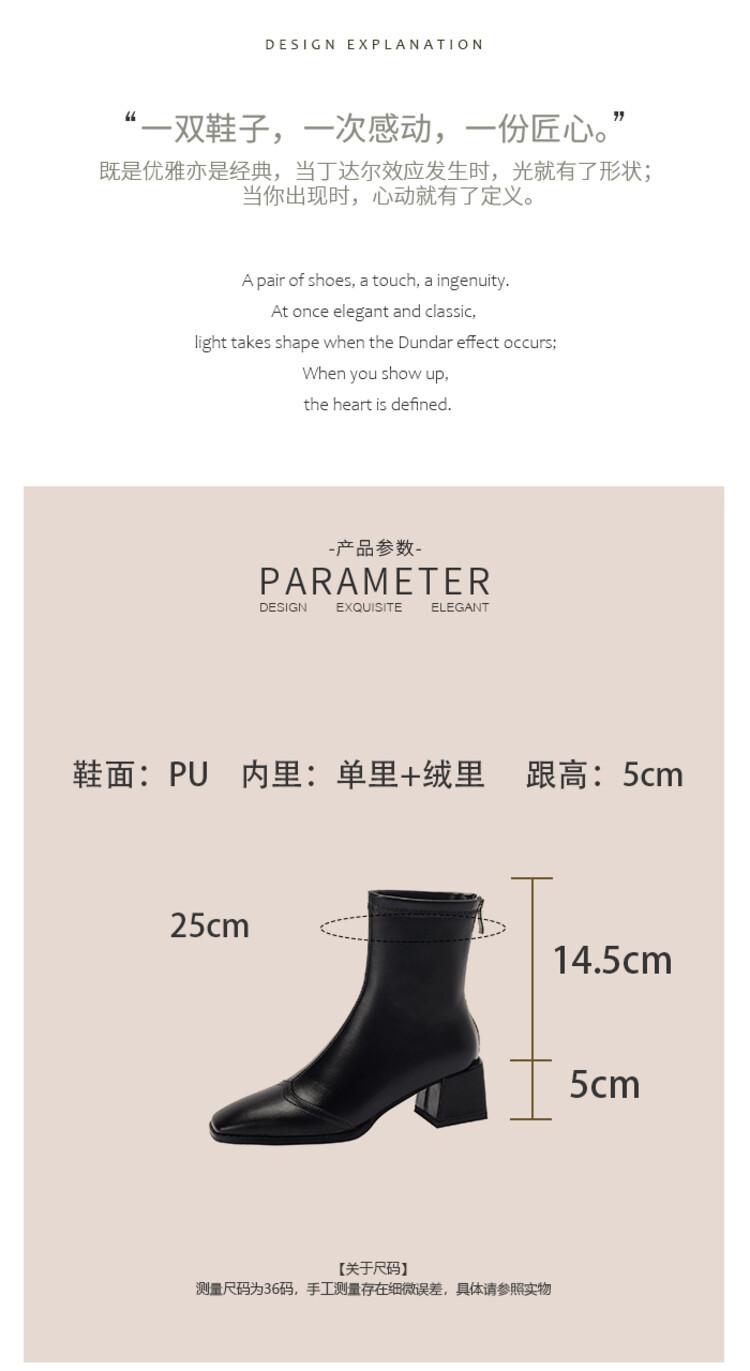 Botas de moda de otoño e invierno para mujer, suela de goma, talla grande, botas de cuero, tacón bajo, punta cuadrada, botas de mujer, tacón cuadrado, cremallera trasera, botas de media caña