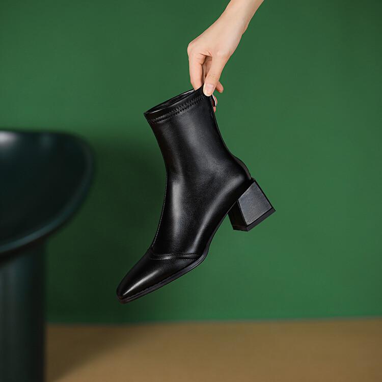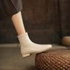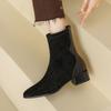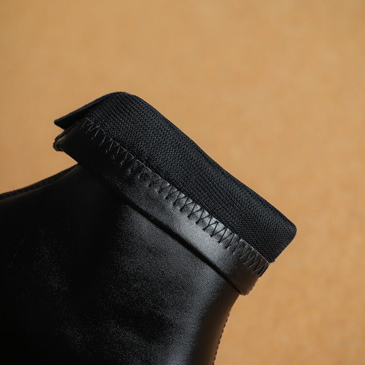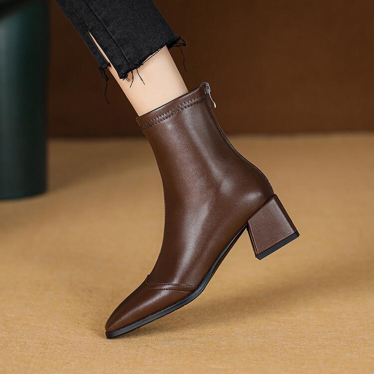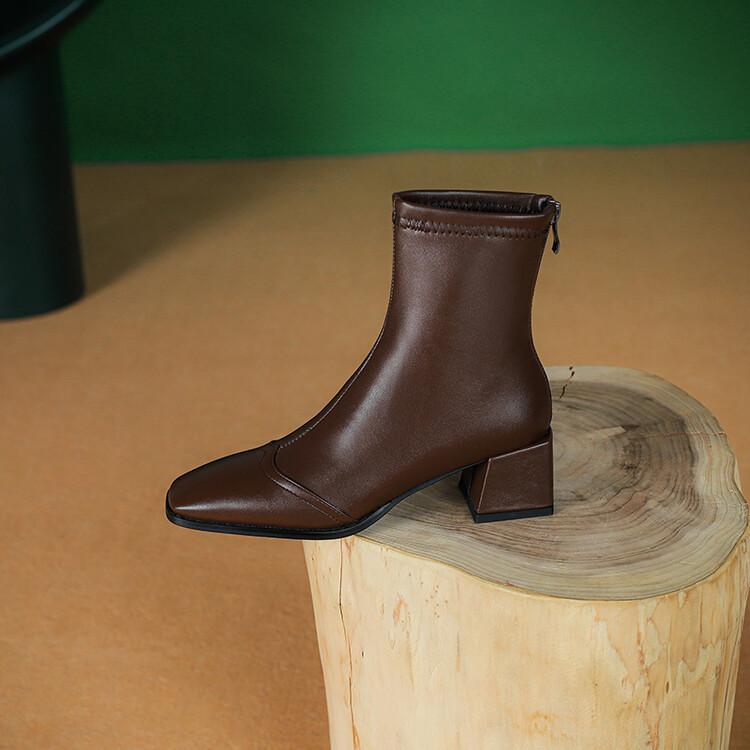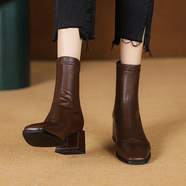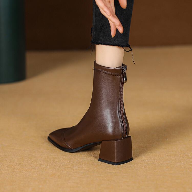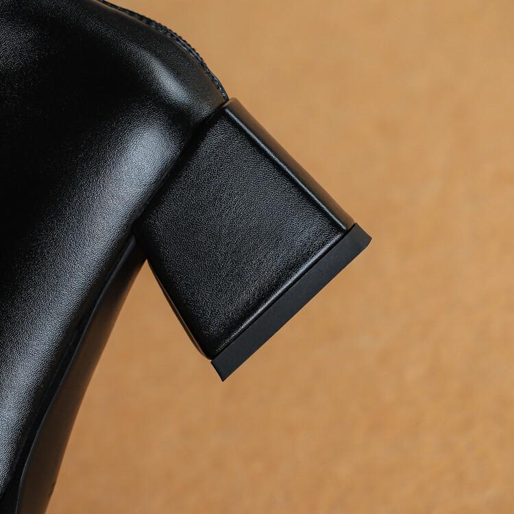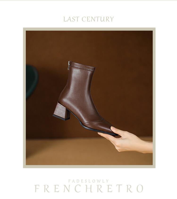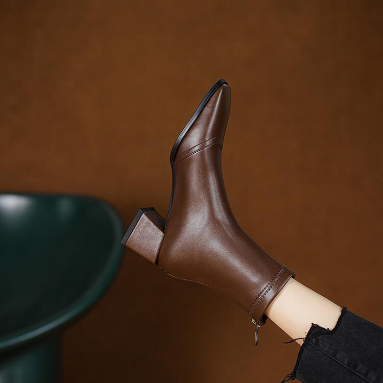 Botas de moda de otoño e invierno para mujer, suela de goma, talla grande, botas de cuero, tacón bajo, punta cuadrada, botas de mujer, tacón cuadrado, cremallera trasera, botas de media caña