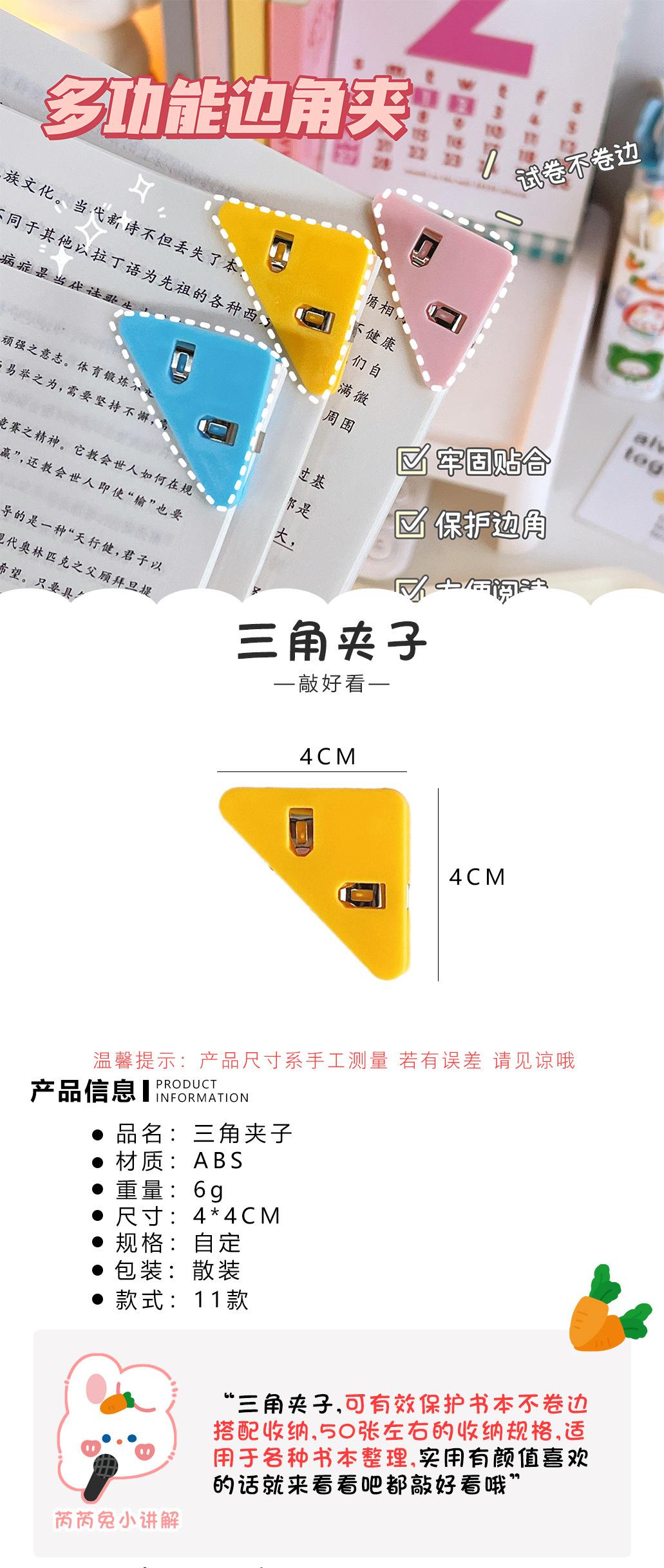 Clips Triangulares Creativos Coloridos Clips de Esquina Lindos Almacenamiento de Carpetas de Papelería Transparente Oficina A4 Recibo Clips de Plástico