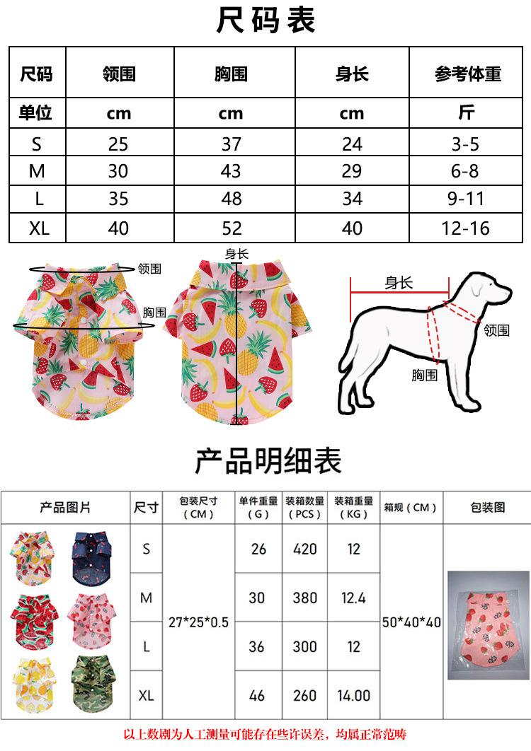 Ventas directas de fábrica ropa para mascotas fruta fresca pequeña ropa para mascotas camisa de verano para perro ropa para perro mascota