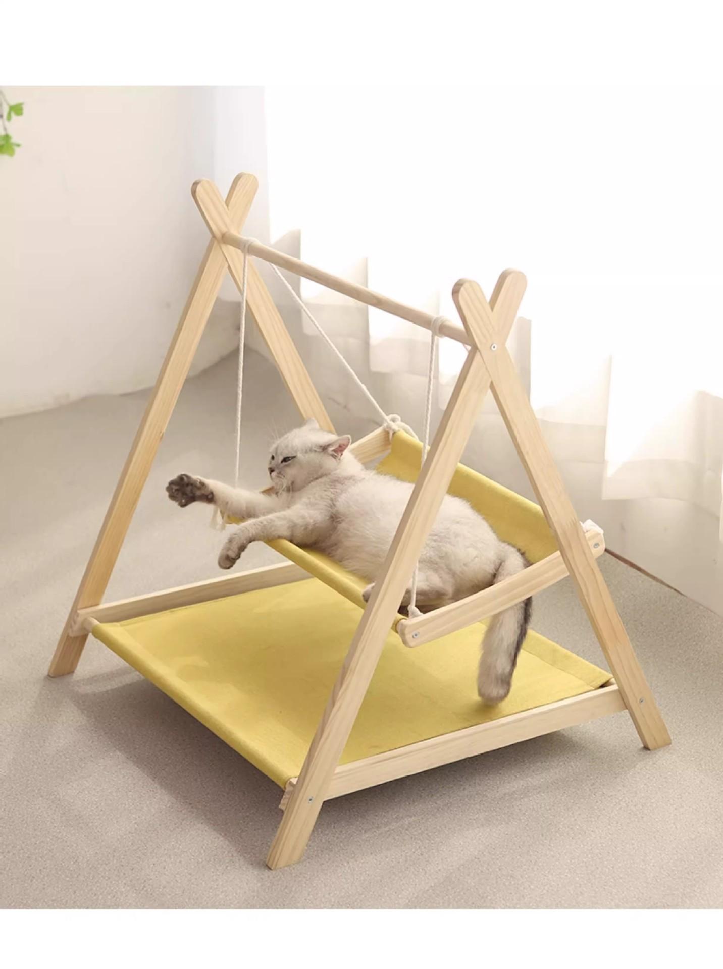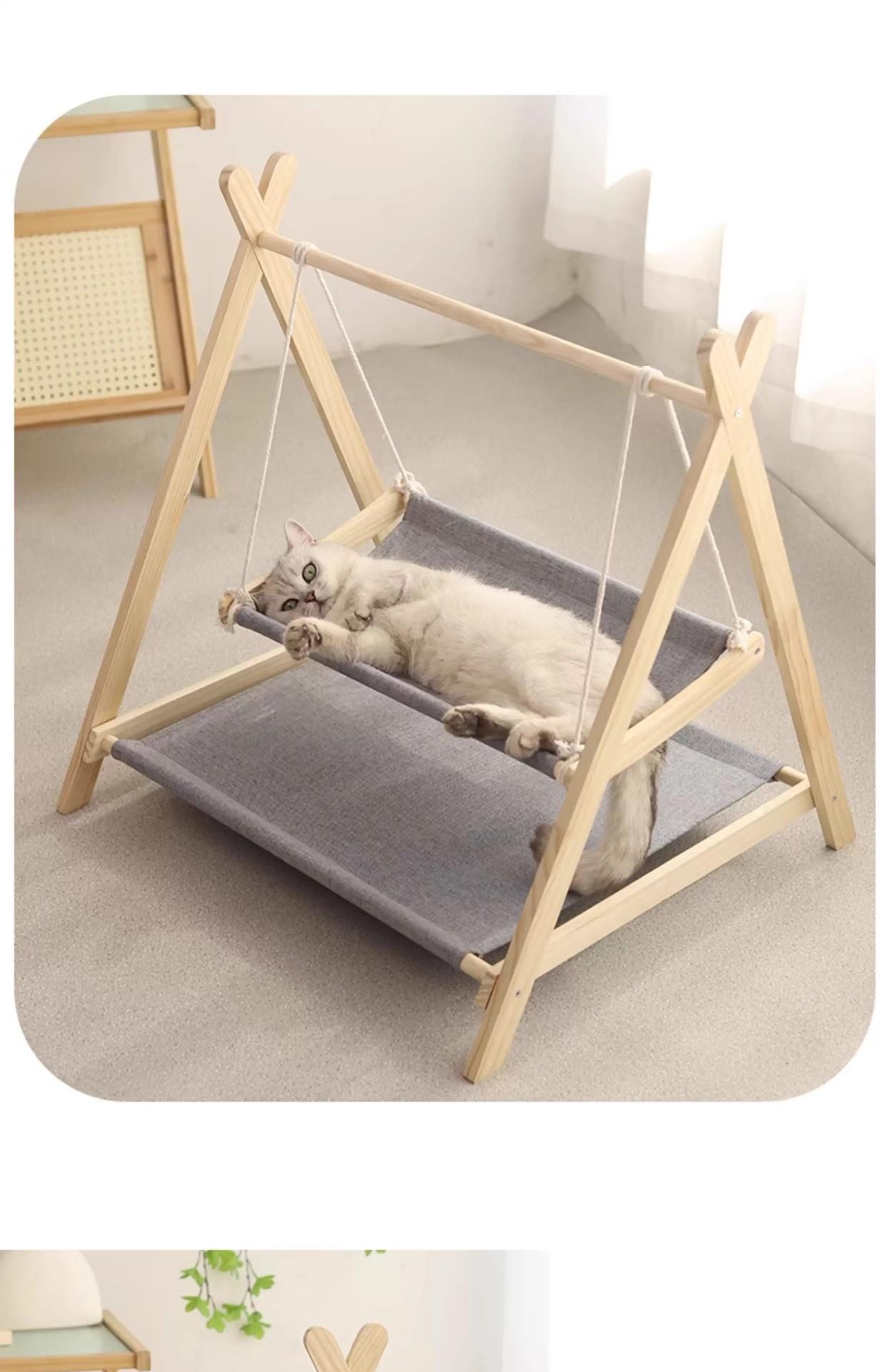 Hamaca Triangular para Gato de Doble Capa para Dormir, Columpio para Mascotas, Universal, Desmontable y Lavable, Nido de Madera Colgante para Gatos para Todas las Estaciones