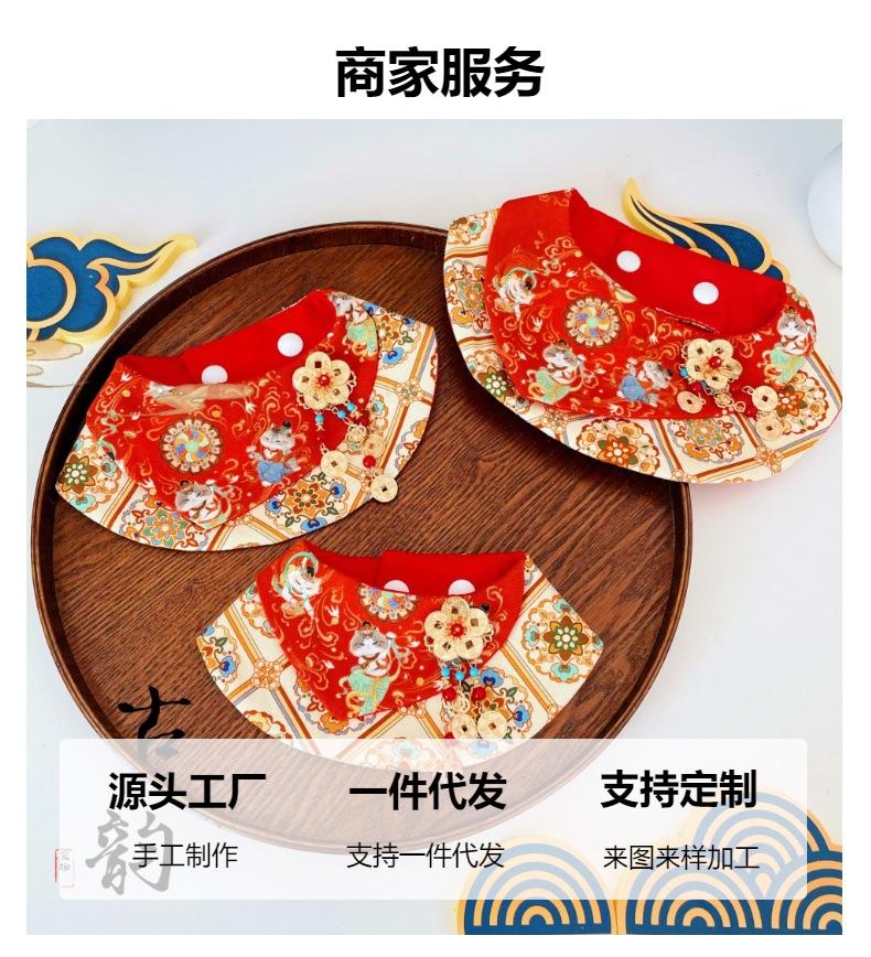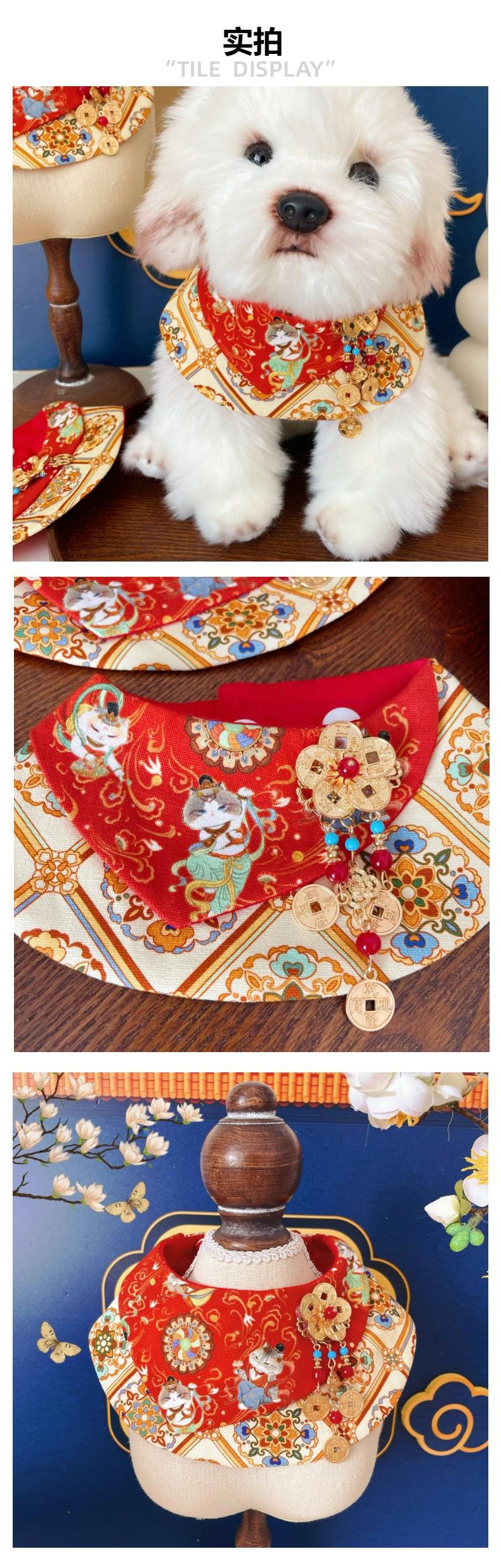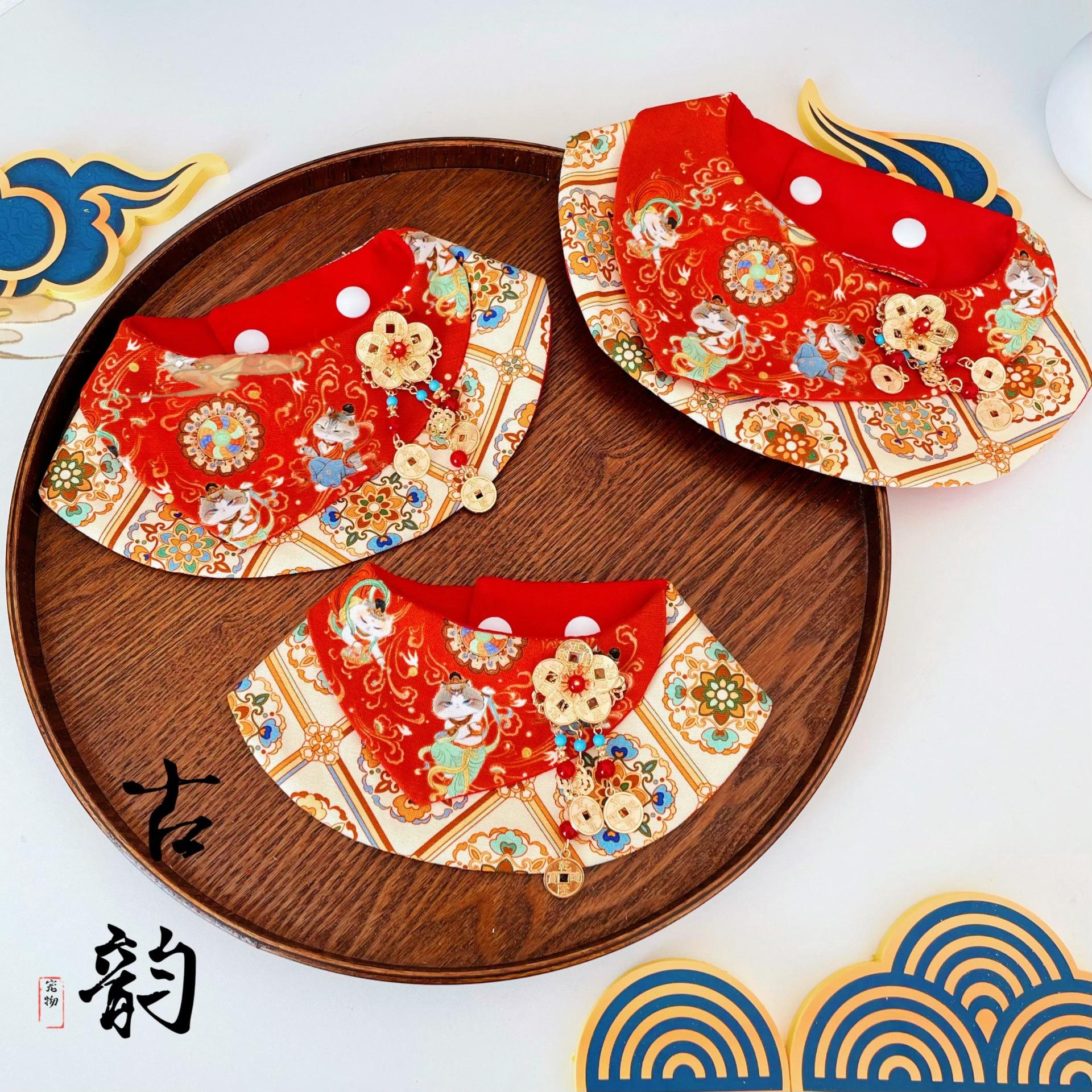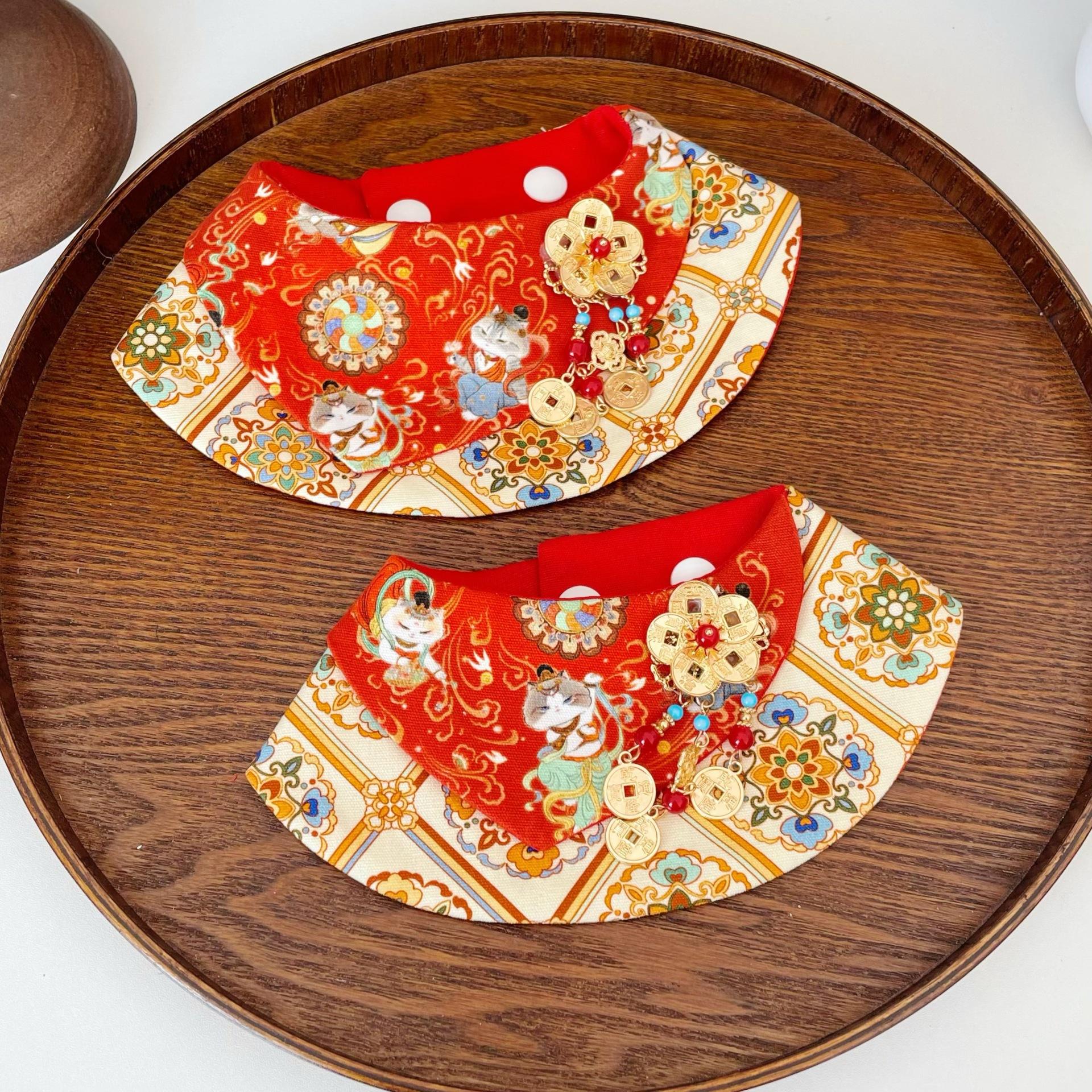 Babero Collar para Mascota Gato Perro Rojo Chino Estilo Tang Babero para Baba Perros Pequeños y Medianos Decoración Marea Nacional