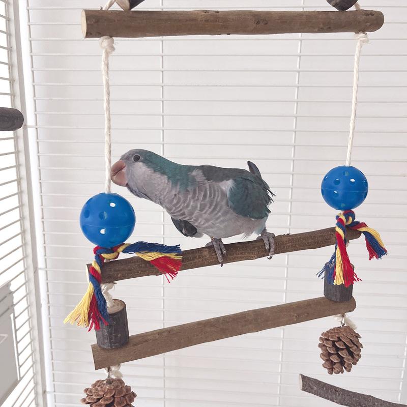 Columpio de Madera para Loro Tronco Estación para Pájaros Barra Xuanfeng Peonía Escalera para Trepar Juguete Divertido para Pico de Loro Suministros para Jaula de Pájaros