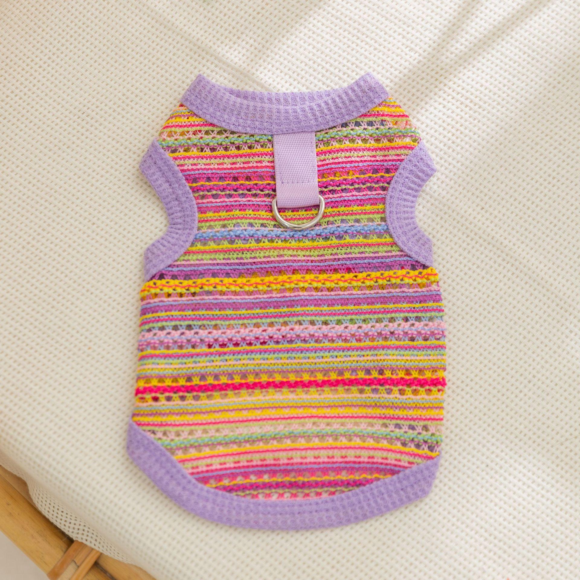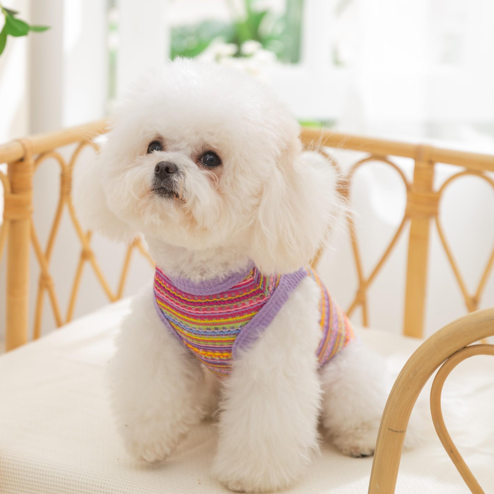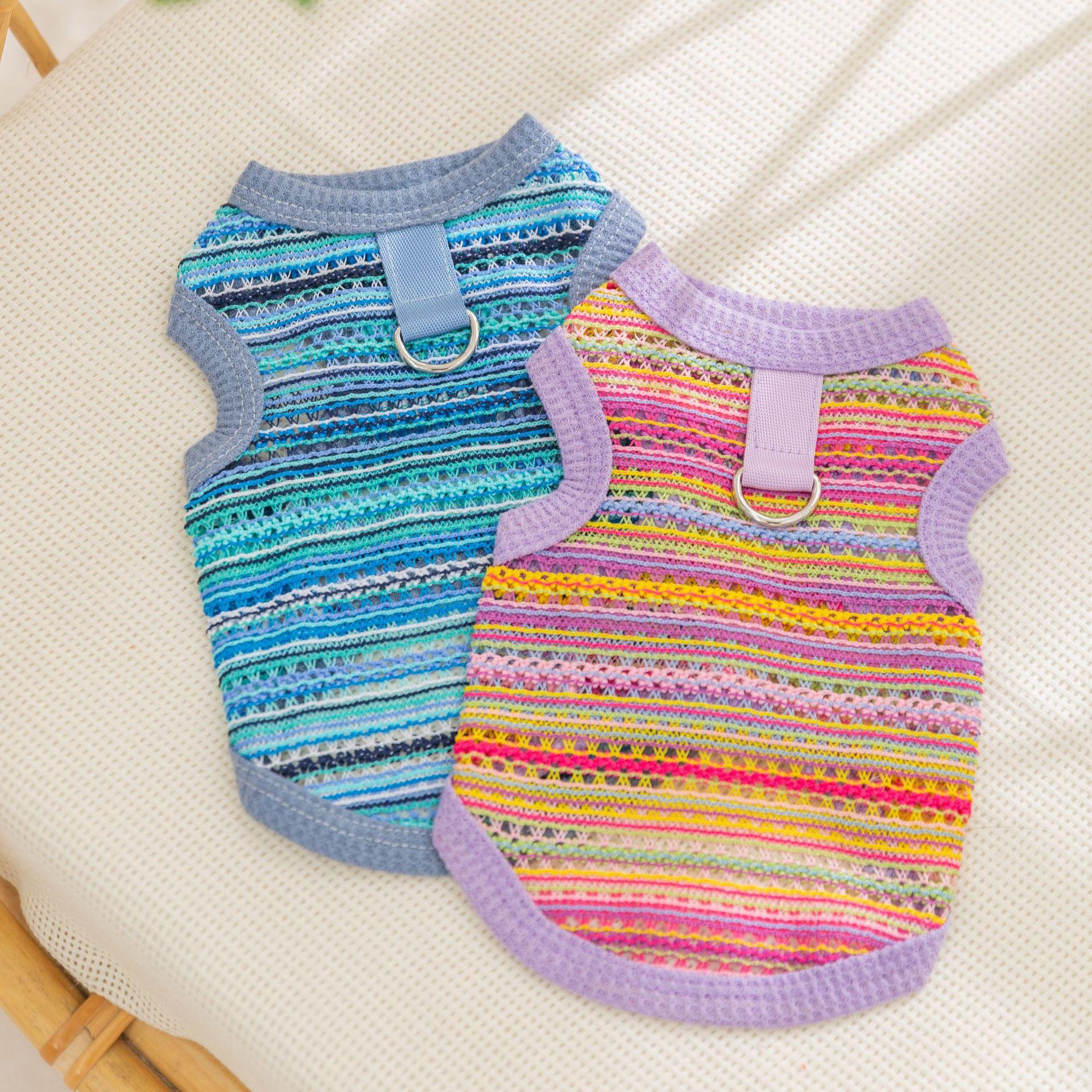 Chaleco de Tracción Tejido Multicolor Arcoíris Delgado de Verano para Perro Mascota con Recortes Perros de Tamaño Pequeño Bichón Teddy Ropa para Perro