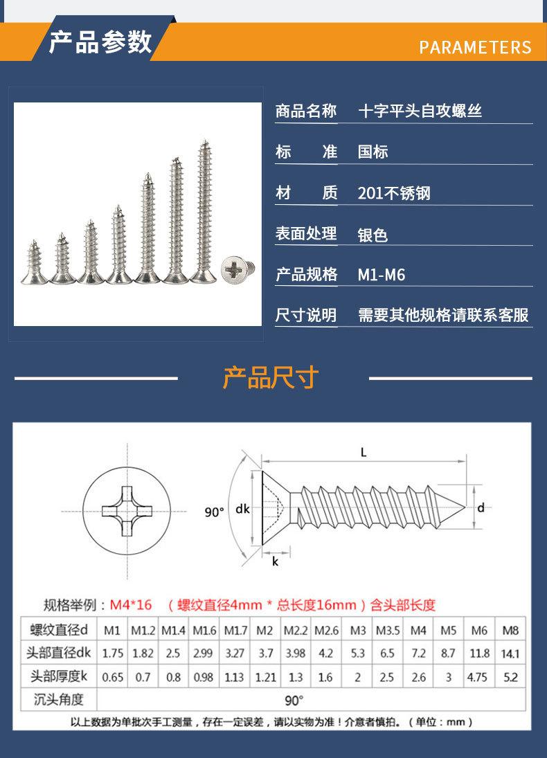 Tornillos autorroscantes de acero inoxidable 201 de cabeza avellanada cruzada Tornillos autorroscantes de cabeza plana Tornillos al por mayor M2M3M4M5M6M8