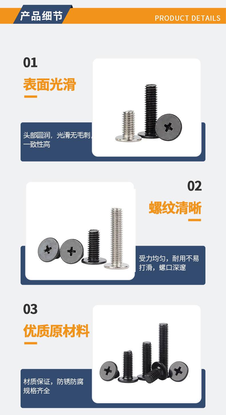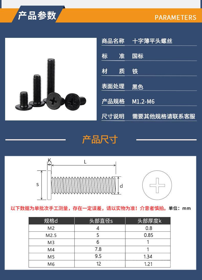 Tornillo de Cabeza Delgada CM Acero al Carbono Negro Ranura Cruz Tornillo de Cabeza Plana Grande Tornillo de Cabeza Plana M1.6M2M3M4M5M6