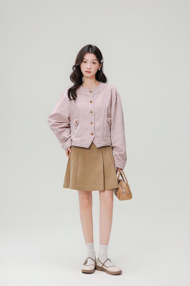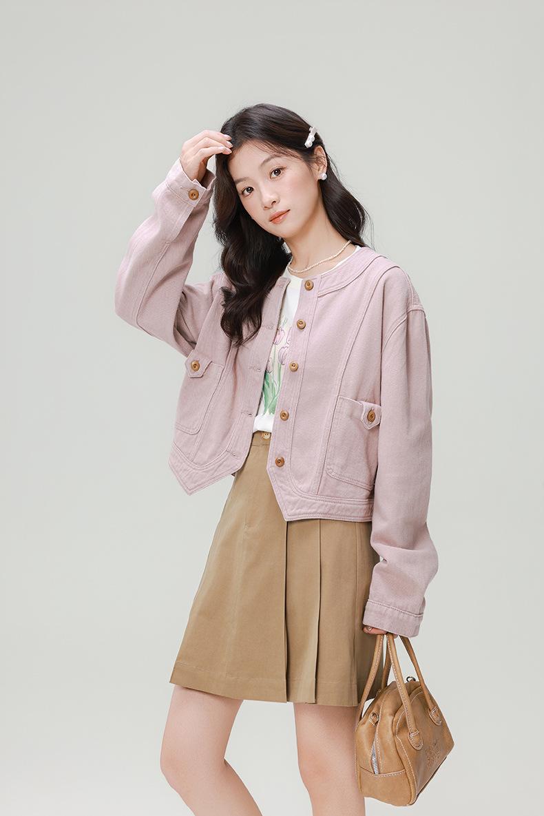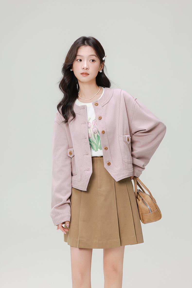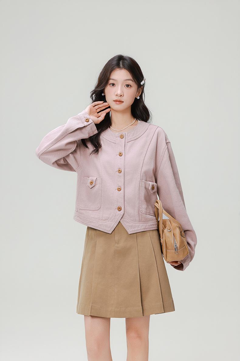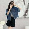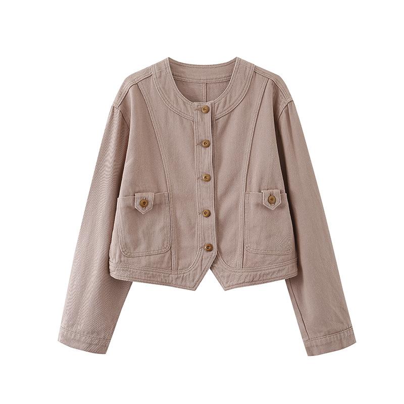 2025 otoño nuevo ropa de trabajo coreana estilo casual diseño simple cuello redondo chaqueta corta de mezclilla mujer