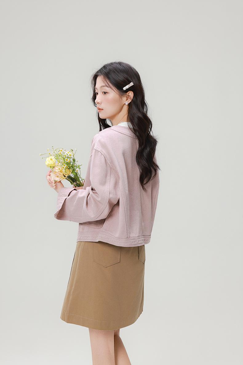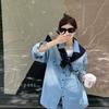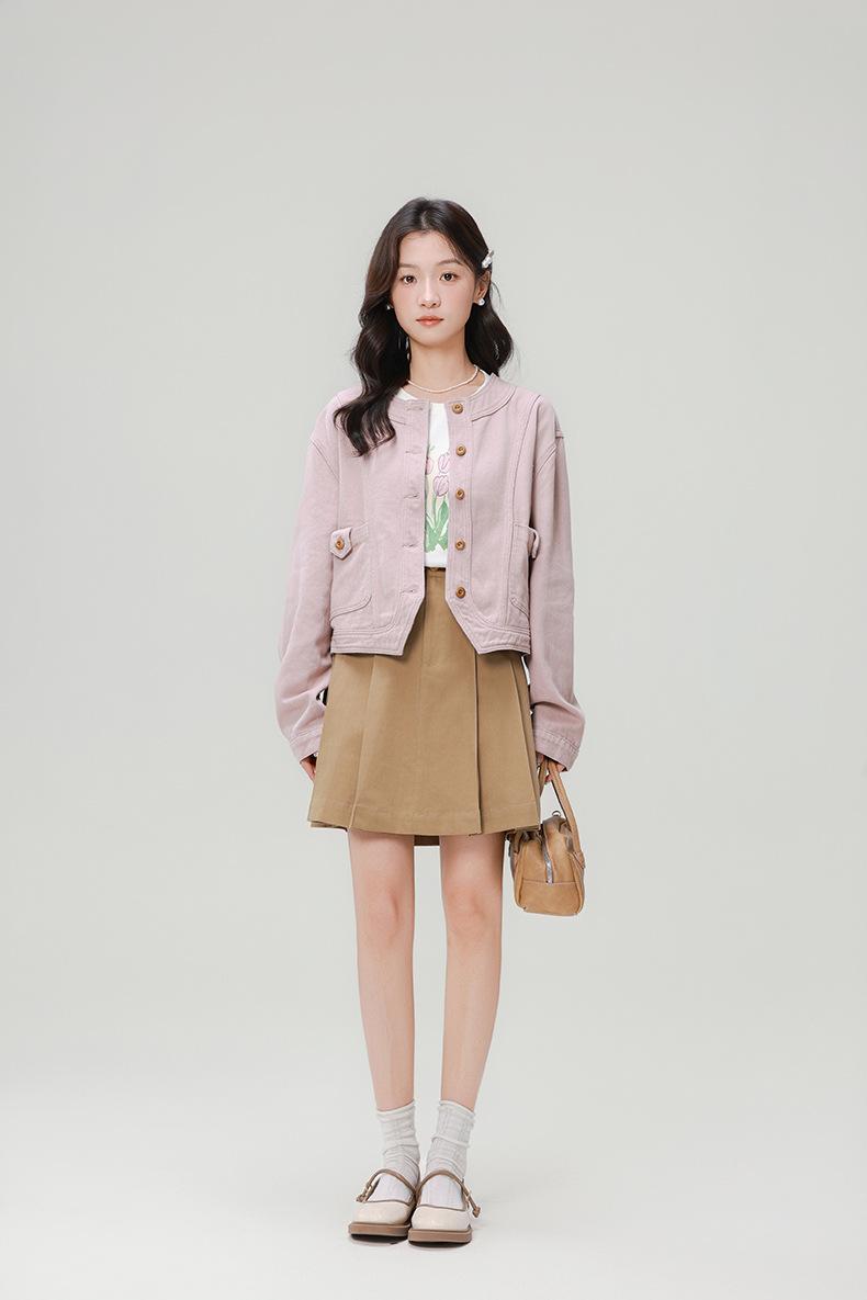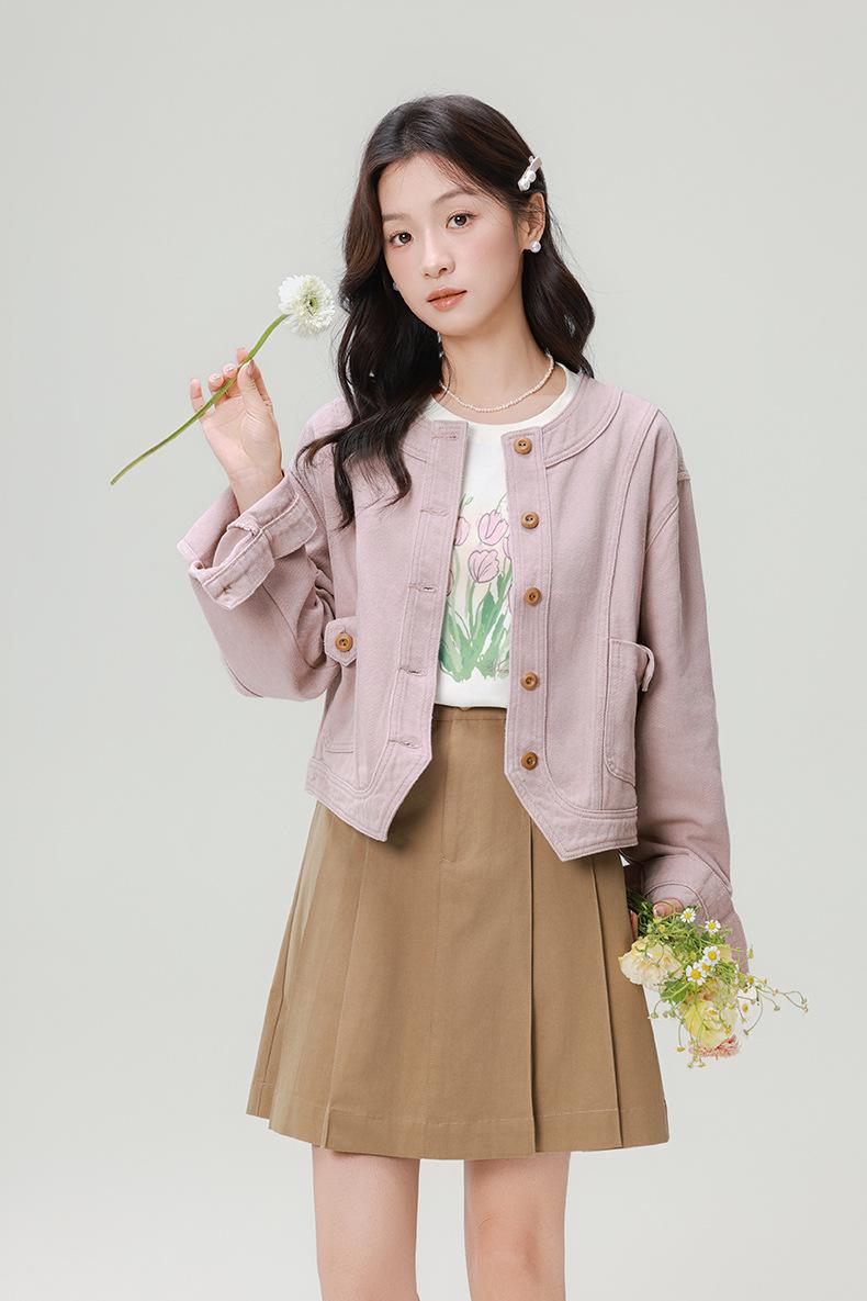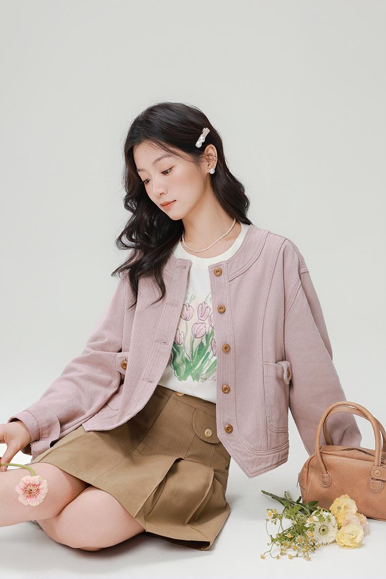 2025 otoño nuevo ropa de trabajo coreana estilo casual diseño simple cuello redondo chaqueta corta de mezclilla mujer