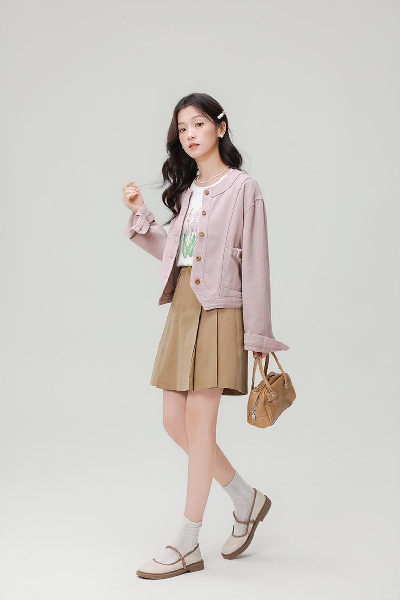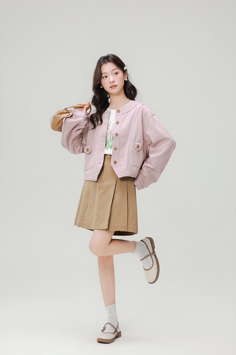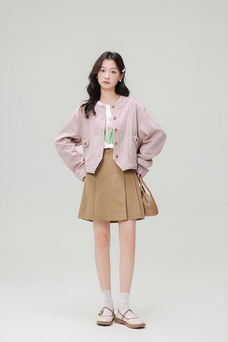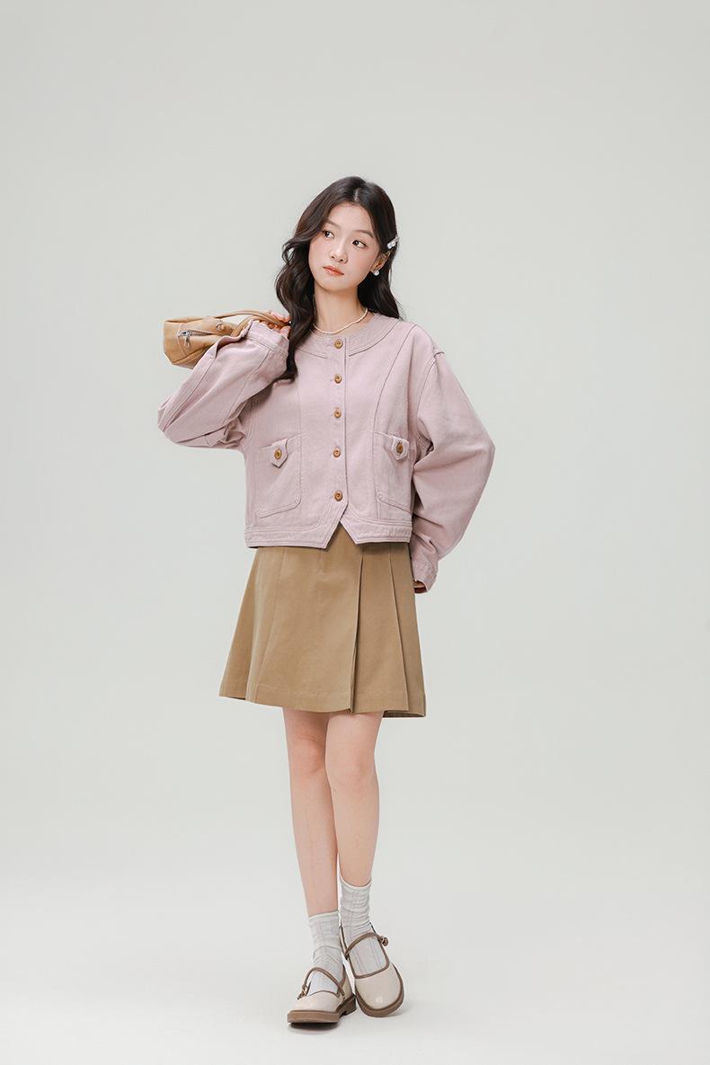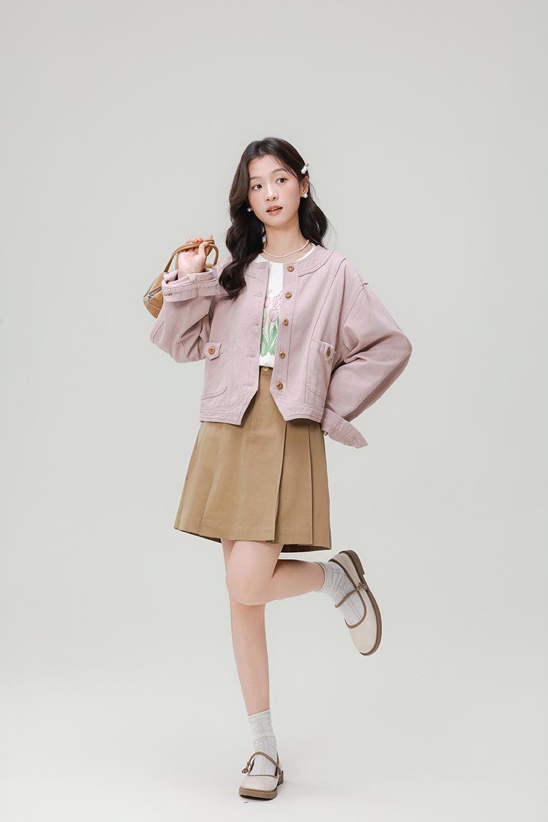 2025 otoño nuevo ropa de trabajo coreana estilo casual diseño simple cuello redondo chaqueta corta de mezclilla mujer