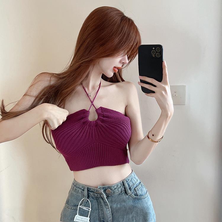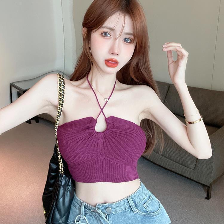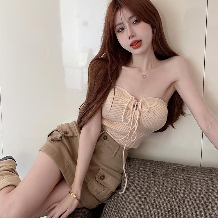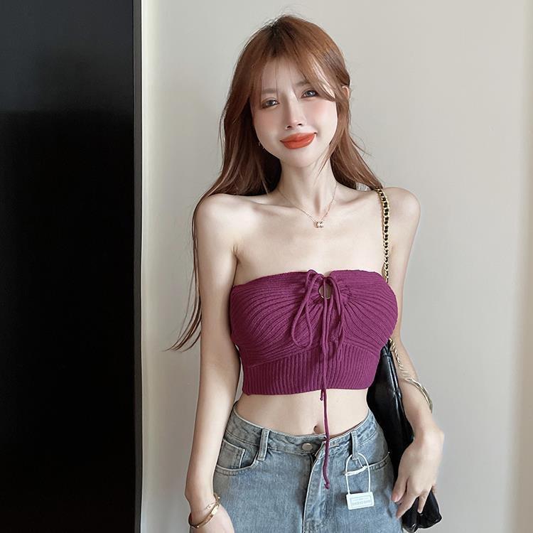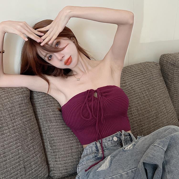 Camisola ropa interior de mujer verano ajustada sexy corta ropa exterior pecho envuelto delgada halter top tubo básico