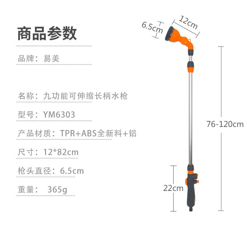 Pistola de Agua de Jardín de Palo Largo Boquilla Pistola de Pulverización Multifuncional para Riego Doméstico Jardín Agrícola Lavado de Autos y Riego de Flores Pistola de Palo Largo
