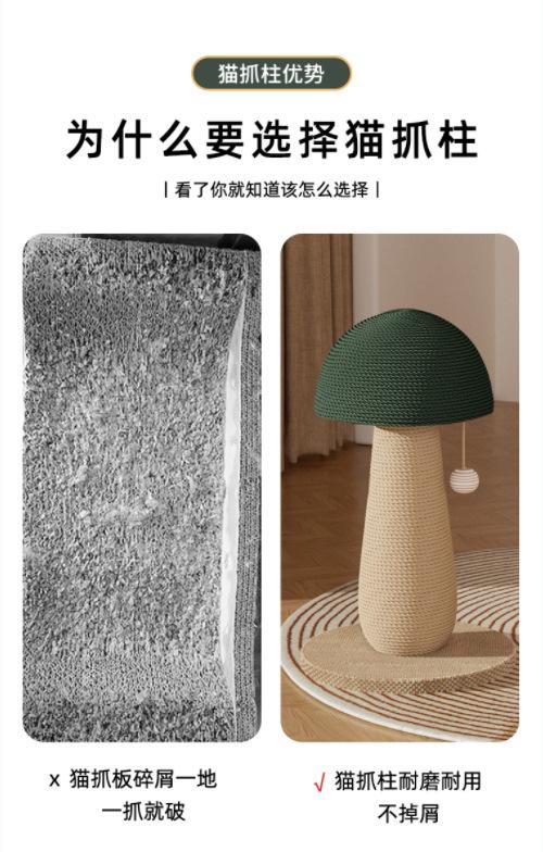 Rascador de Cartón para Gatos con Forma de Hongo para el Hogar Sisal Resistente al Desgaste y que No Suelta Pelo Poste Rascador Vertical para Gatos Juguete para Afilar las Uñas Suministros para Mascotas