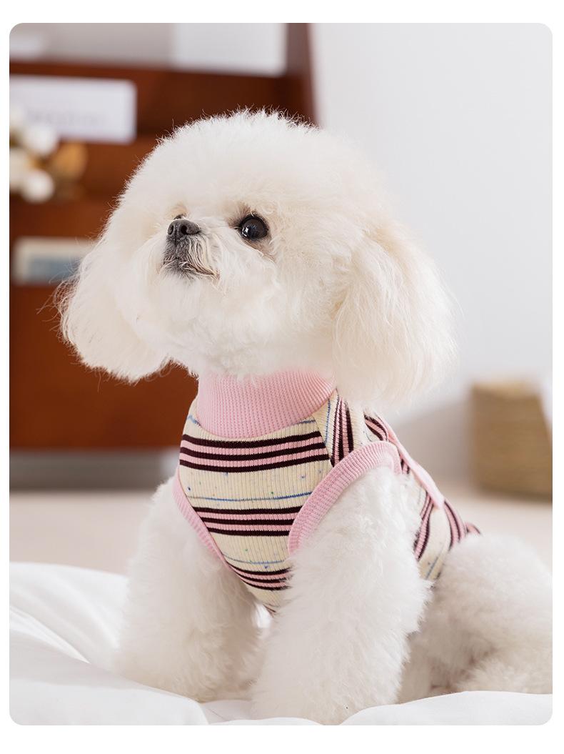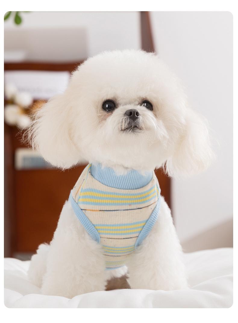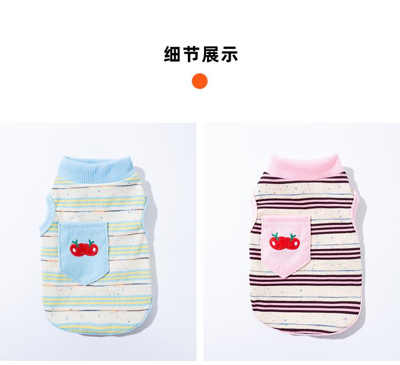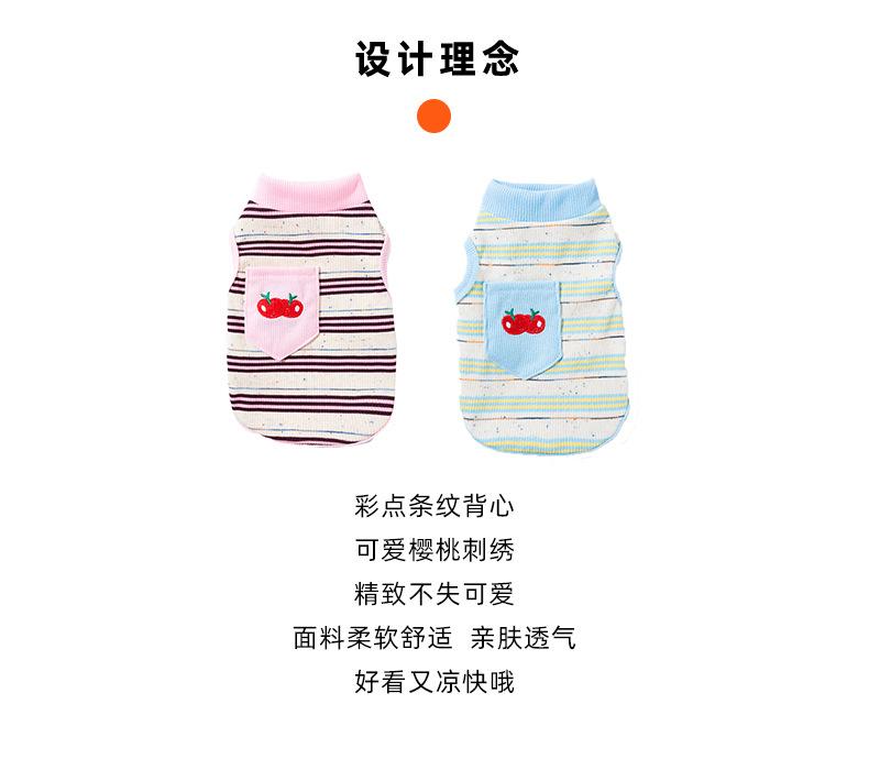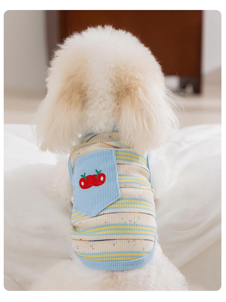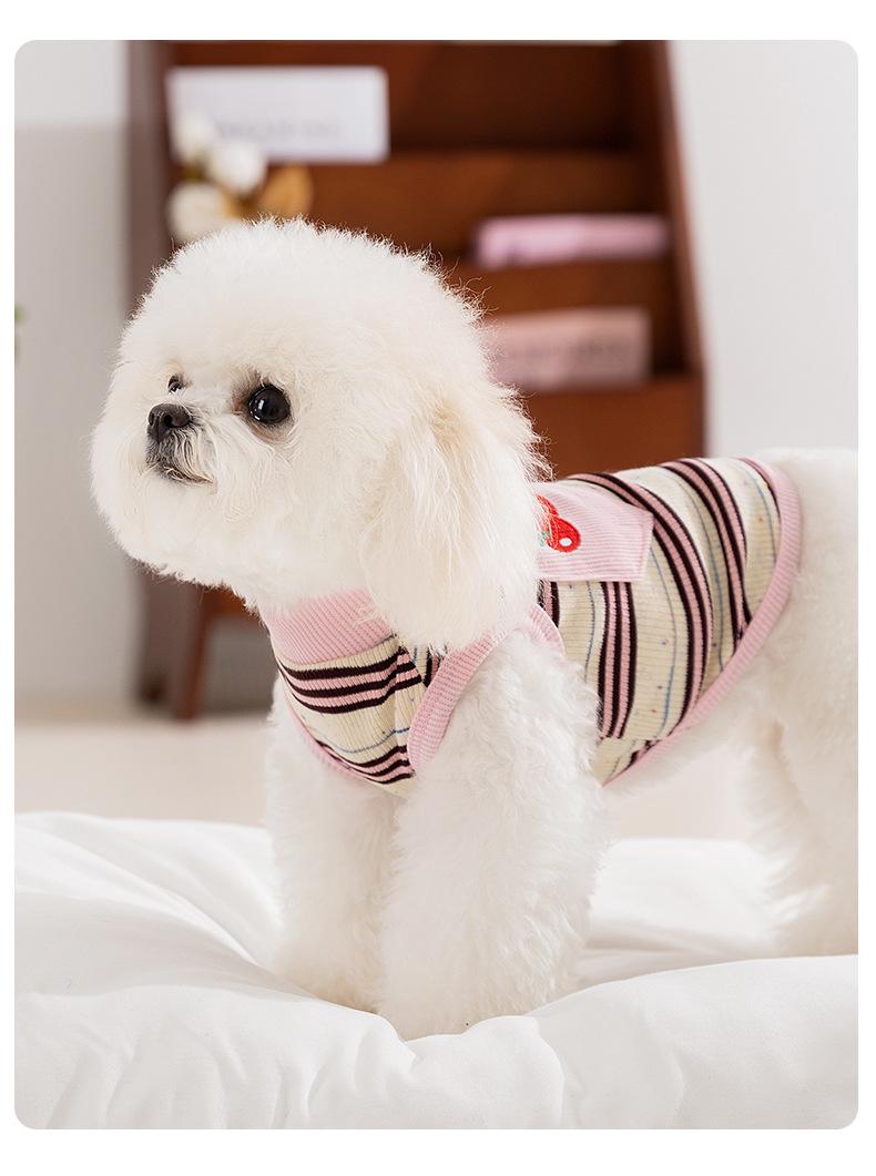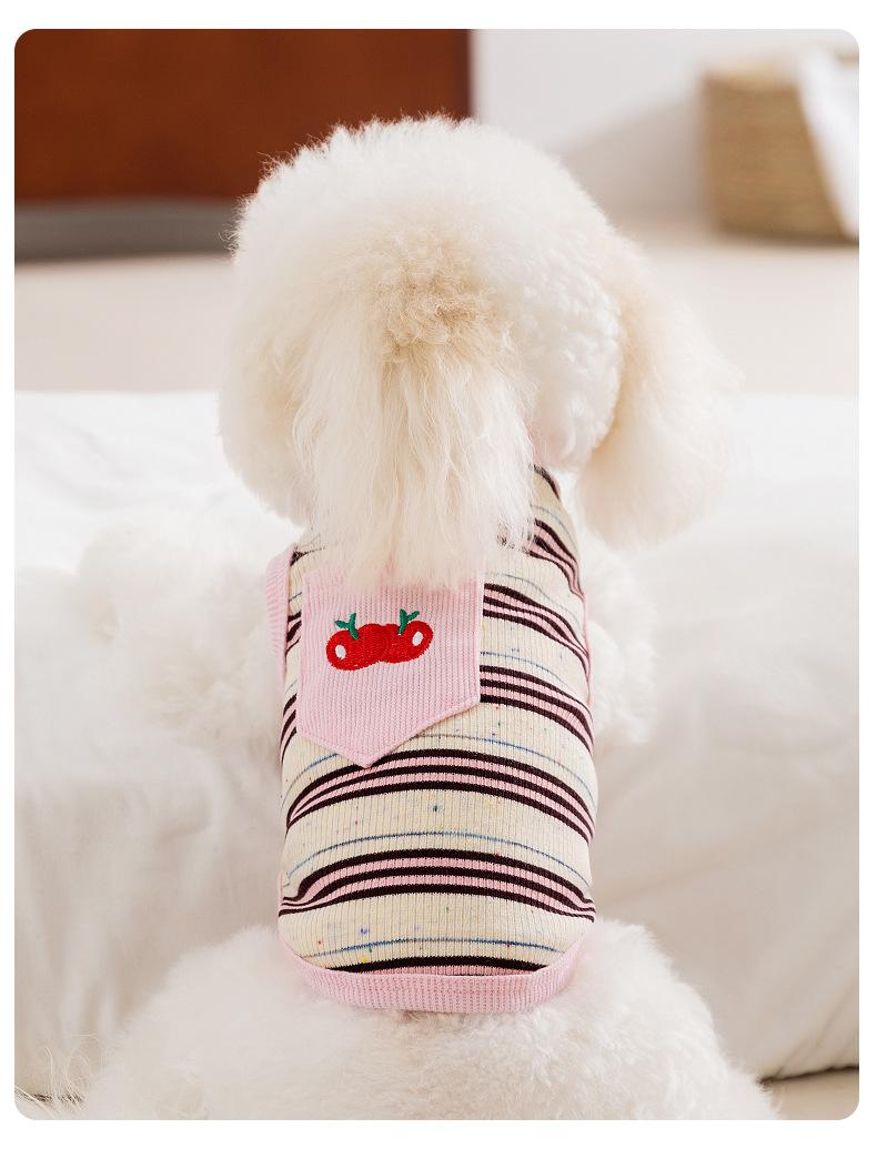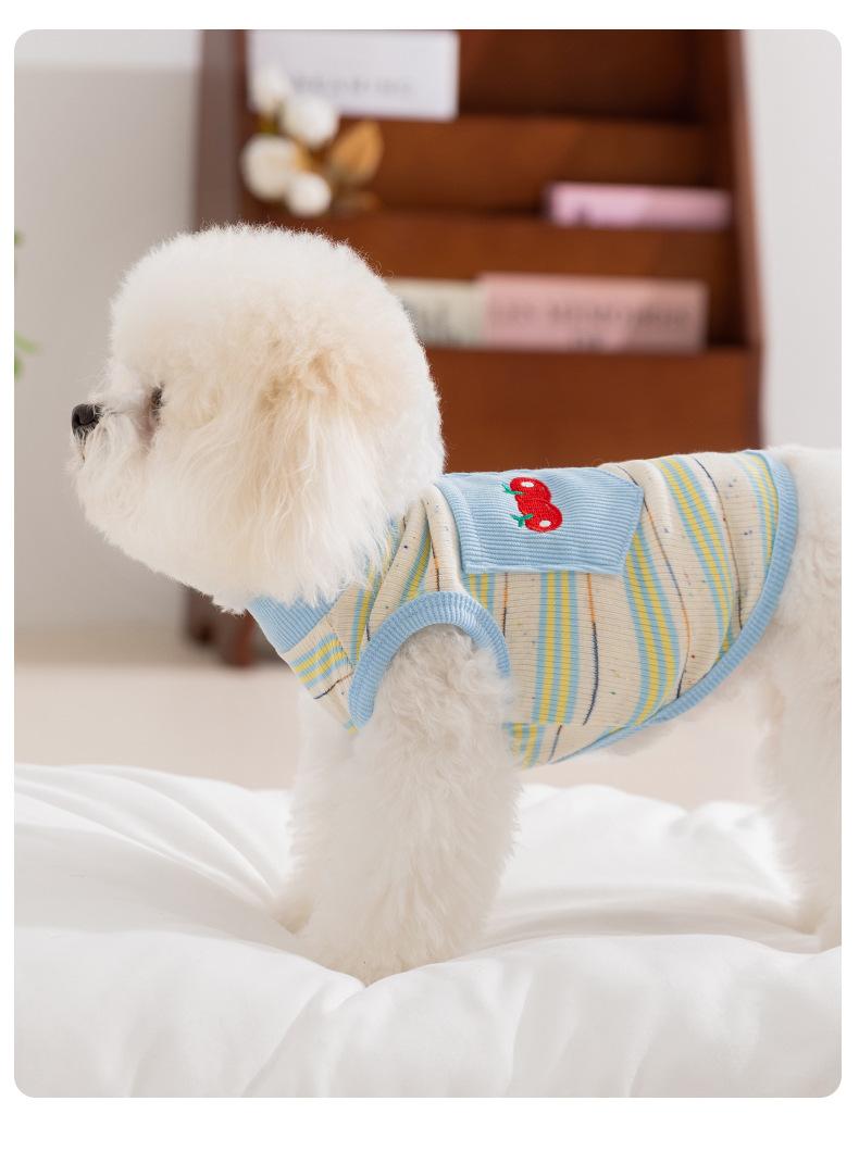 Ropa Nueva para Perro Primavera y Verano Chaleco Delgado de Rayas Coloridas Bordado de Cerezas Ropa para Mascotas Teddy Bichon