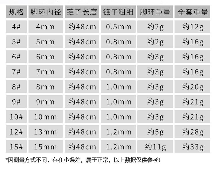Cadena de 0.8MM con tobilleras #5,6,7