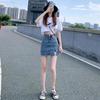 Falda de Mezclilla Elástica de Verano 2024 para Mujer de Cintura Alta Antitransparente Línea A Falda Corta Pantalón Falda con Abertura Cadera