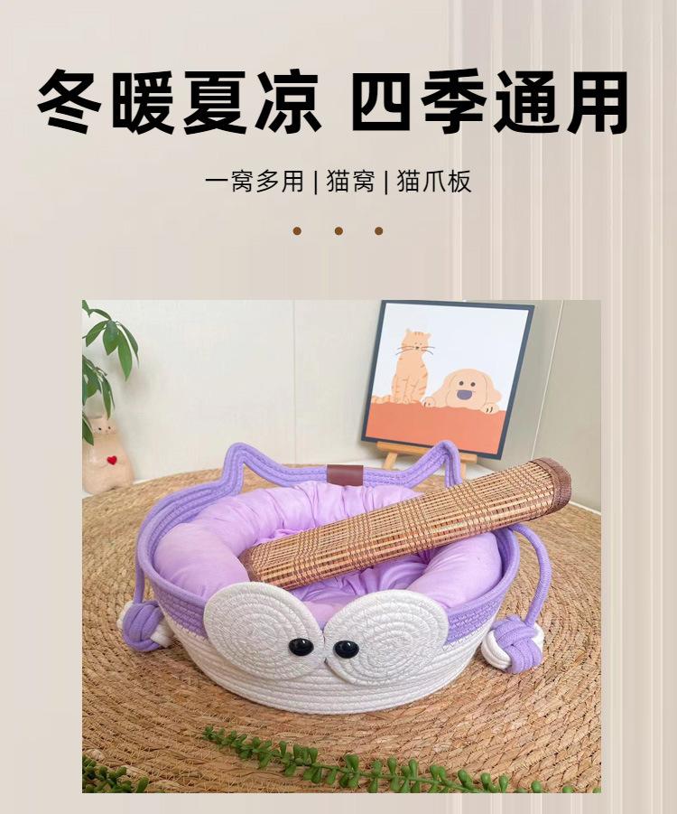 Nido de Ratán Personalizado para Gatos para Todas las Estaciones, Suministros Tejidos para Gatos, Colchoneta para Dormir, Casita para Perros, Cama de Verano para Mascotas