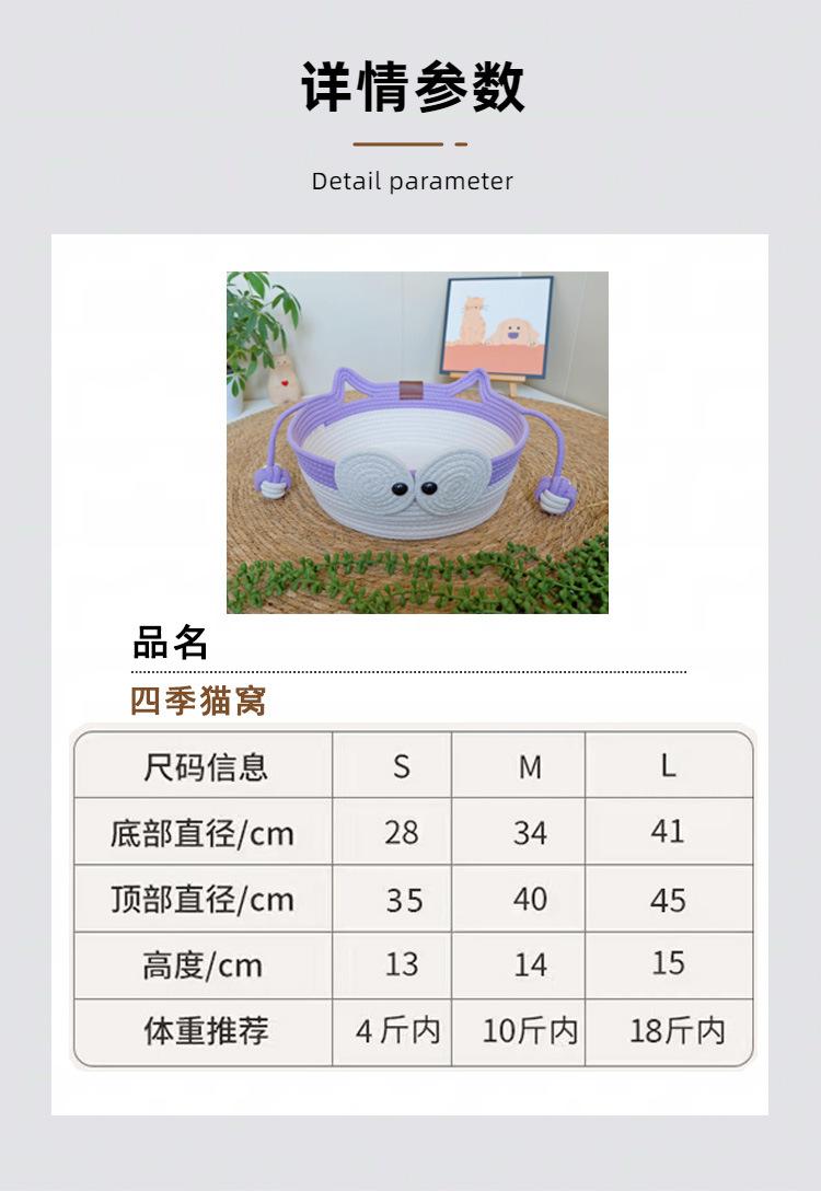 S—small size (diameter 35cm, height 13cm, suitable for cats under 2kg years old)