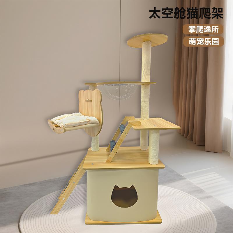 Gimnasio para Gatos, Nido para Gatos, Árbol para Gatos, Rascador Grande de Madera para Gatos, Estante Especial para Gatos con Cápsula Espacial para Gatos Grandes, Venta al por Mayor