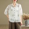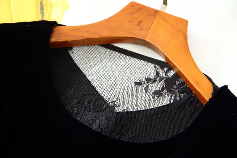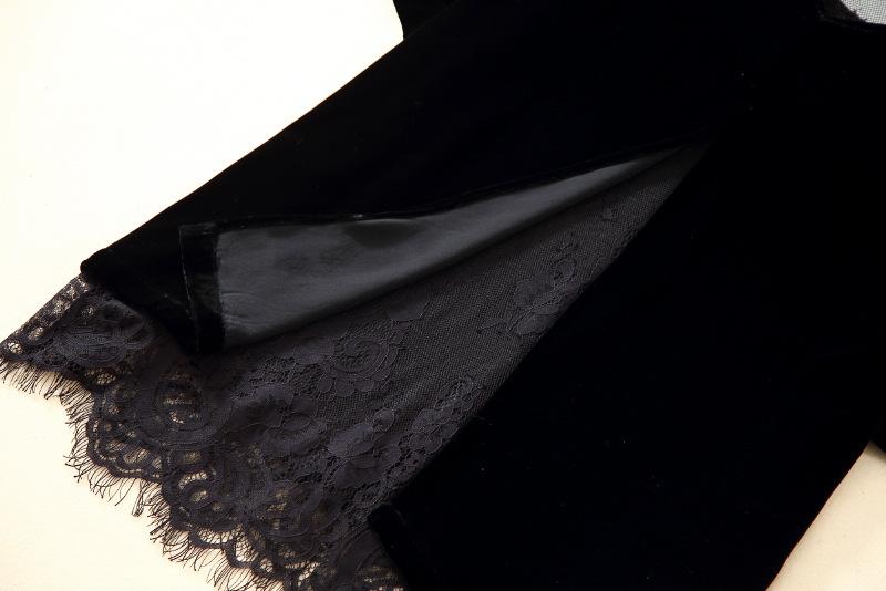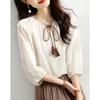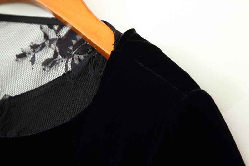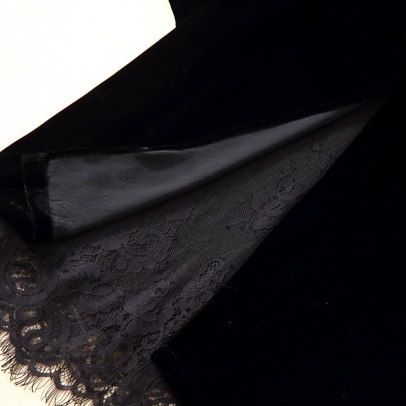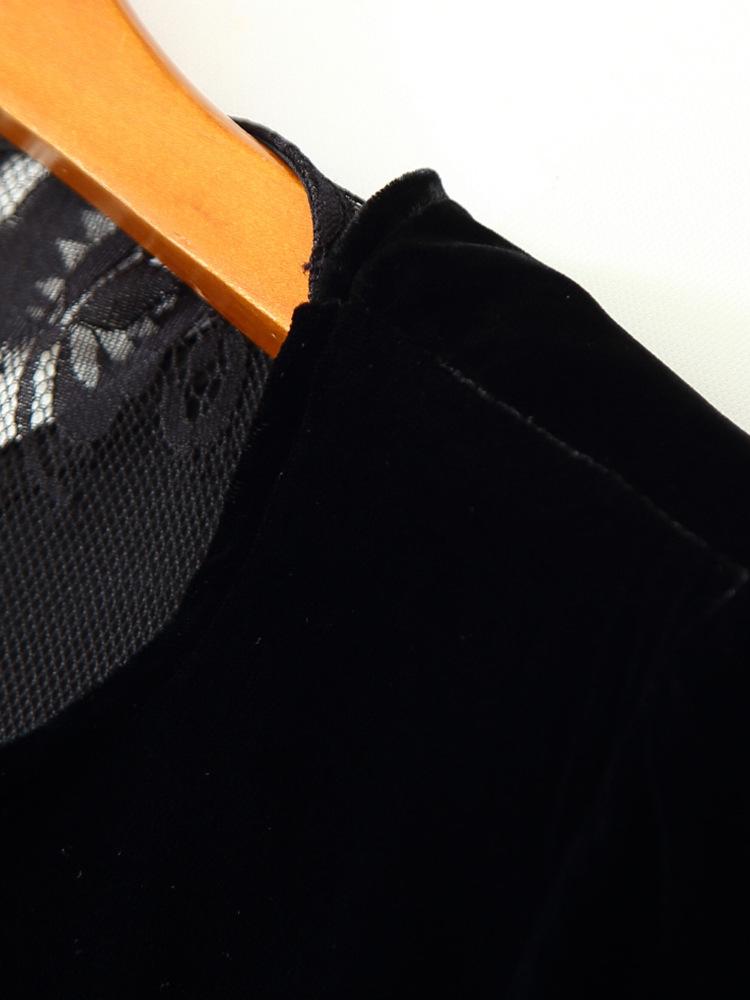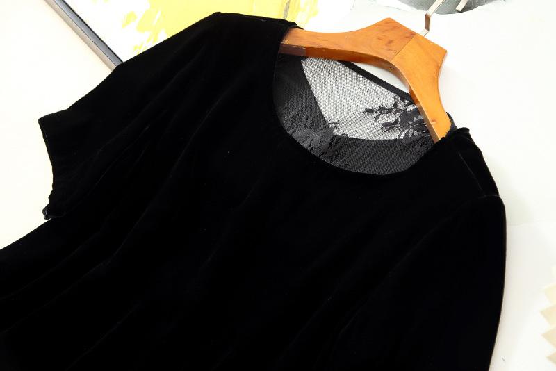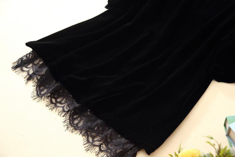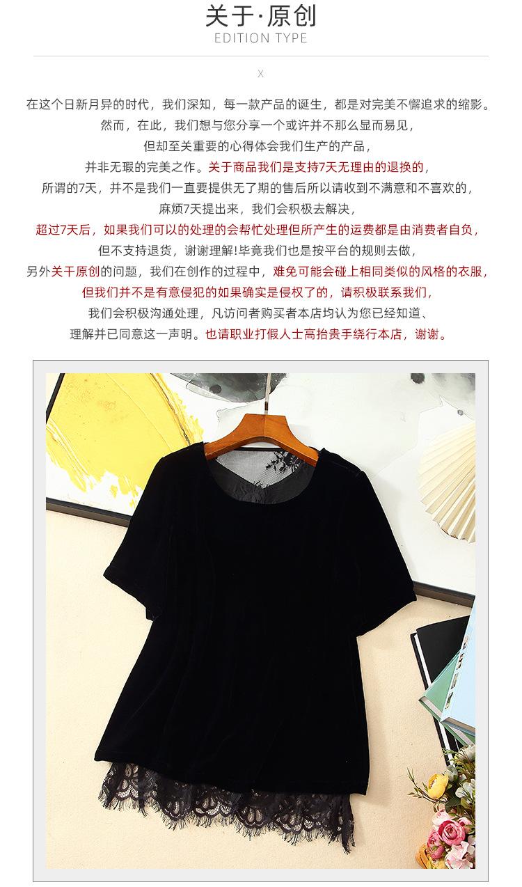 205 Otoño Nuevo Lujo Ligero Terciopelo de Seda Francés Encaje Patchwork Top Temperamental Suelto Versátil Camisa Manga Corta