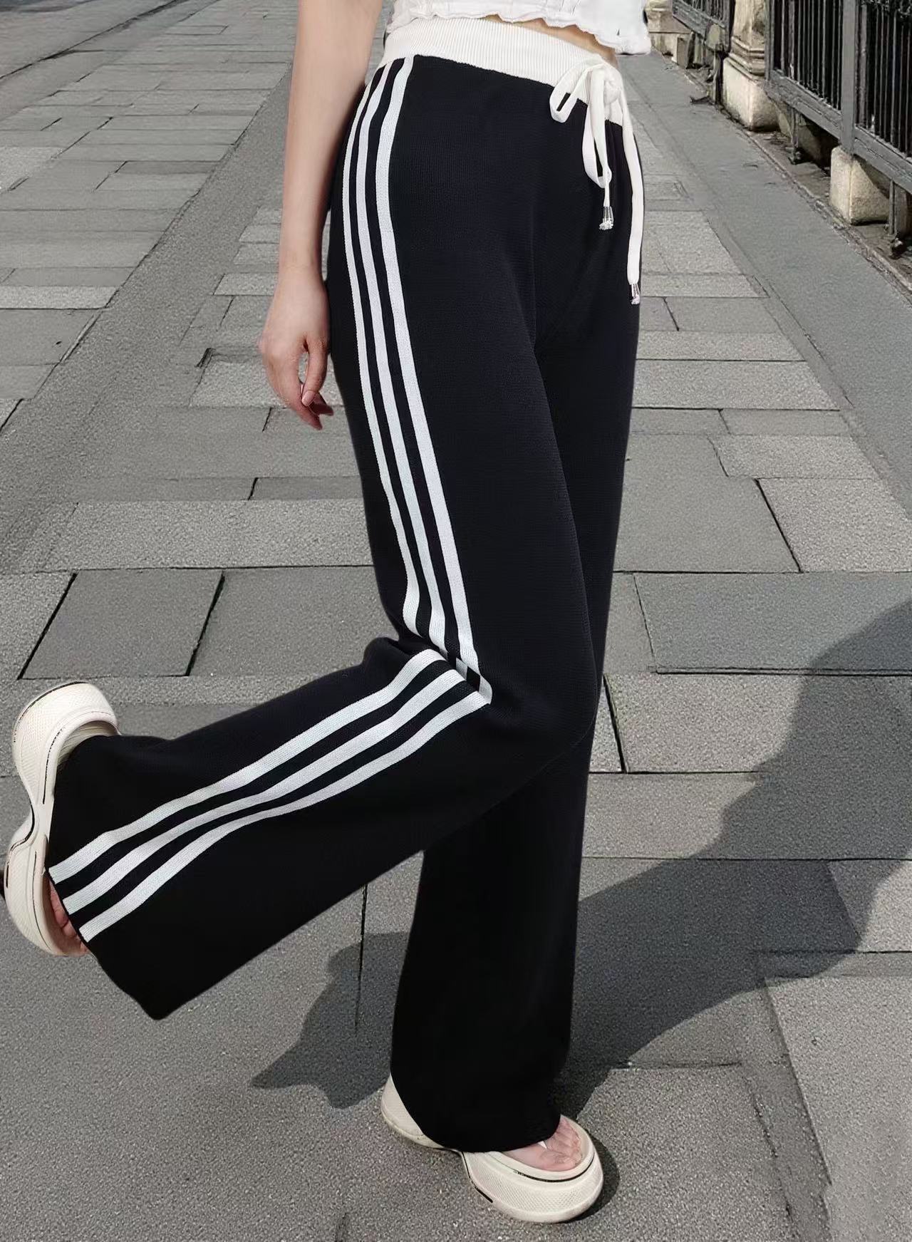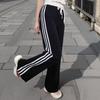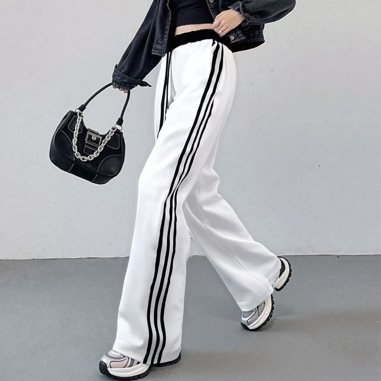 Pantalones Casuales Americanos Acampanados para Mujer Verano Delgados Sueltos Fluidos Pantalones Deportivos Color Sólido Cintura Alta Adelgazantes Pantalones de Pierna Ancha Tendencia