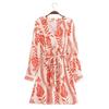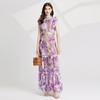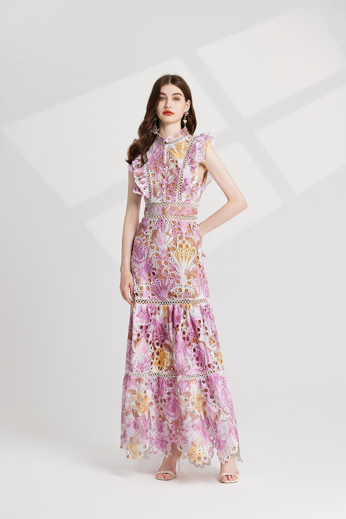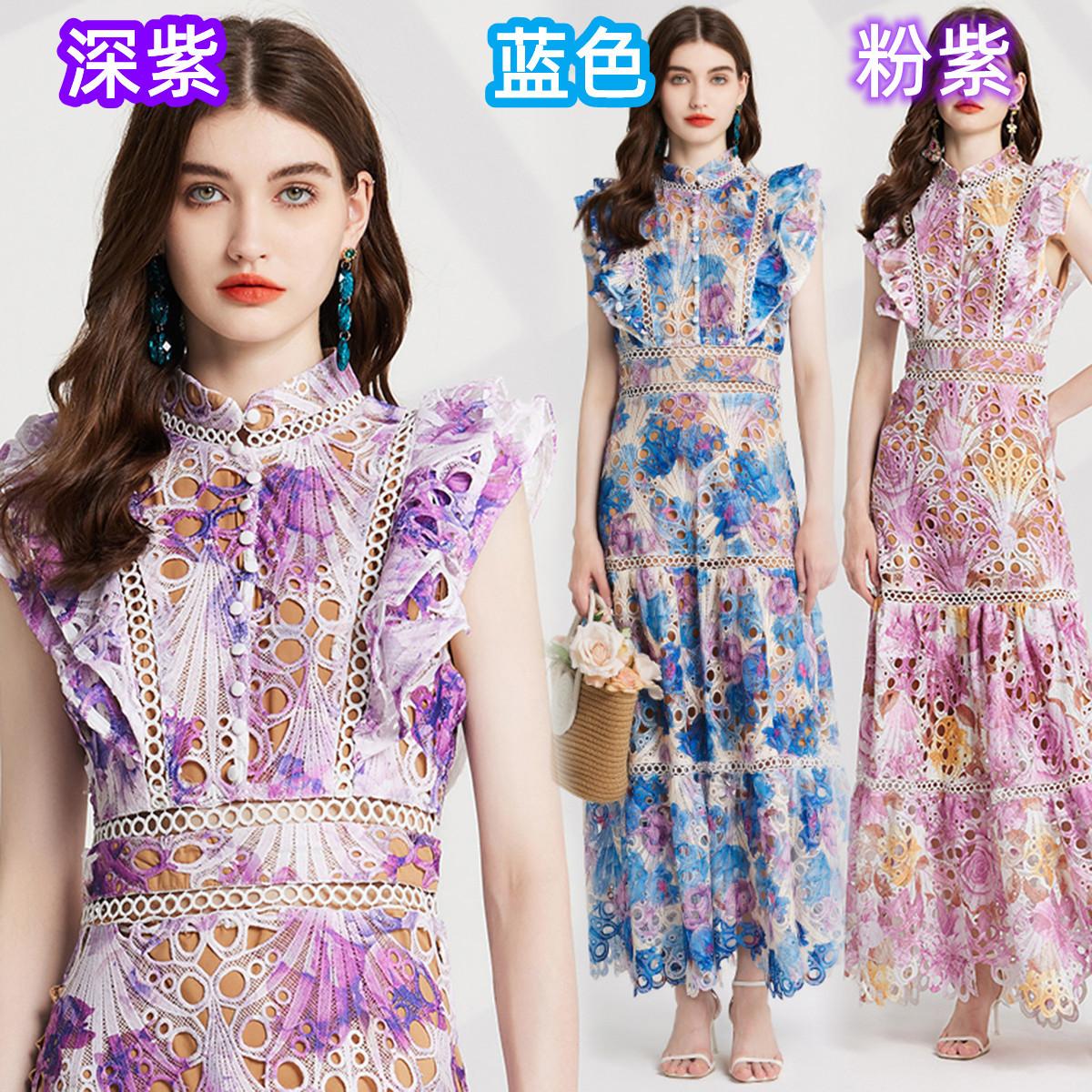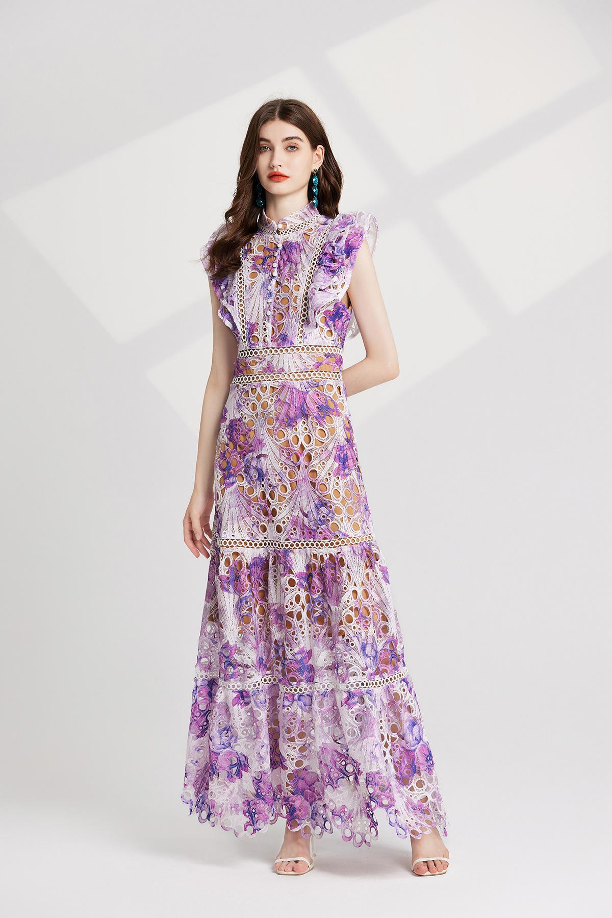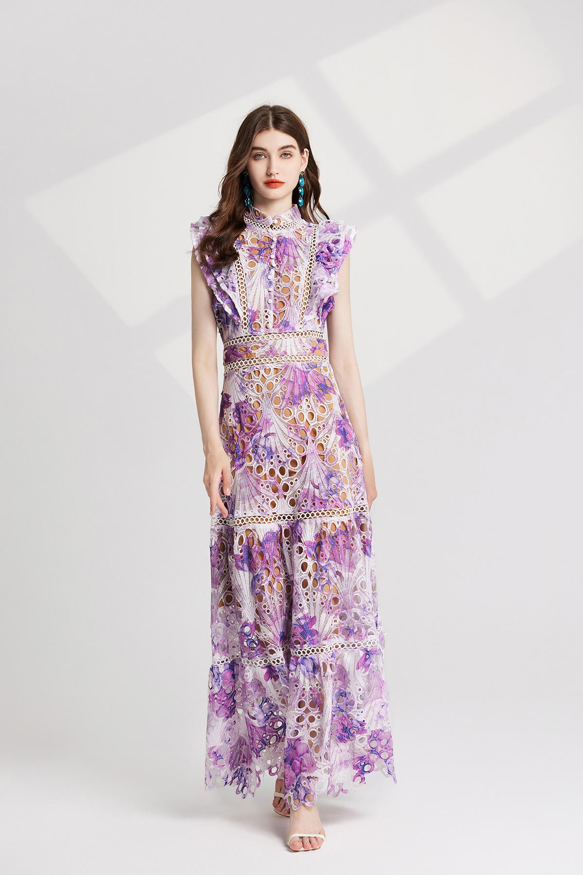 Vestido de encaje estilo moda de vacaciones estilo europeo y americano para mujer 2024 con cuello mao pequeño, manga mariposa y cintura alta