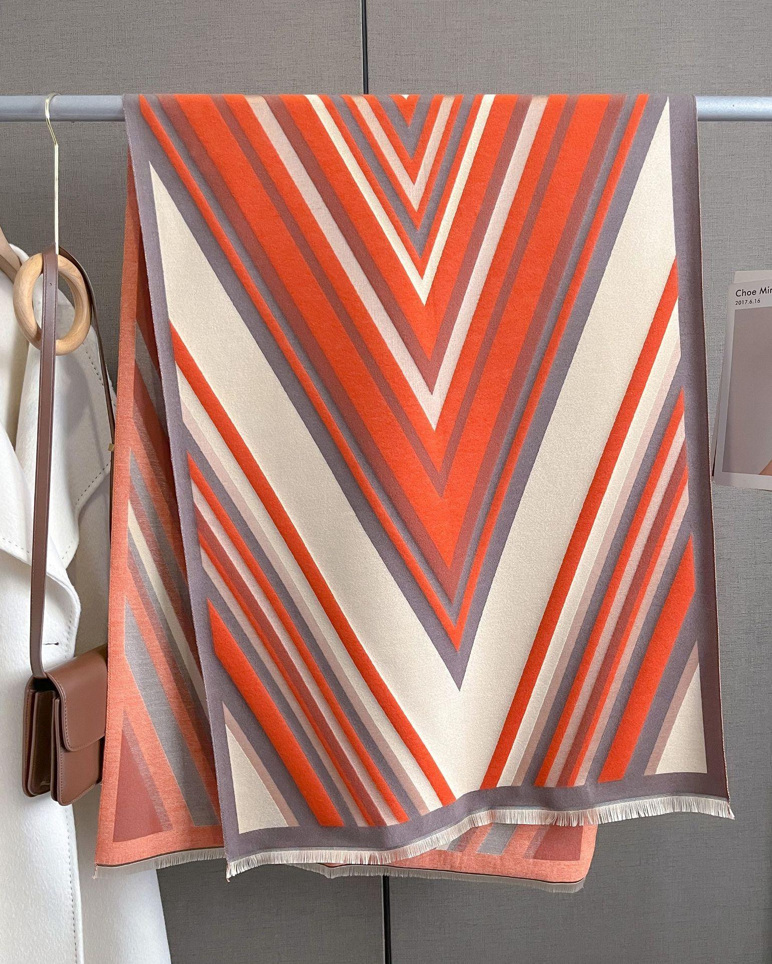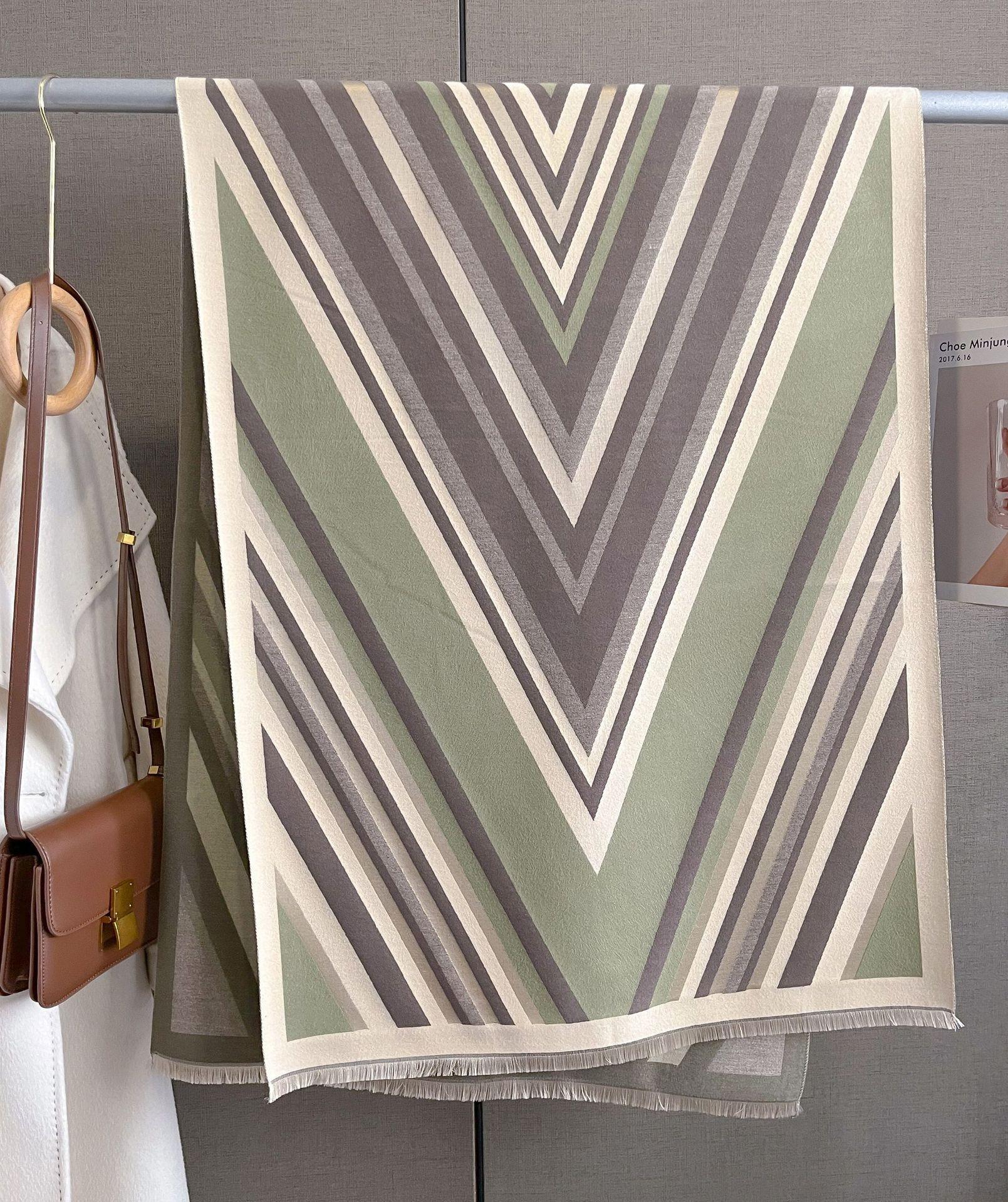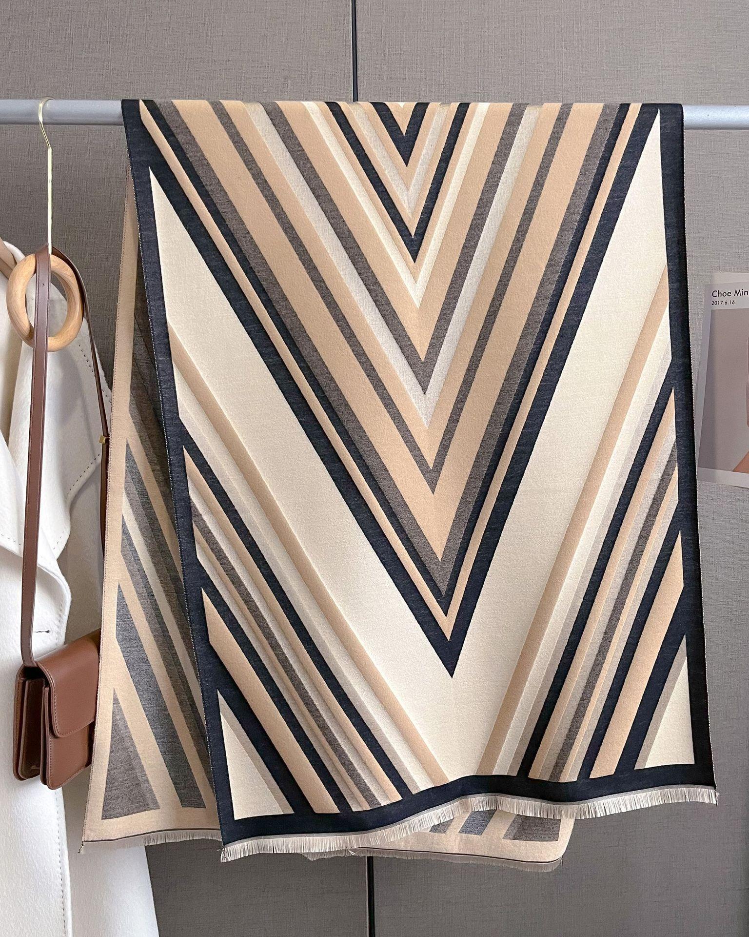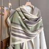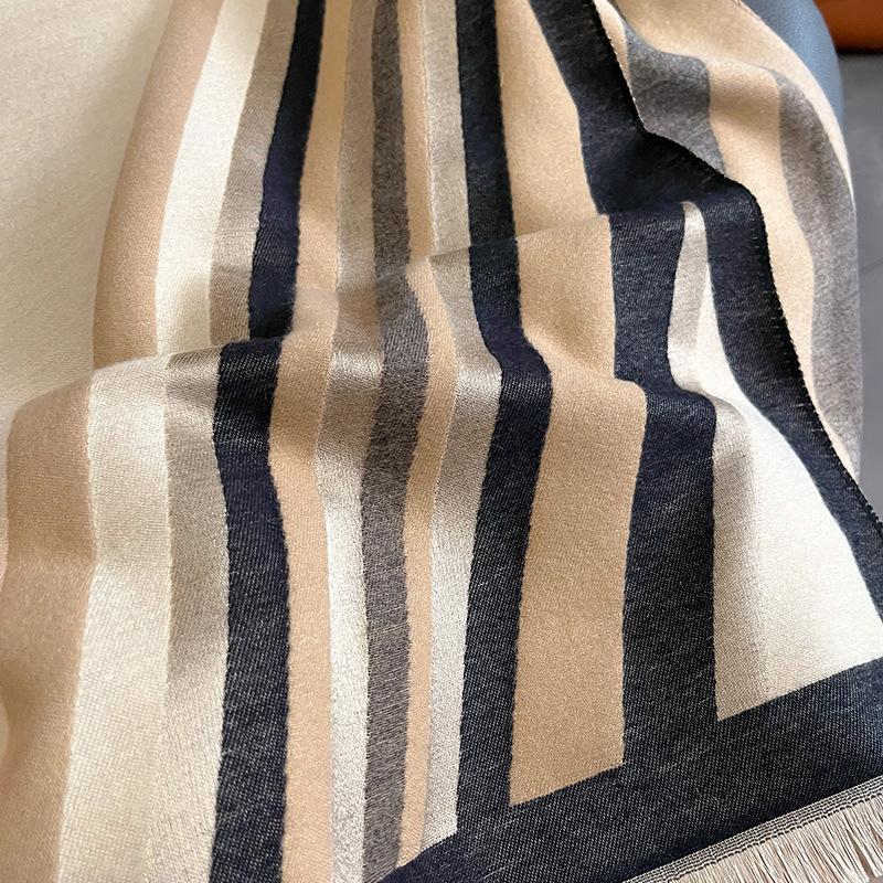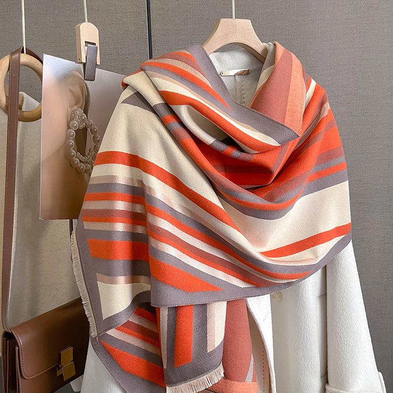 2023 nuevo otoño e invierno estampado de rayas engrosado cálido chal de mujer bufanda corta con flecos similar a la cachemira respetuosa con la piel al por mayor