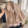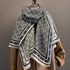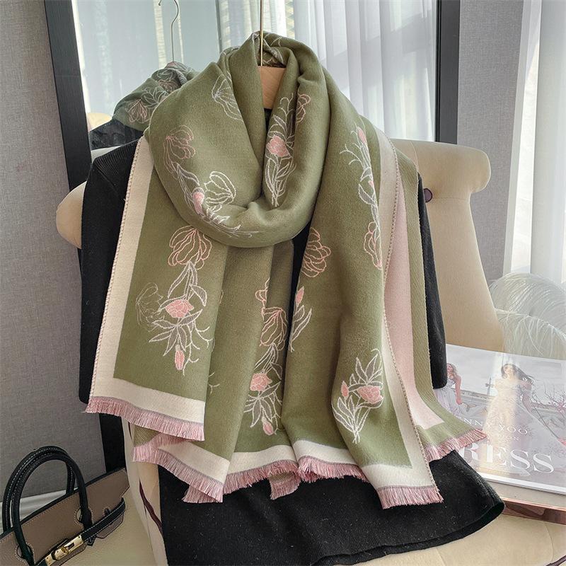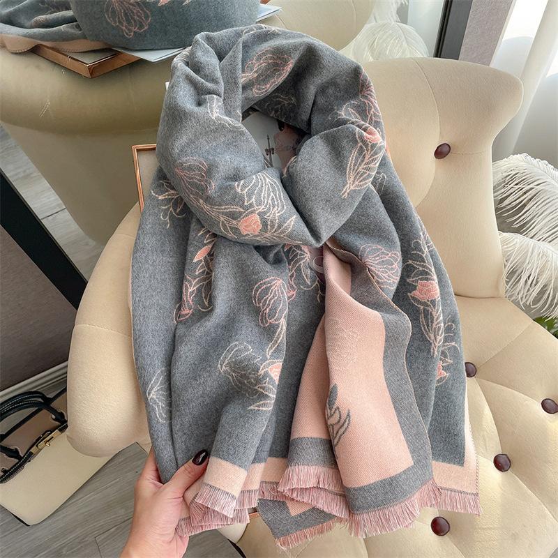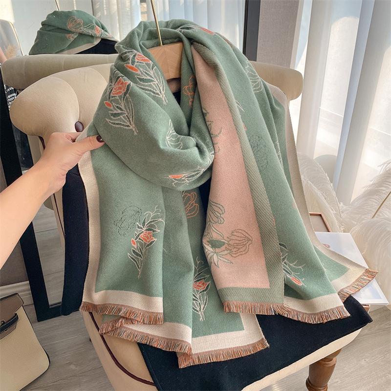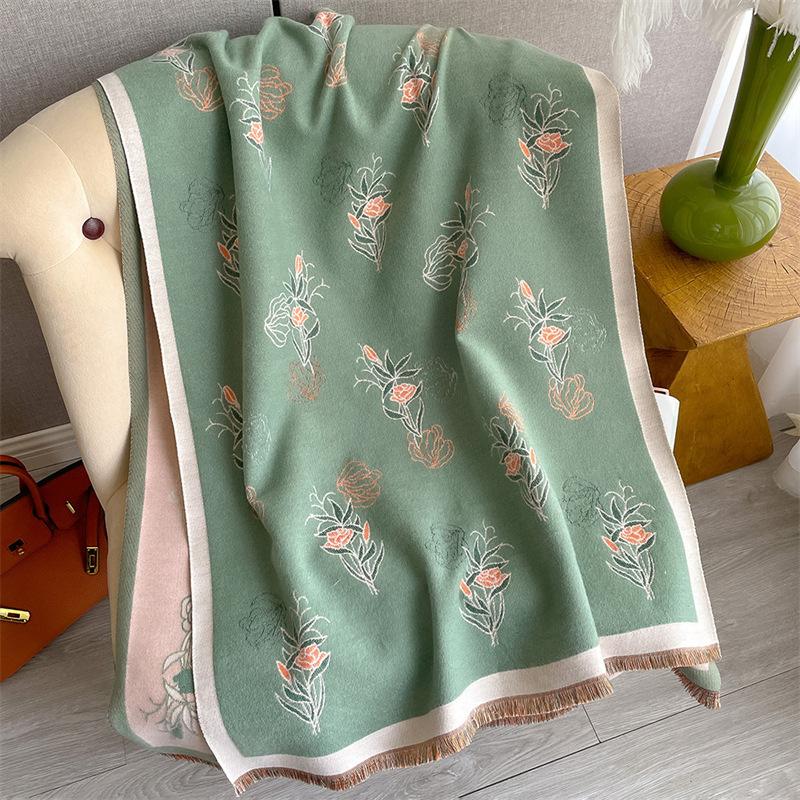 2023 nuevo otoño e invierno estampado de plantas grueso cálido chal para mujer tipo cachemira agradable a la piel bufanda corta con flecos al por mayor