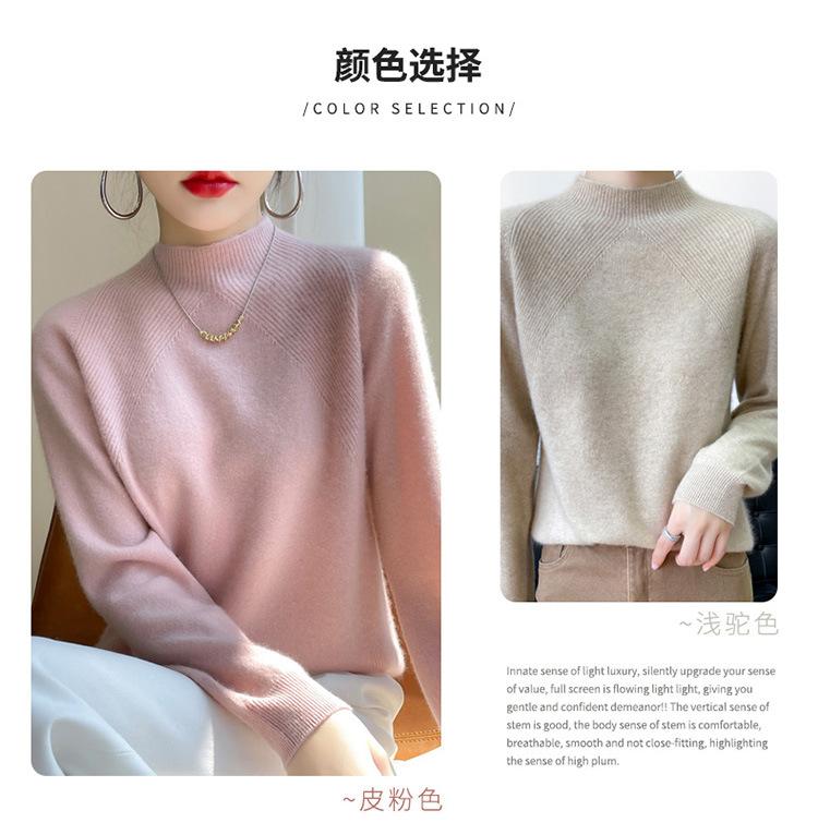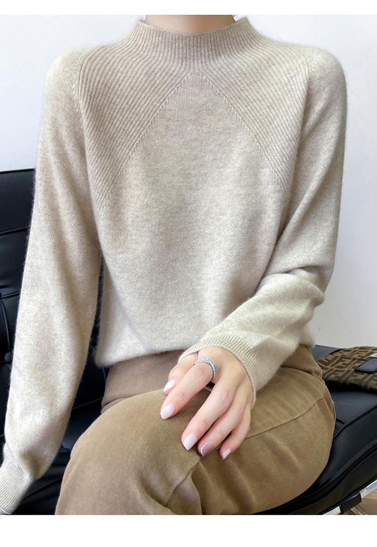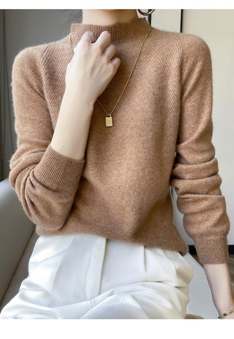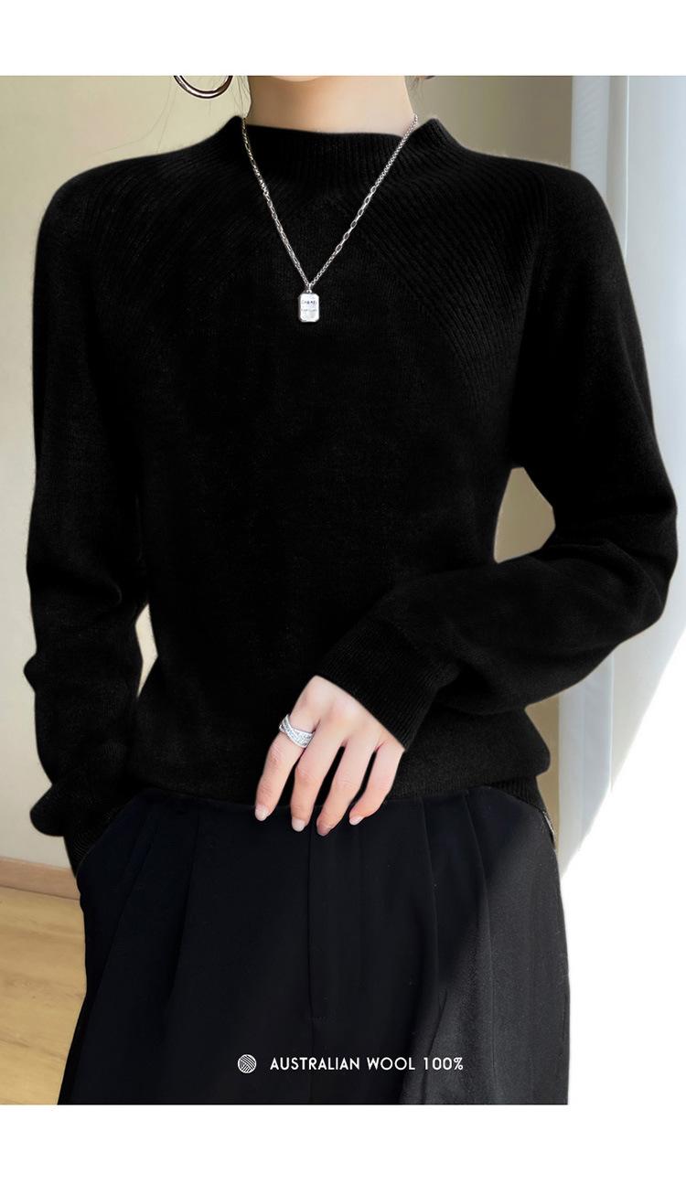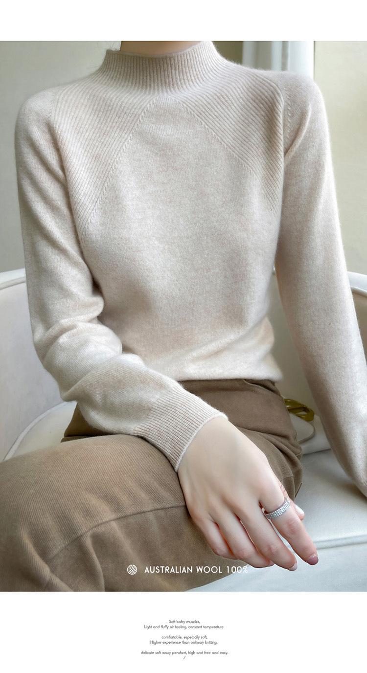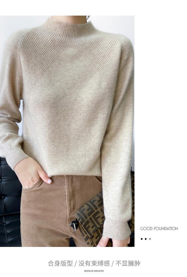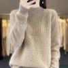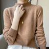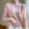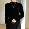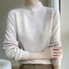 2025 Otoño/Invierno Nuevo Estilo 100% Lana Pura Camisa Base Tejida para Mujer Cuello Semi-Alto Holgada Adelgazante Suéter Cálido Ropa Interior
