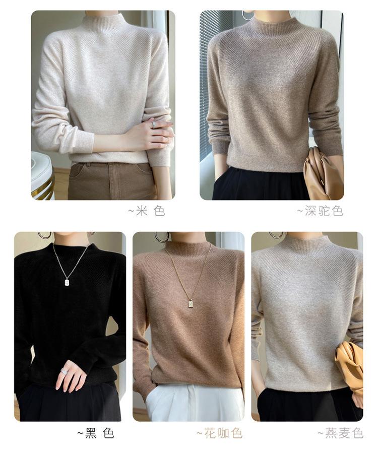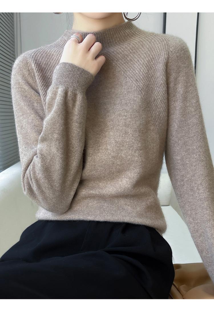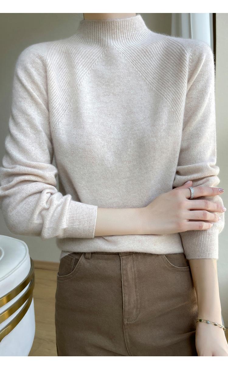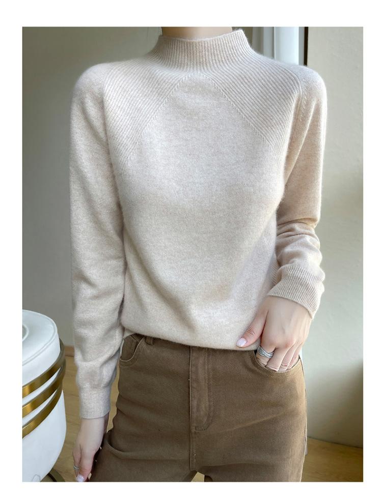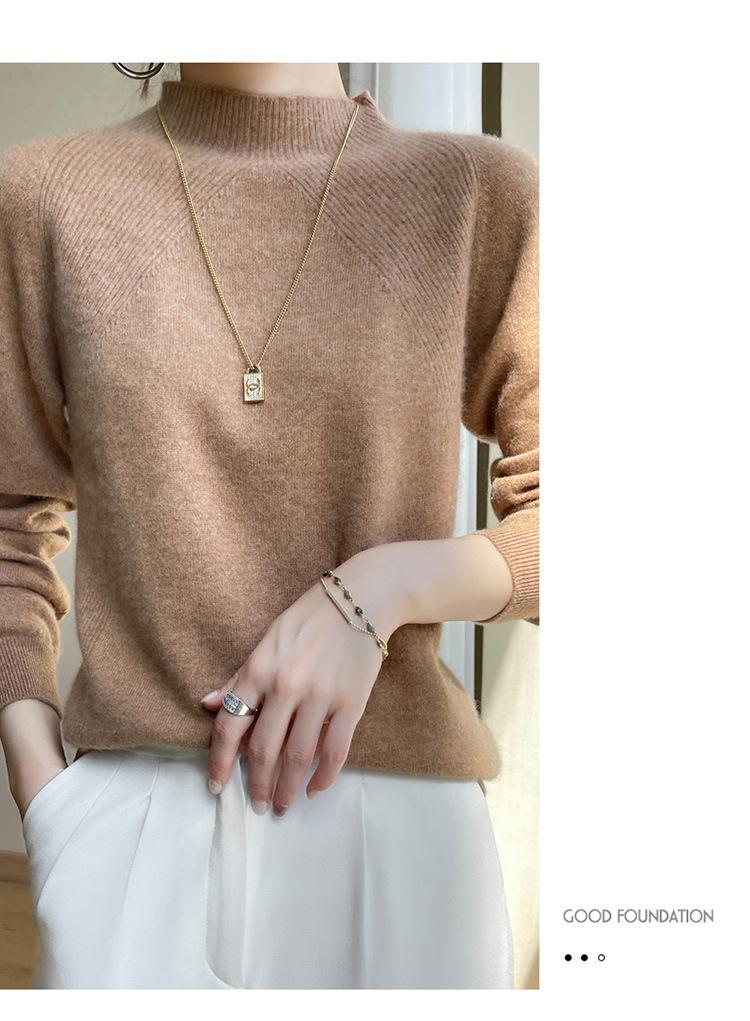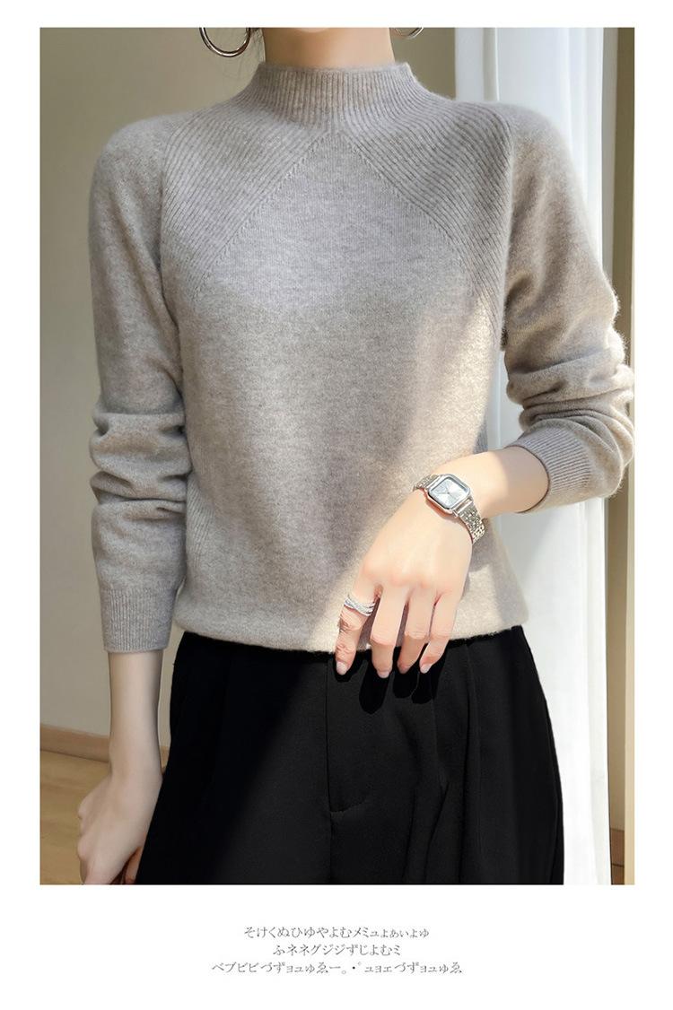 2025 Otoño/Invierno Nuevo Estilo 100% Lana Pura Camisa Base Tejida para Mujer Cuello Semi-Alto Holgada Adelgazante Suéter Cálido Ropa Interior