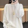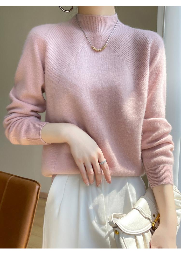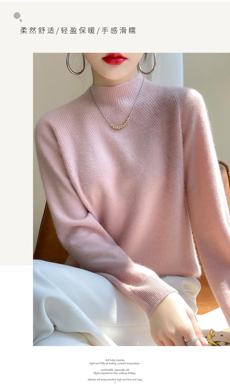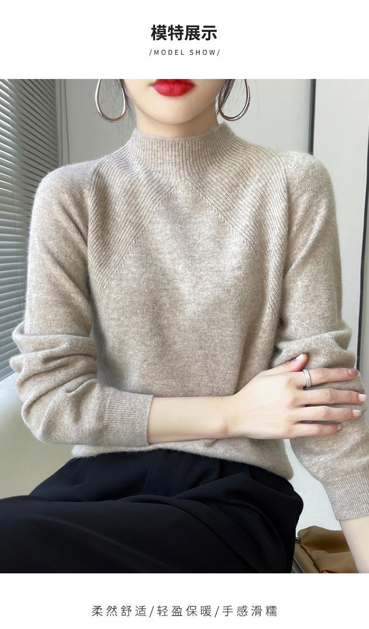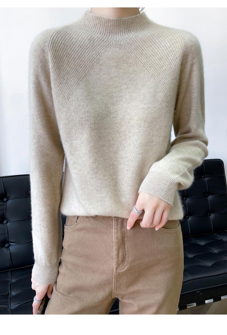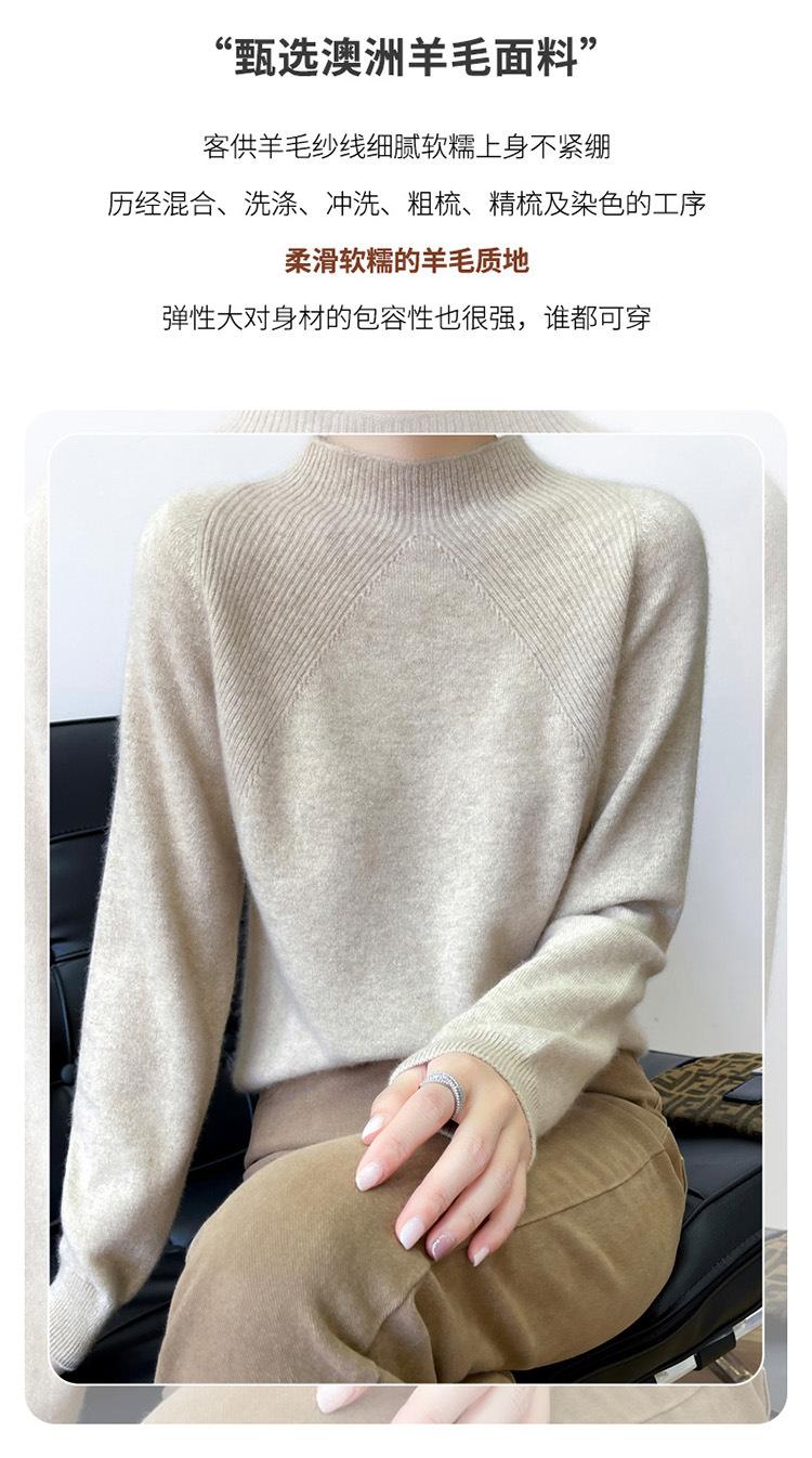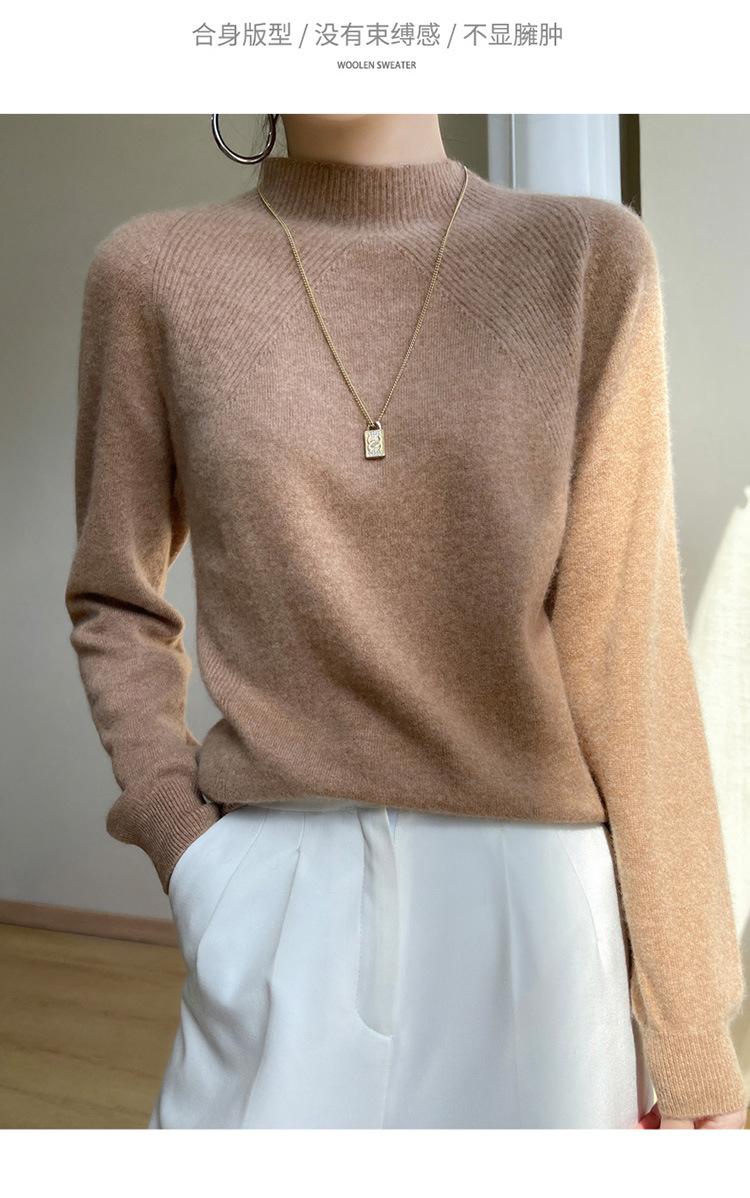 2025 Otoño/Invierno Nuevo Estilo 100% Lana Pura Camisa Base Tejida para Mujer Cuello Semi-Alto Holgada Adelgazante Suéter Cálido Ropa Interior