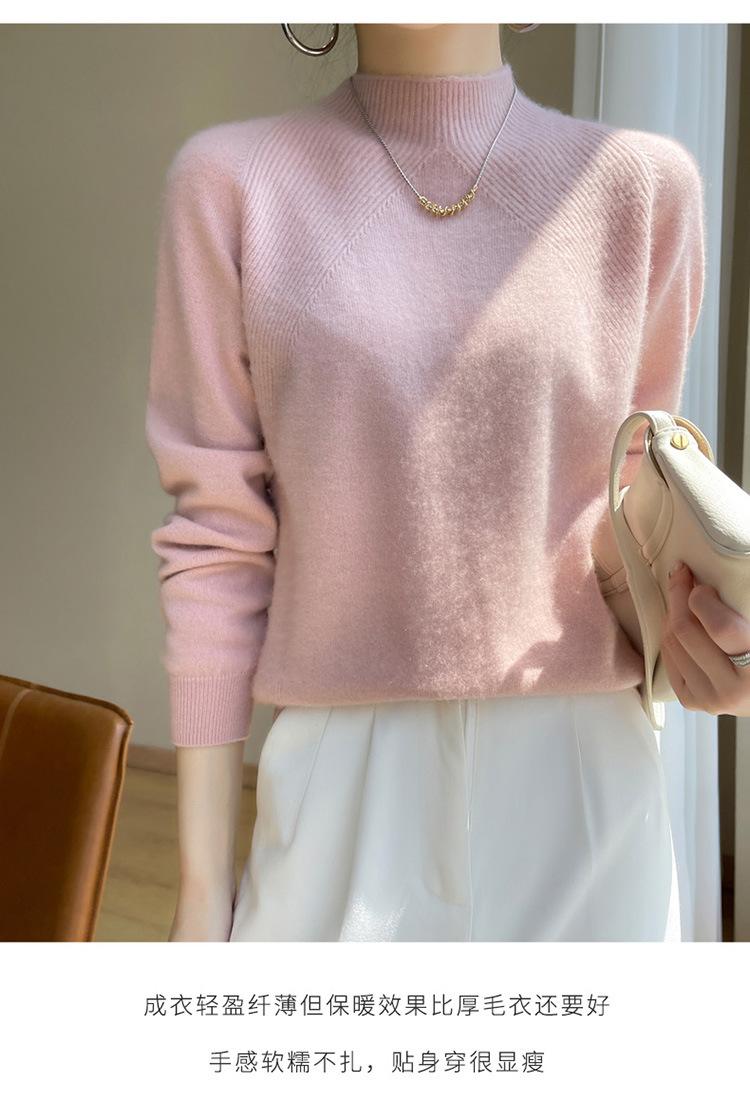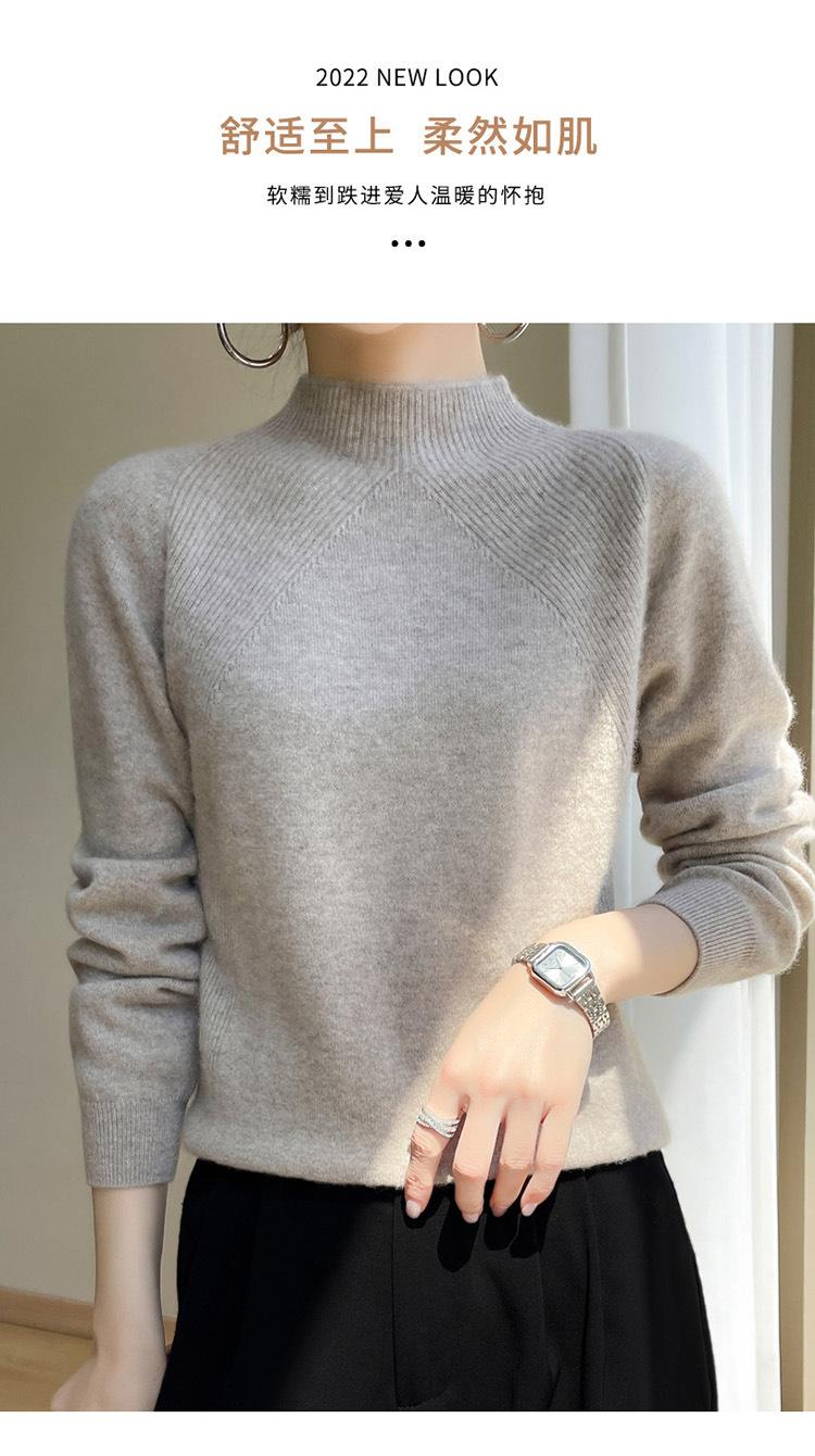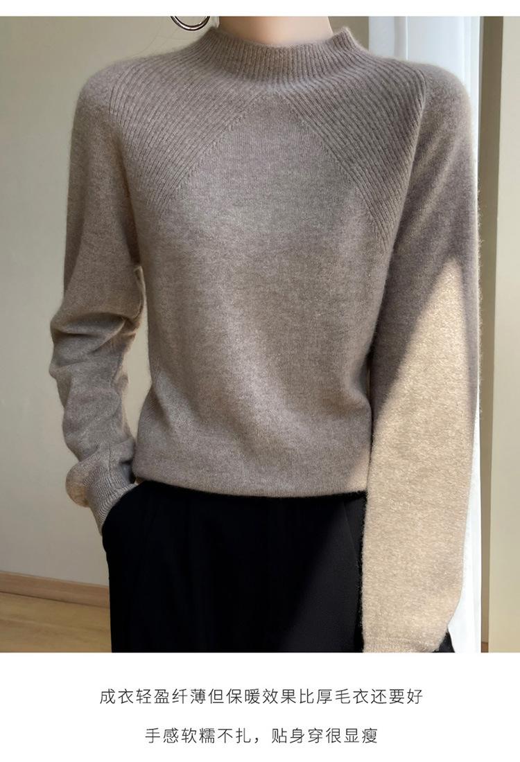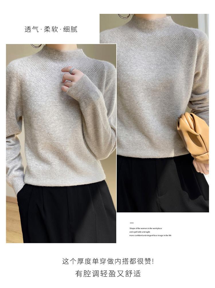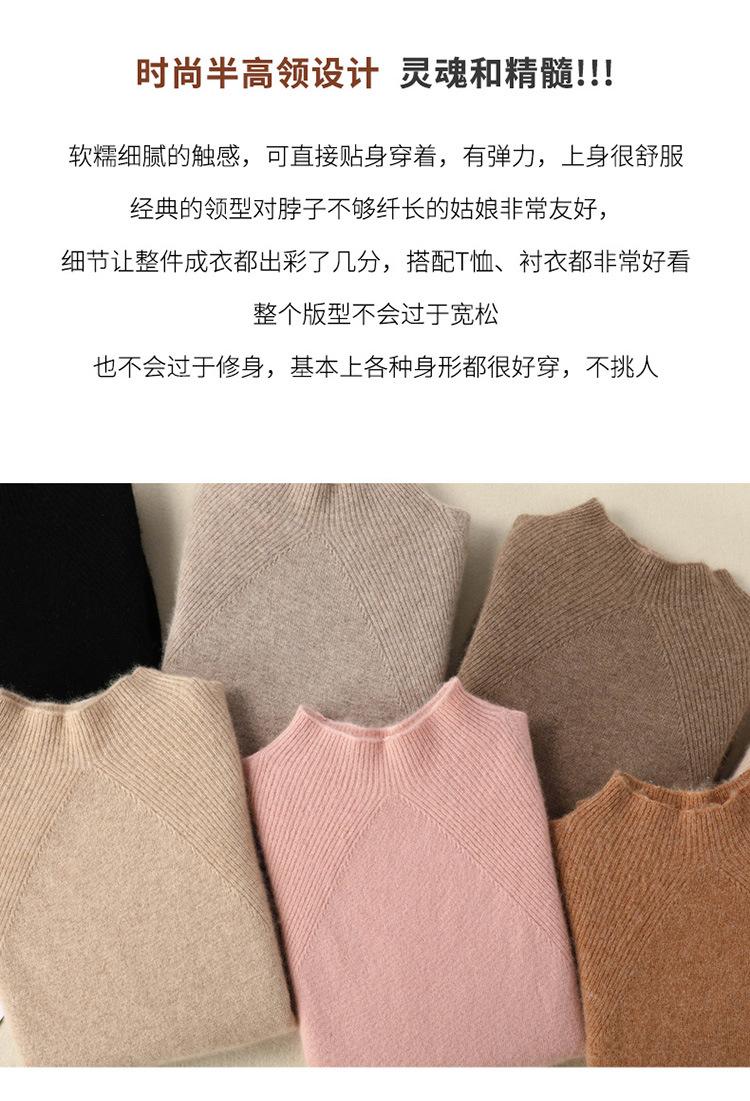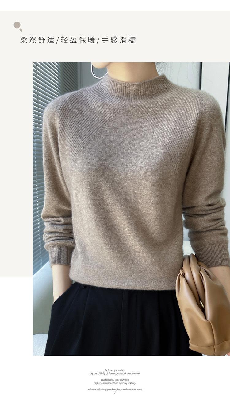 2025 Otoño/Invierno Nuevo Estilo 100% Lana Pura Camisa Base Tejida para Mujer Cuello Semi-Alto Holgada Adelgazante Suéter Cálido Ropa Interior
